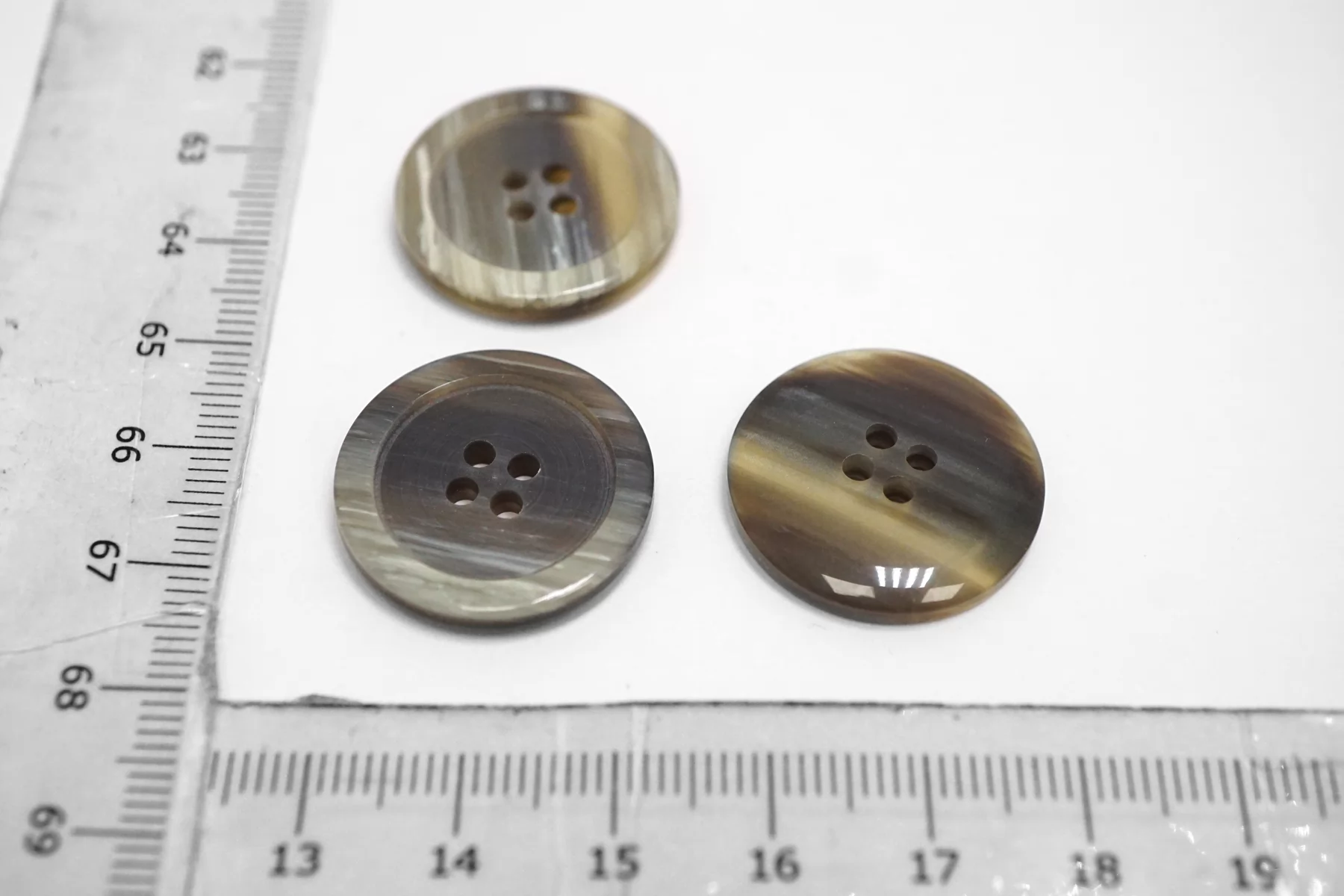 Пуговица пластиковая костюмно-пальтовая серого цвета под рог . Размер 22 мм.