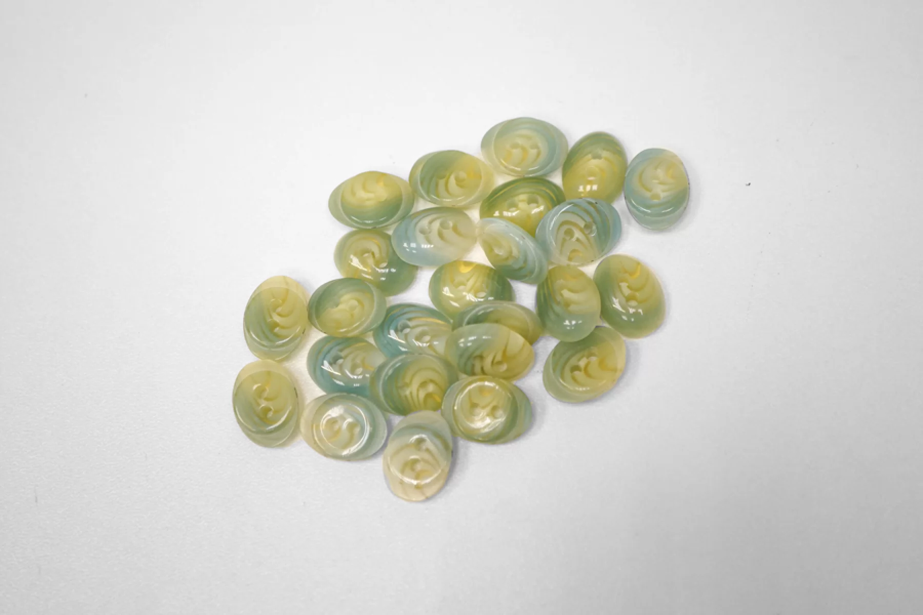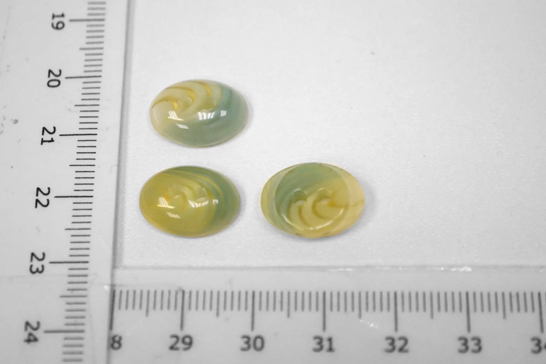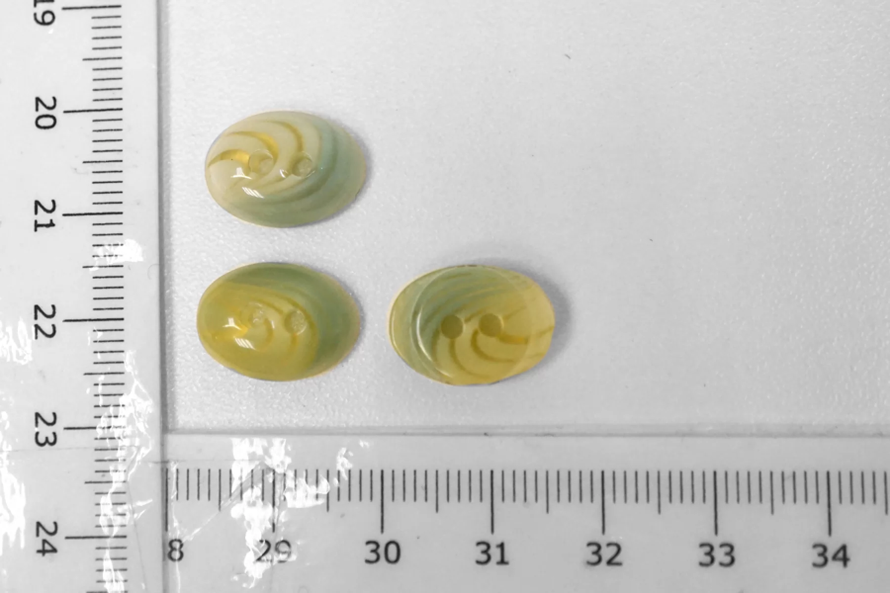 Пуговица пластиковая зелёного цвета в разводах , размер 15 мм.