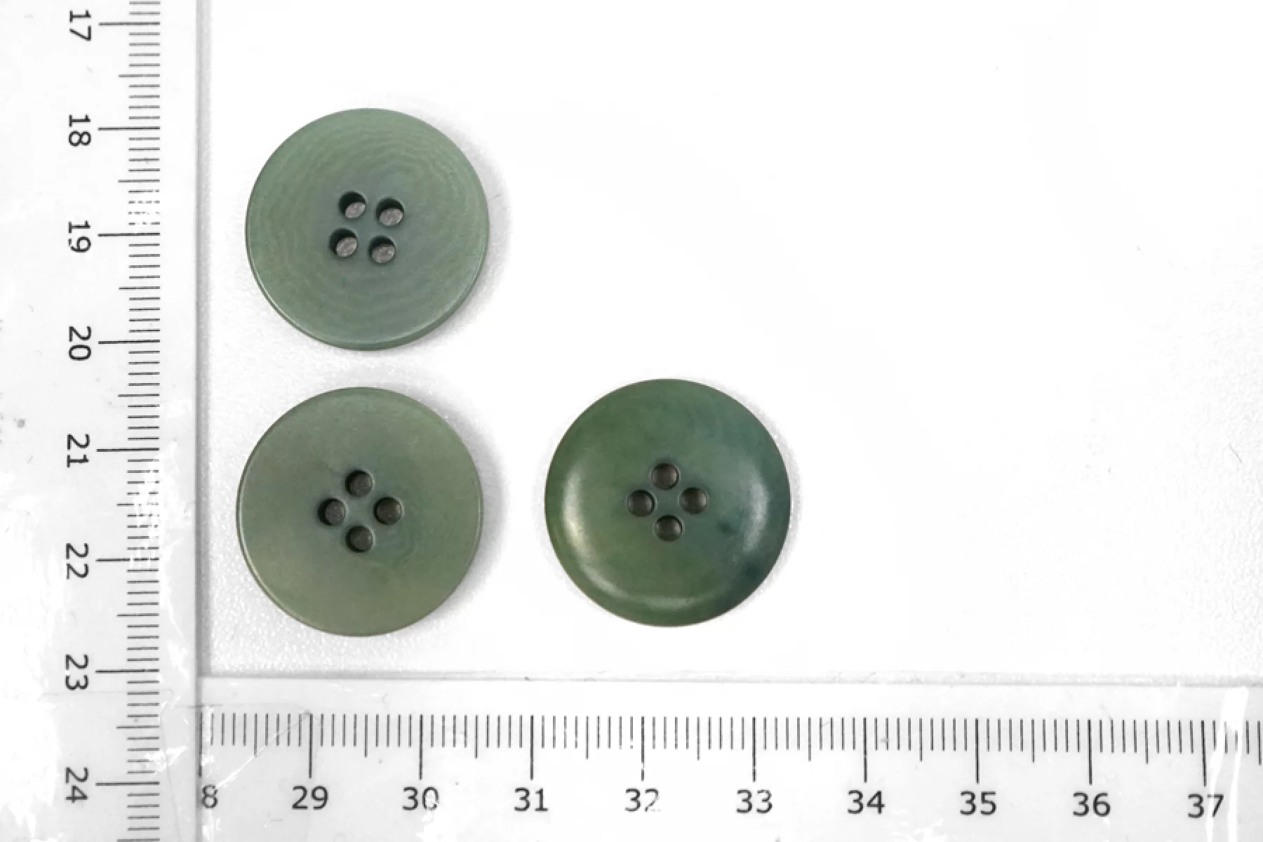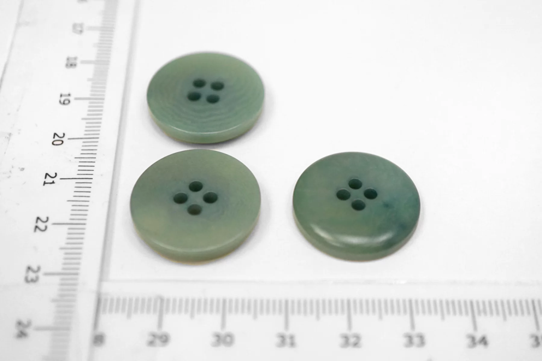 Пуговица пластикавая костюмно-пальтовая зеленого цвета матовая под рог. Размер 22 мм.