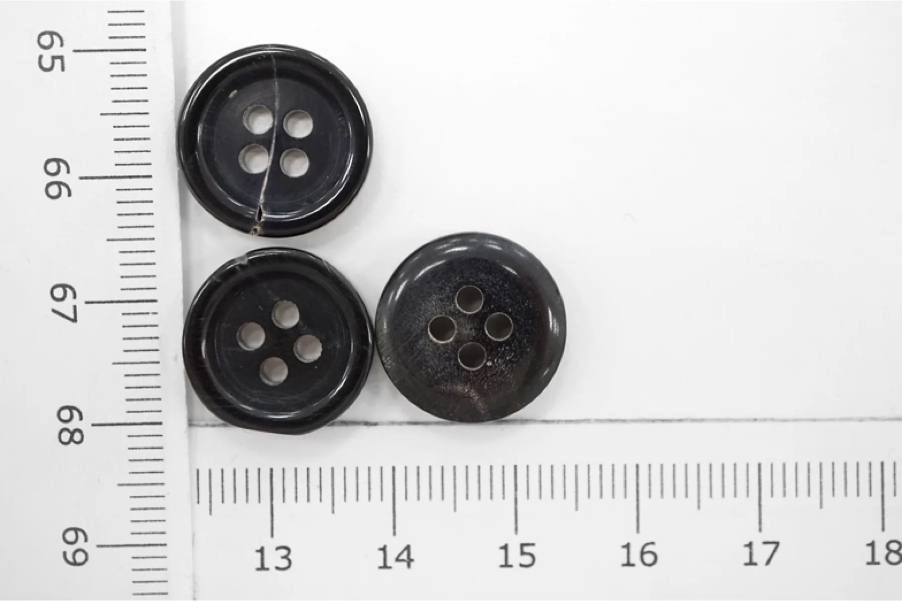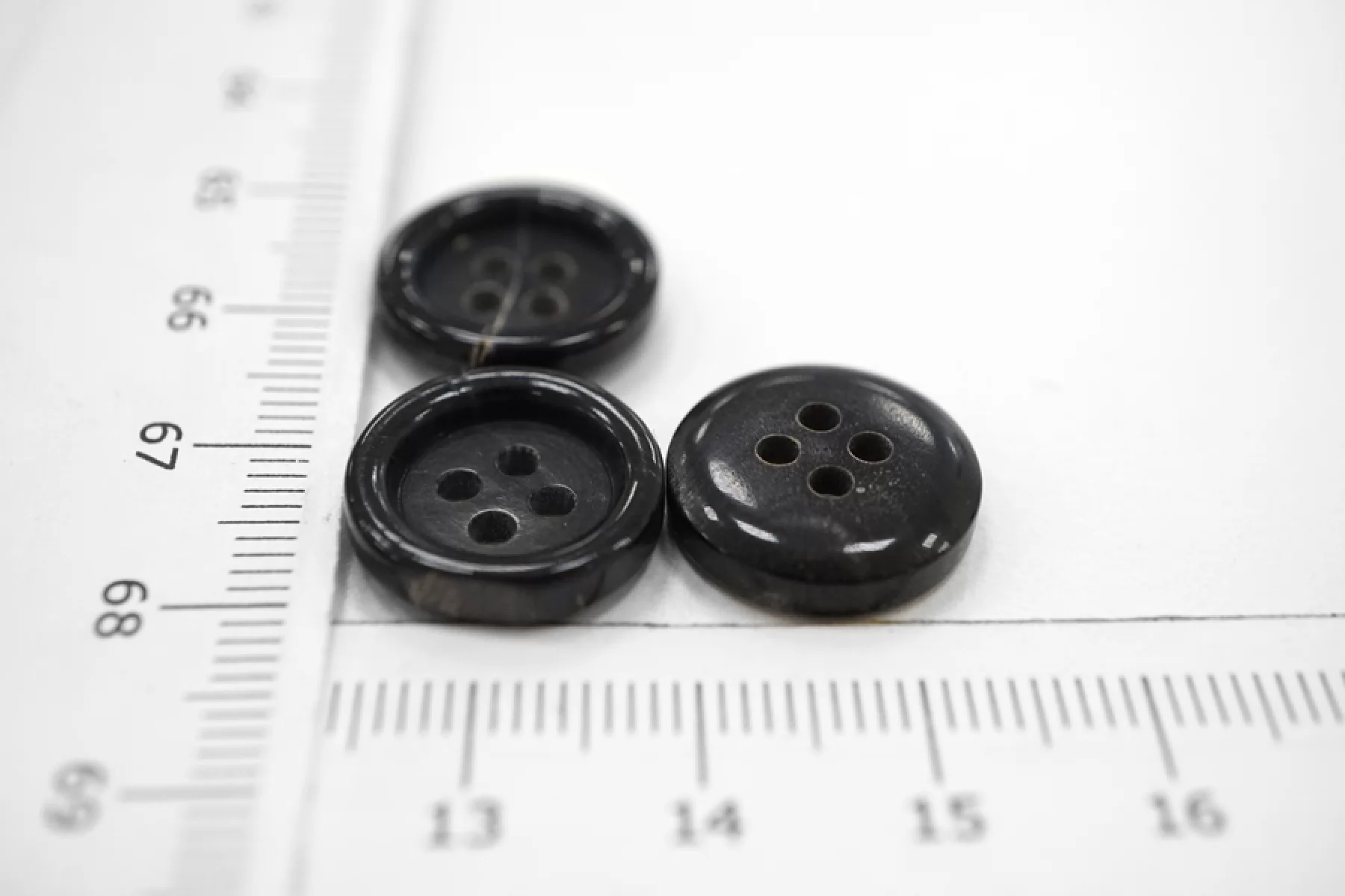 Пуговица плательно-костюмная из пластмассы, черно-синего цвета, под рог, размер 15 мм.