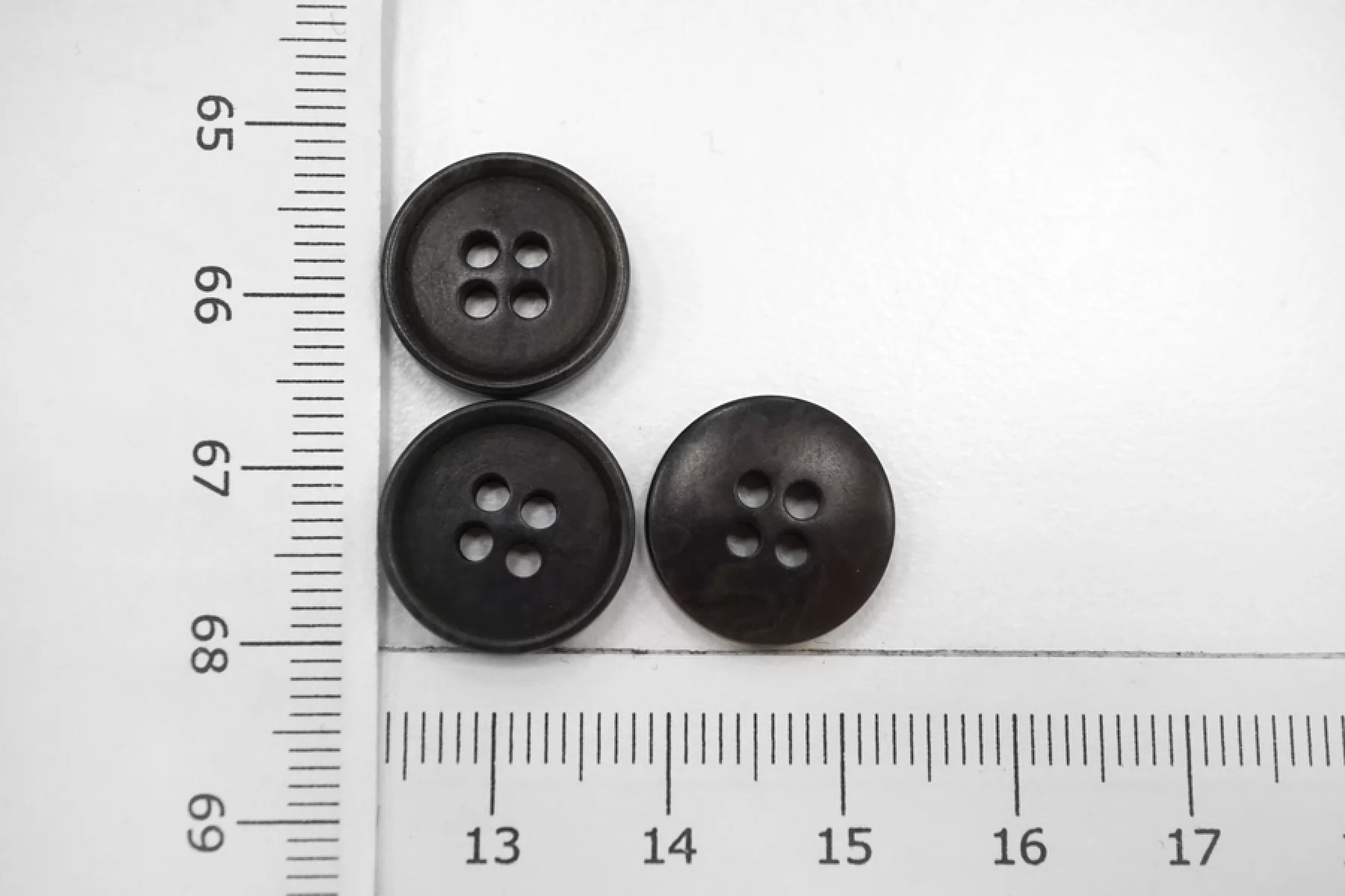 Пуговица плательно-костюмная из пластмассы, чёрно-коричневого цвета, под рог, размер 14 мм.