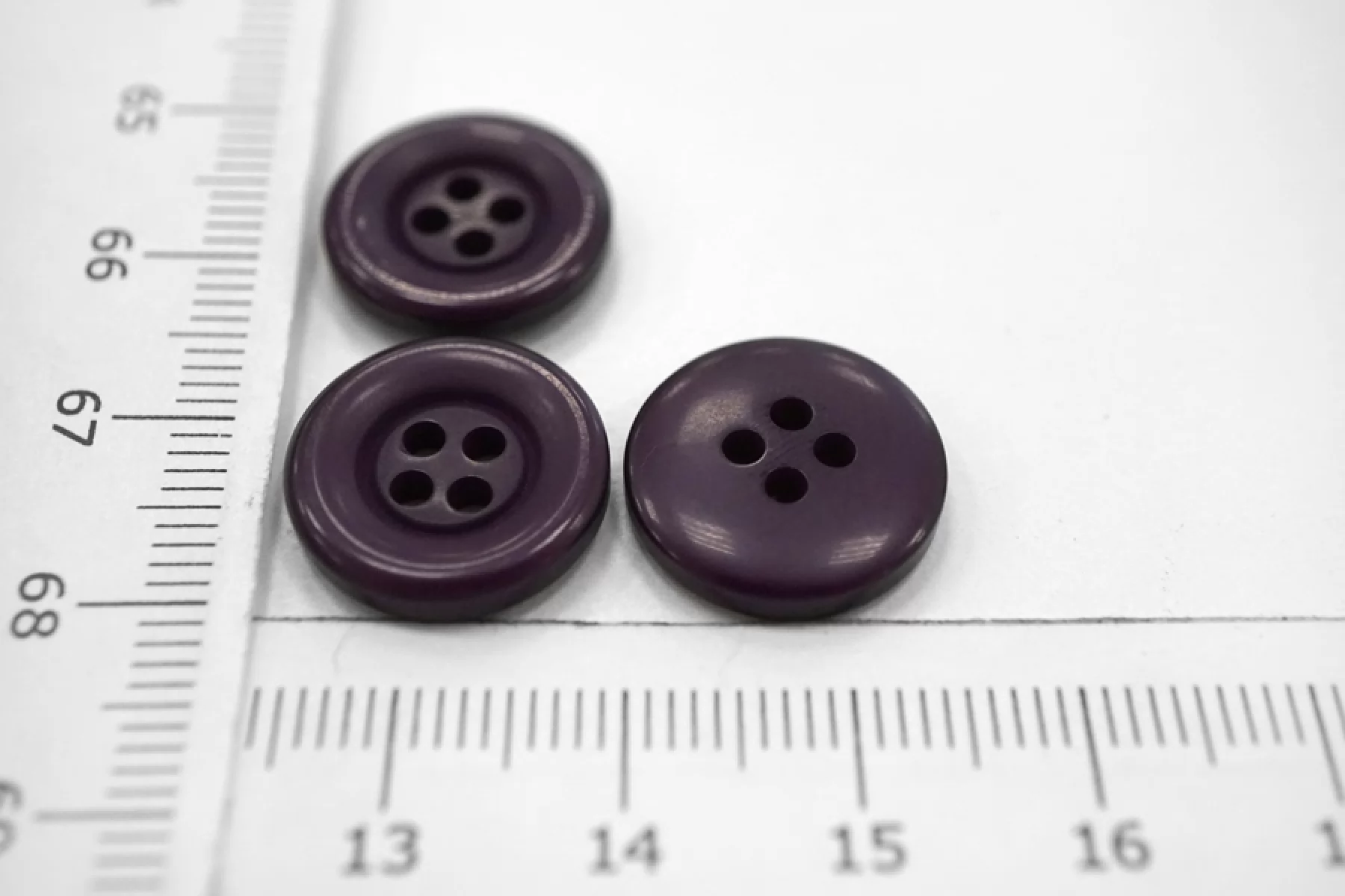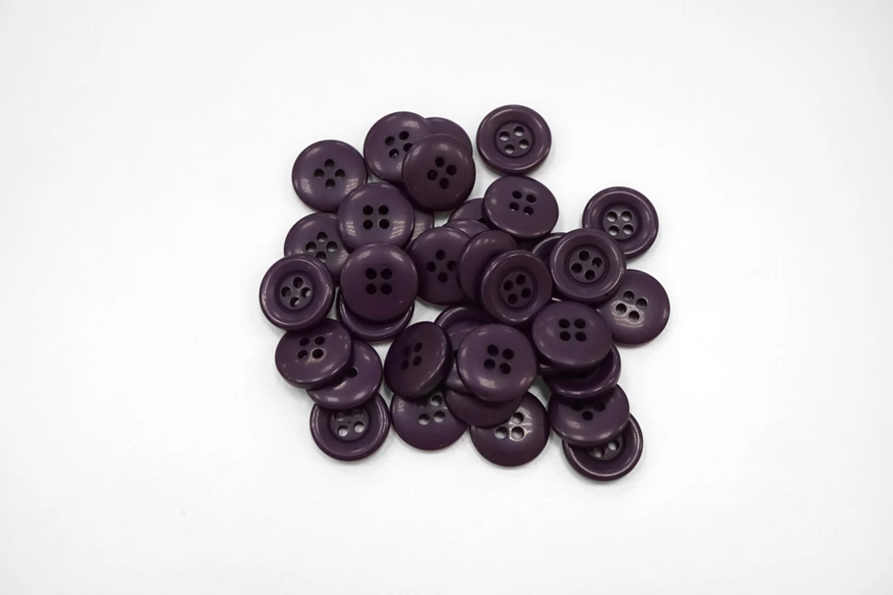 Пуговица плательно-костюмная из пластмассы, тёмно-фиолетого цвета размер 15 мм.
