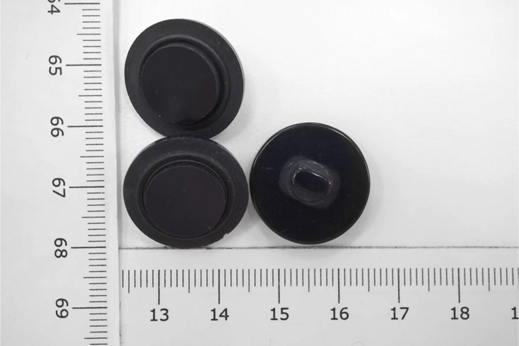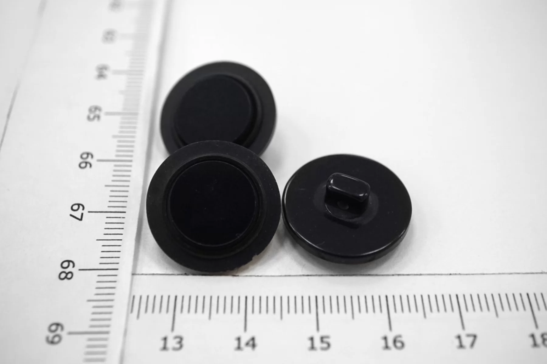 Пуговица плательно-рубашечная из пластмассы, размер 20 мм, на ножке, черно-синего цвета, с матовым ободком и глянцевой серединой