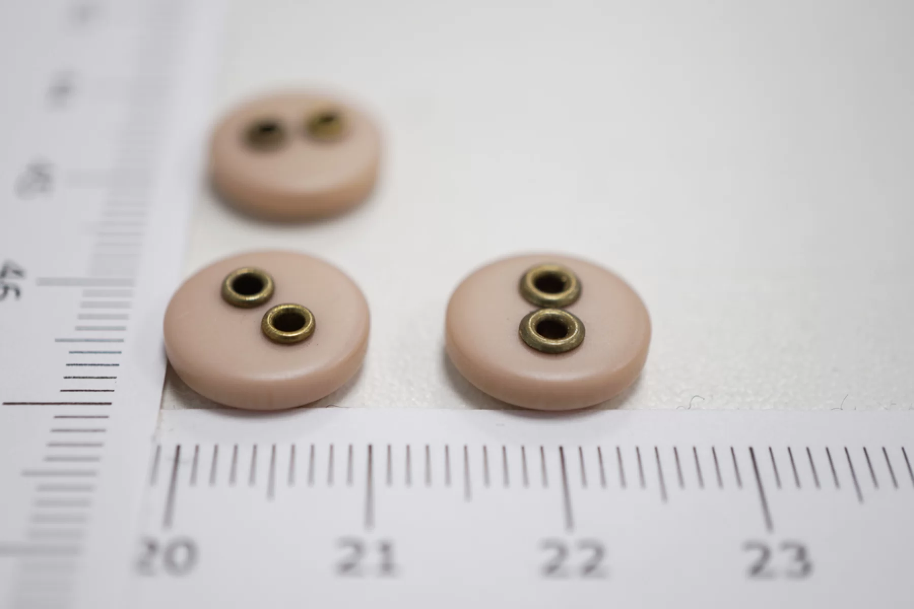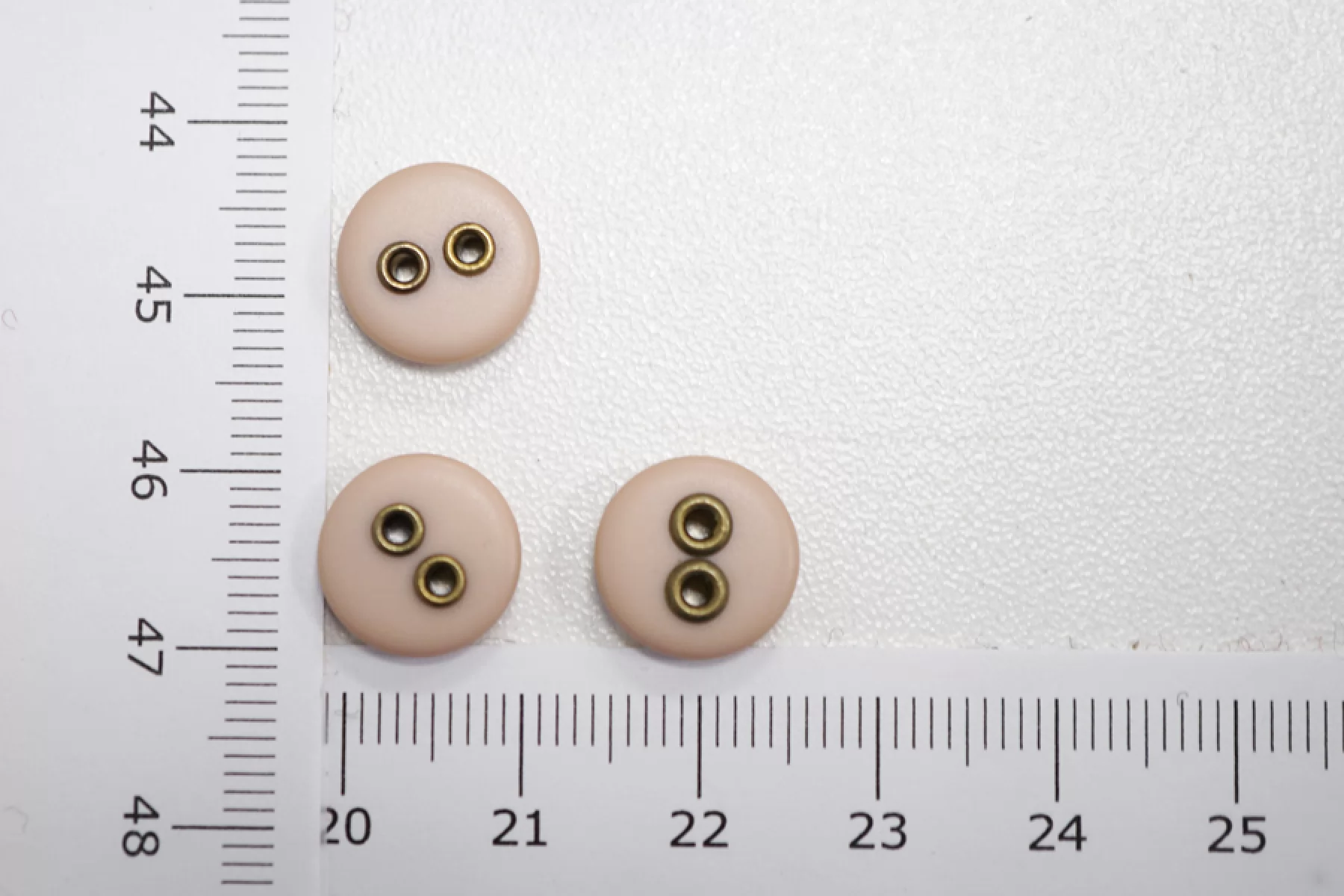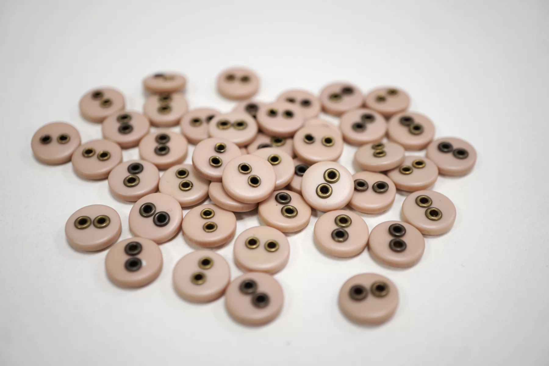 Пуговица плательно-рубашечная из пластмассы, размер 12 мм, пыльно-розового цвета с металлическими отверстиями.