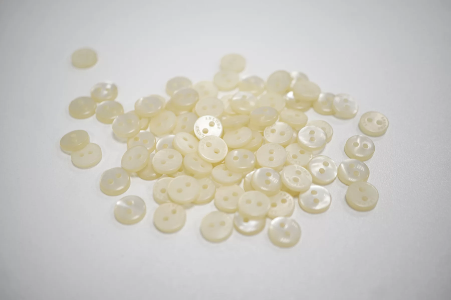 Пуговица плательно-рубашечная из пластмассы с надписью "Iblues", размер 8 мм, молочного цвета под перламутр - A1- 24082088