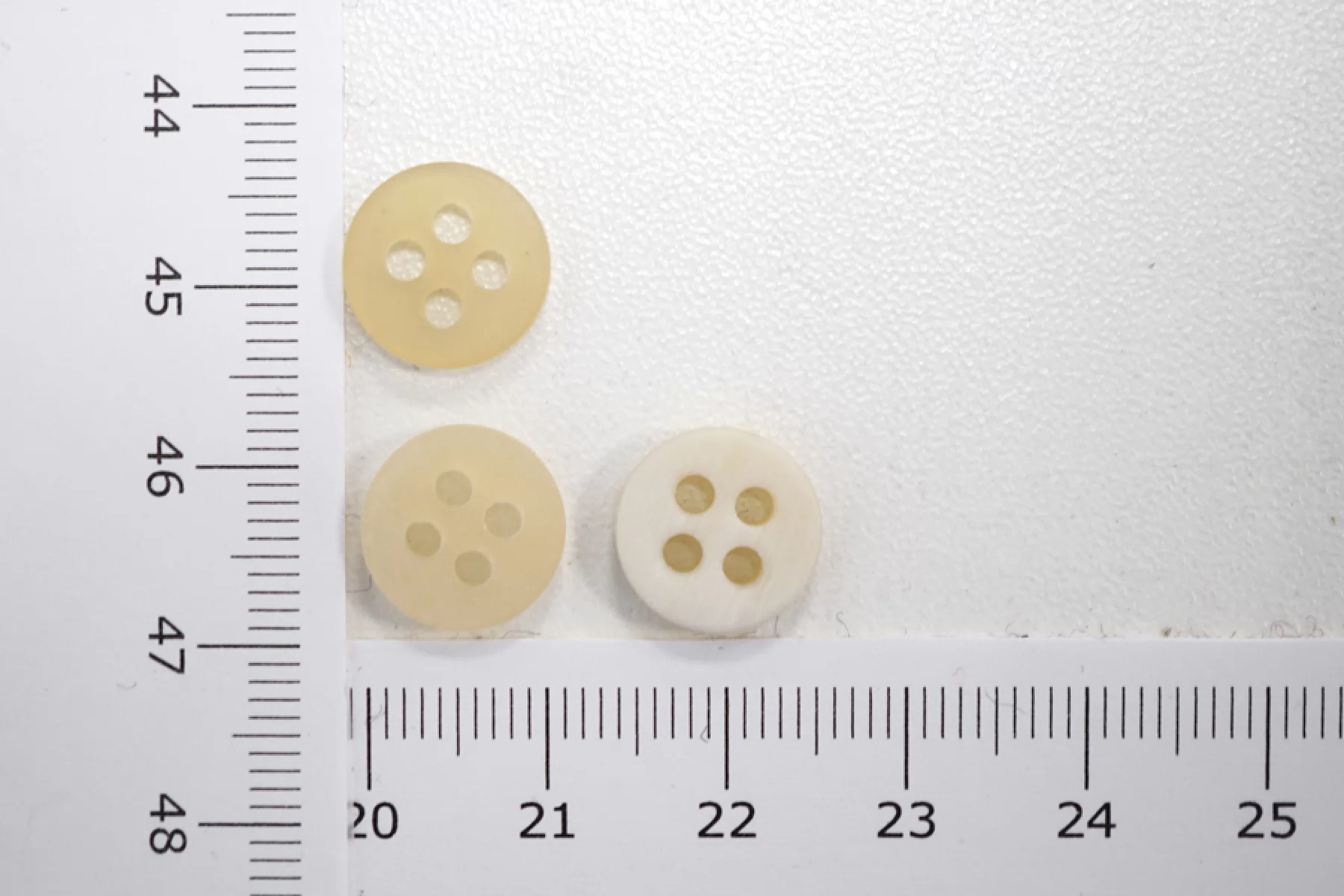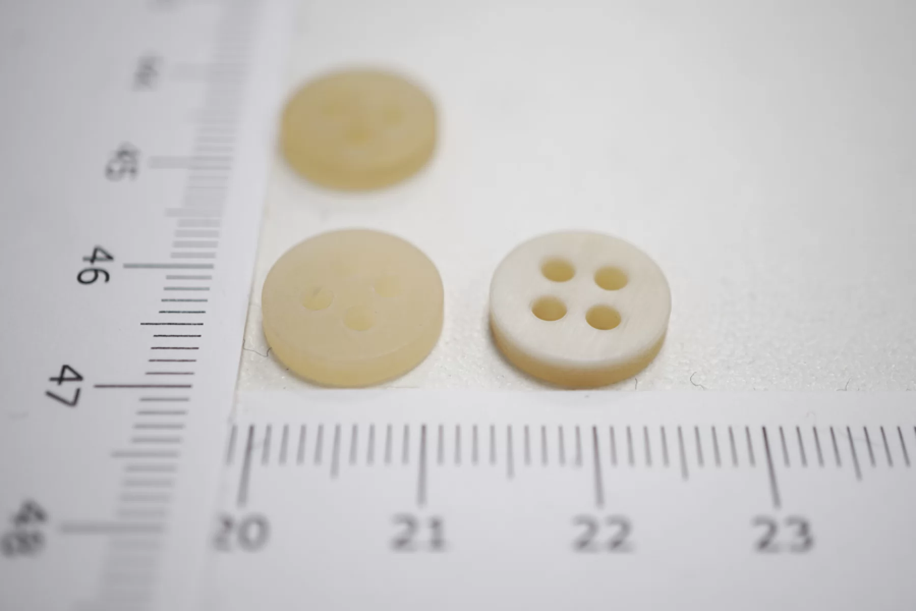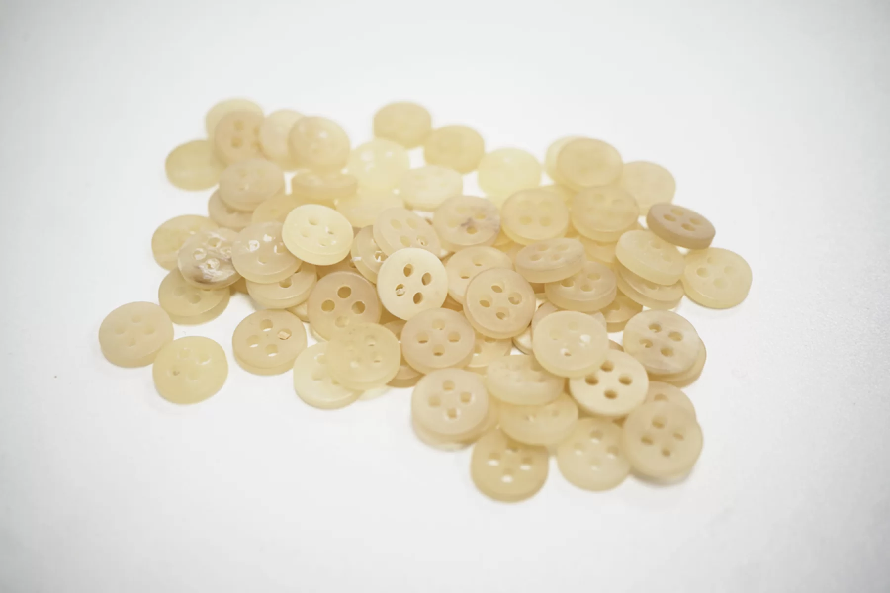 Пуговица плательно-рубашечная из рога, размер 12 мм, молочного цвета, полупрозрачная.