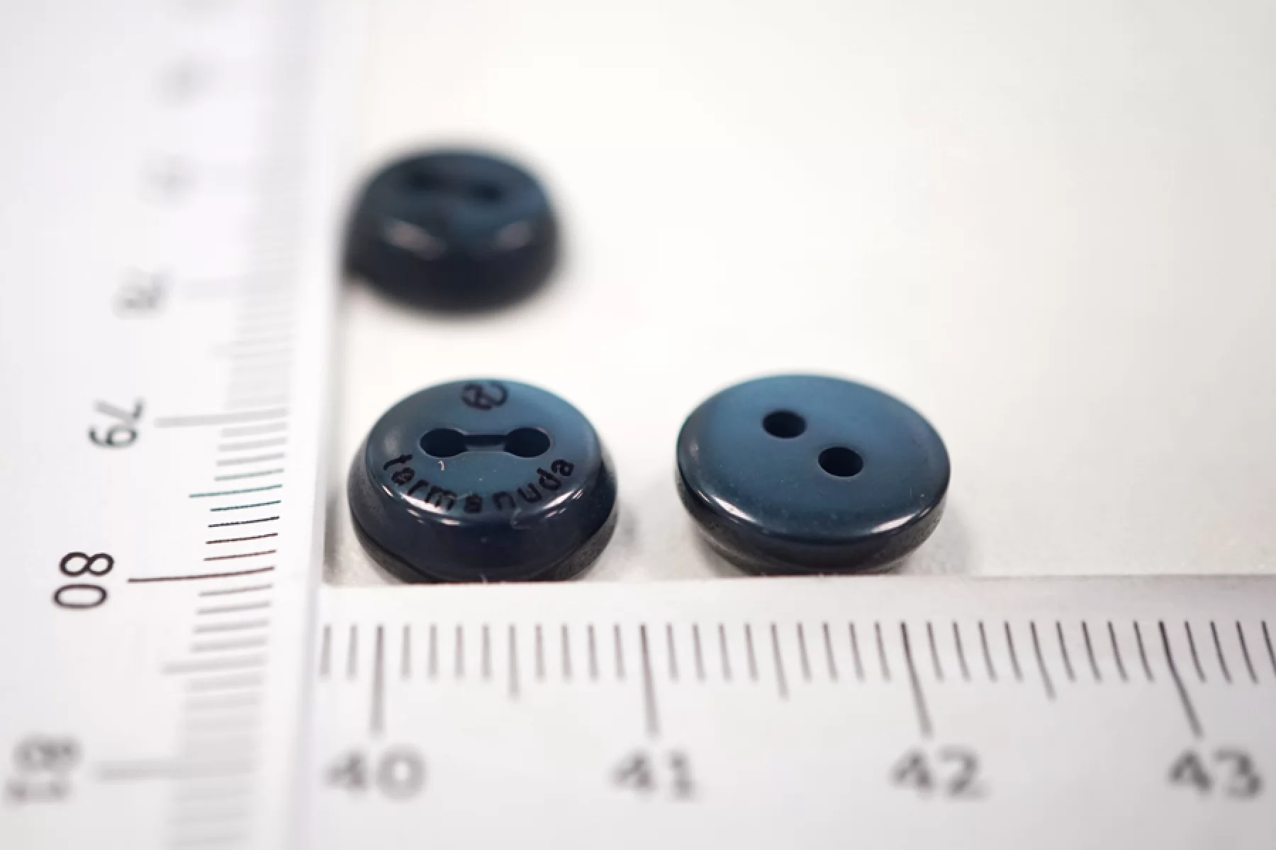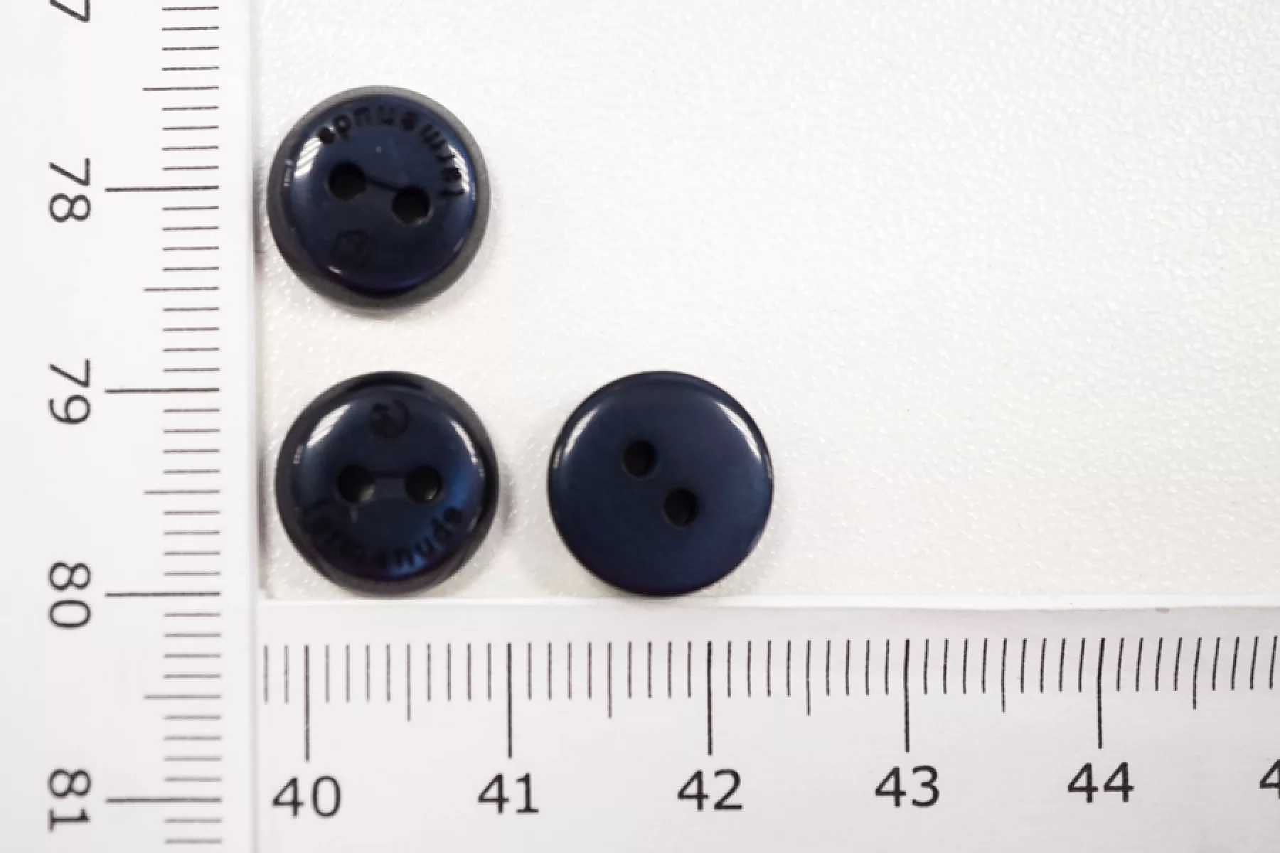 Пуговица плательно-рубашечная "Tarmanuda" из пластмассы, размер 11 мм, темно-синего цвета под перламутр.