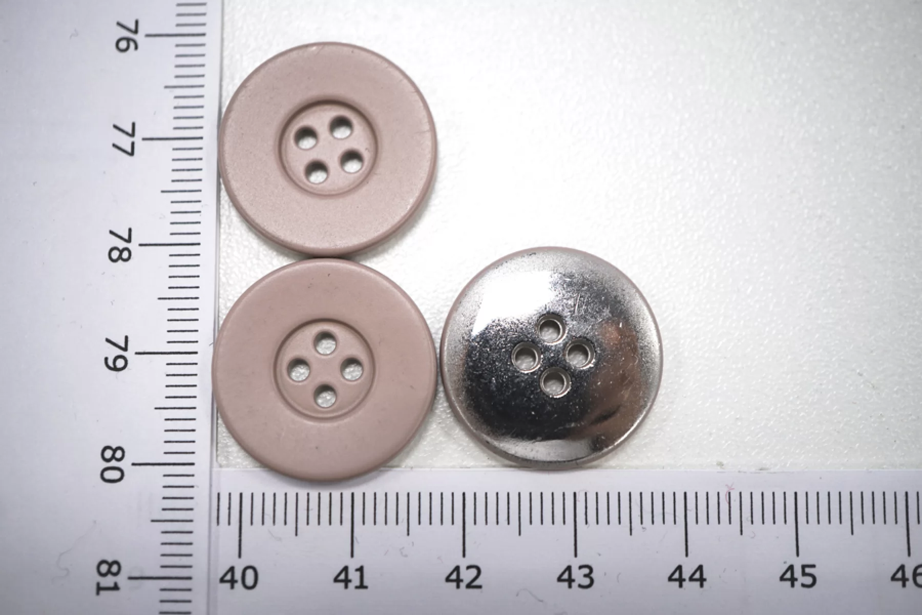 Пуговица металлическая, размер 20 мм, пыльно-розового цвета с легким блеском.