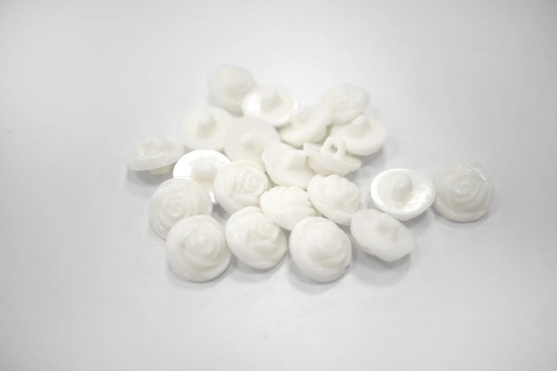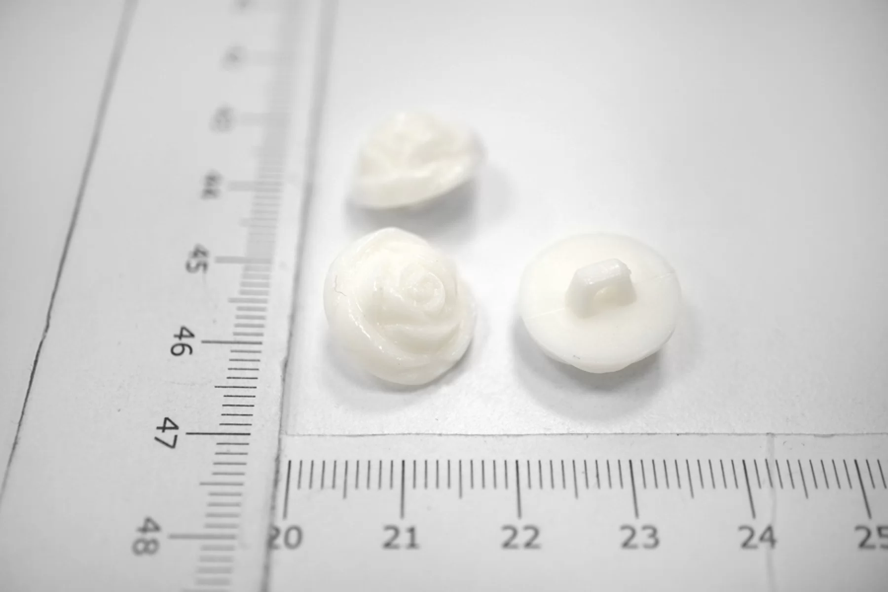 Пуговица роза костюмно-плательная пластик белая на ножке 15 мм - A1 3012224