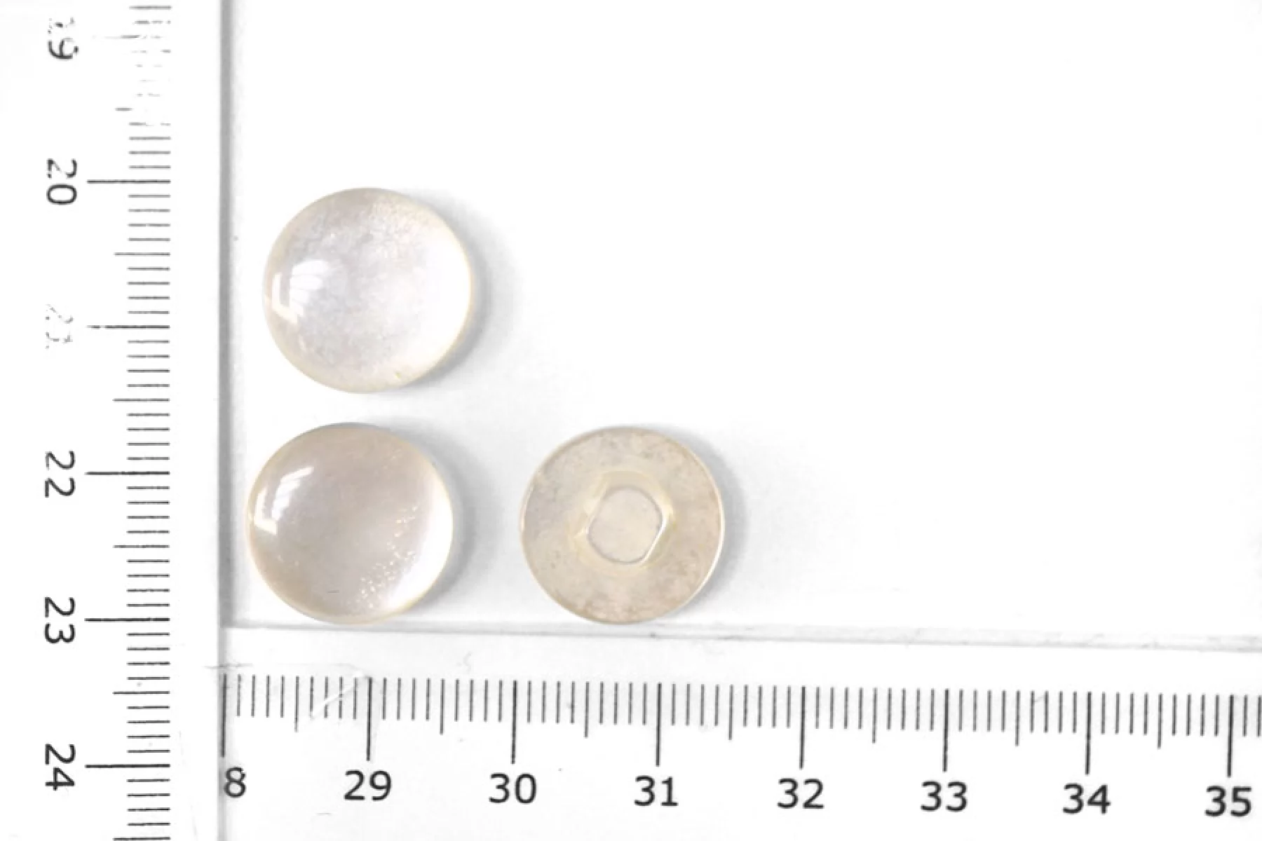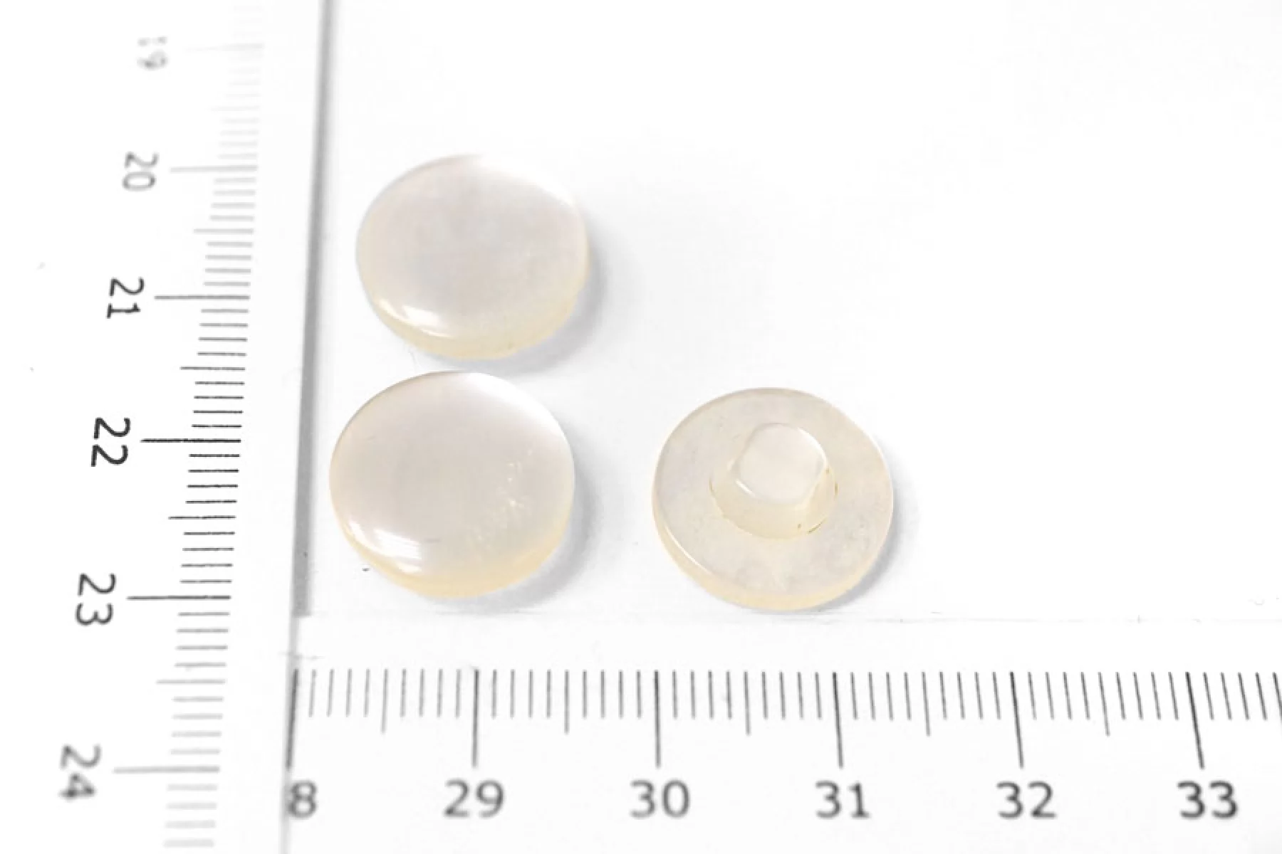 Пластиковая пуговица на ножке под перламутр прозрачно-белая, размер 15 мм.