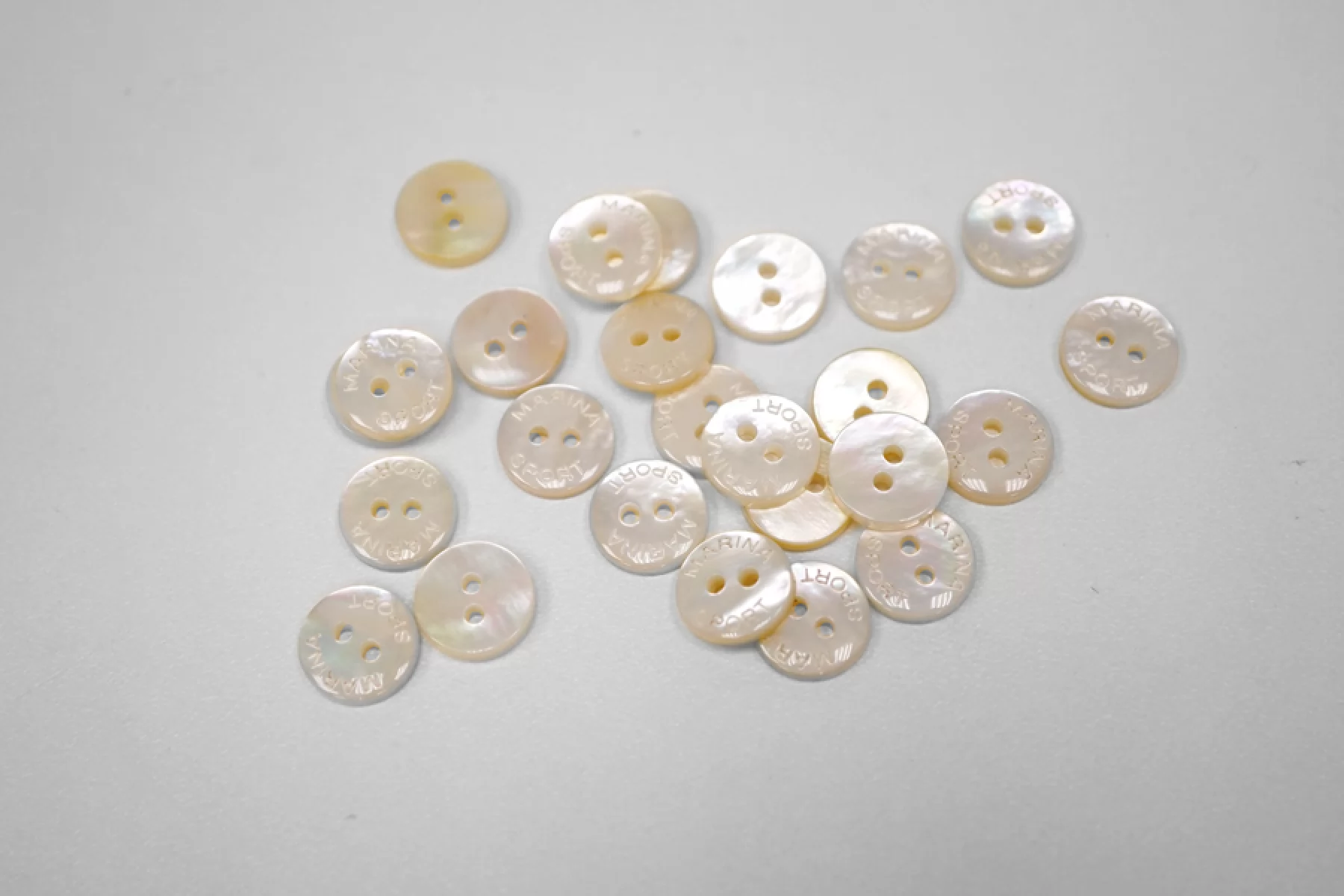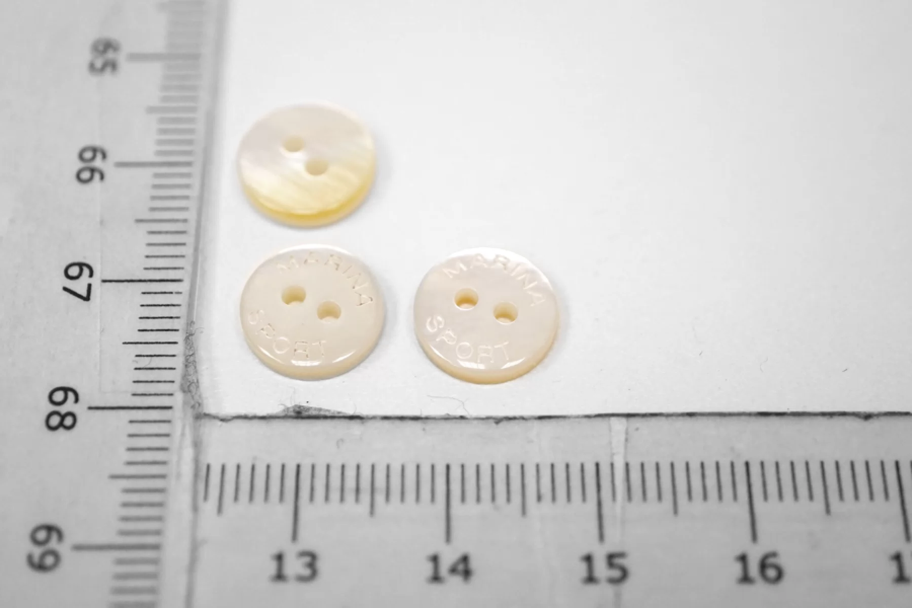 Пуговица из перламутра, молочного цвета от MARINA SPORT , размер 10 мм. Пуговицы из натурального перламутра, хрупкие, скалываются при падении с высоты или при сильном сжатии.