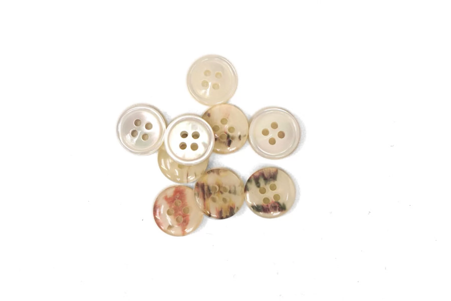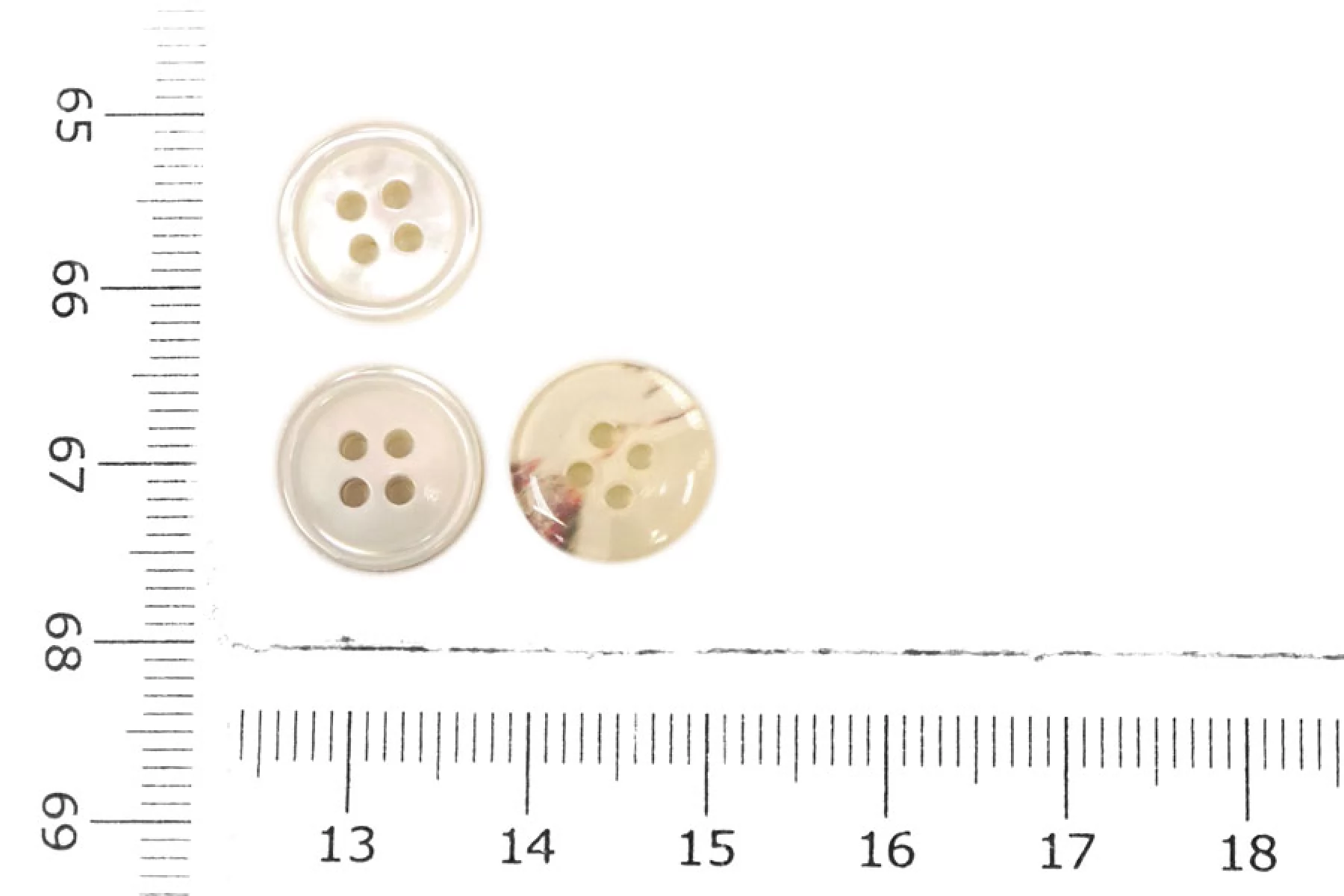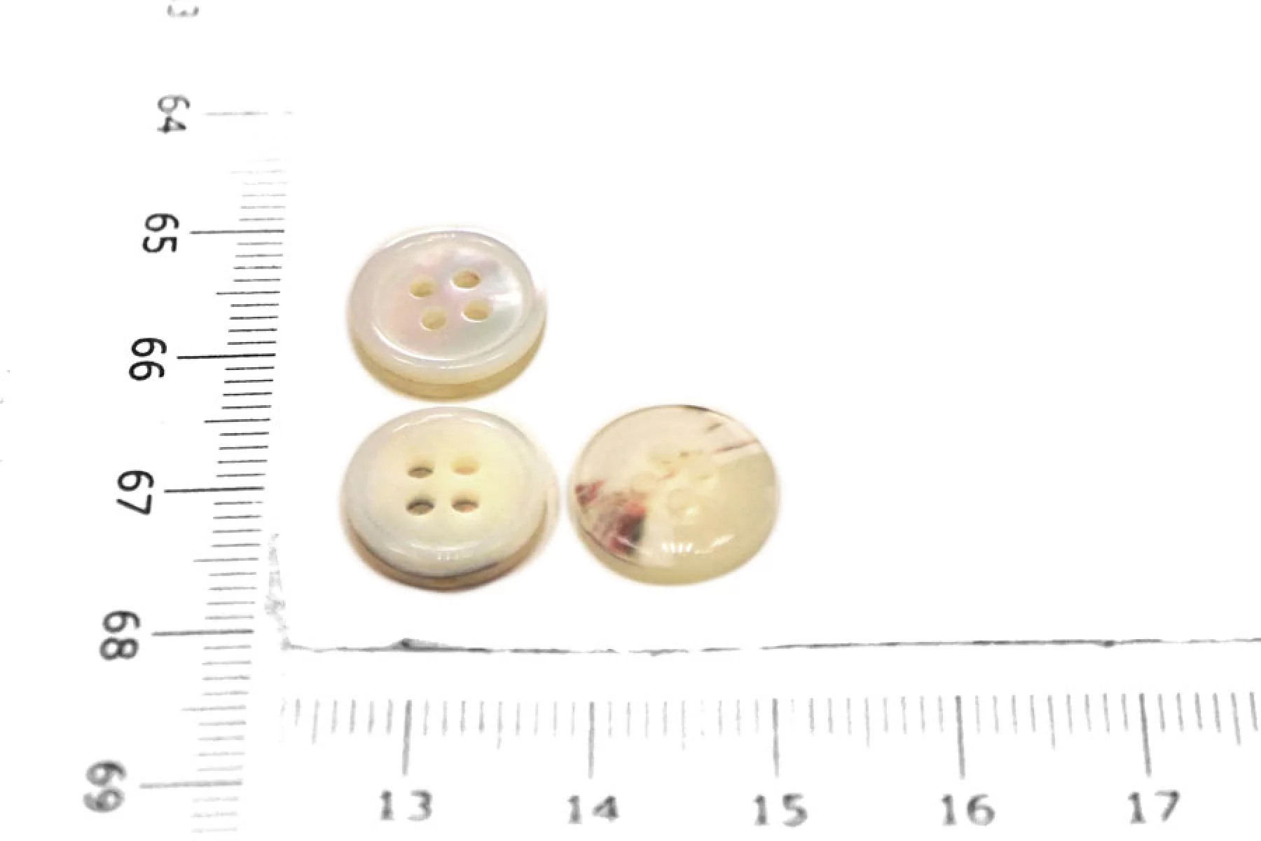 Пуговица из перламутра, молочного цвета с розовыми вкрапления с обратной стороны, размер 12 мм. Пуговицы из натурального перламутра, хрупкие, скалываются при падении с высоты или при сильном сжатии.