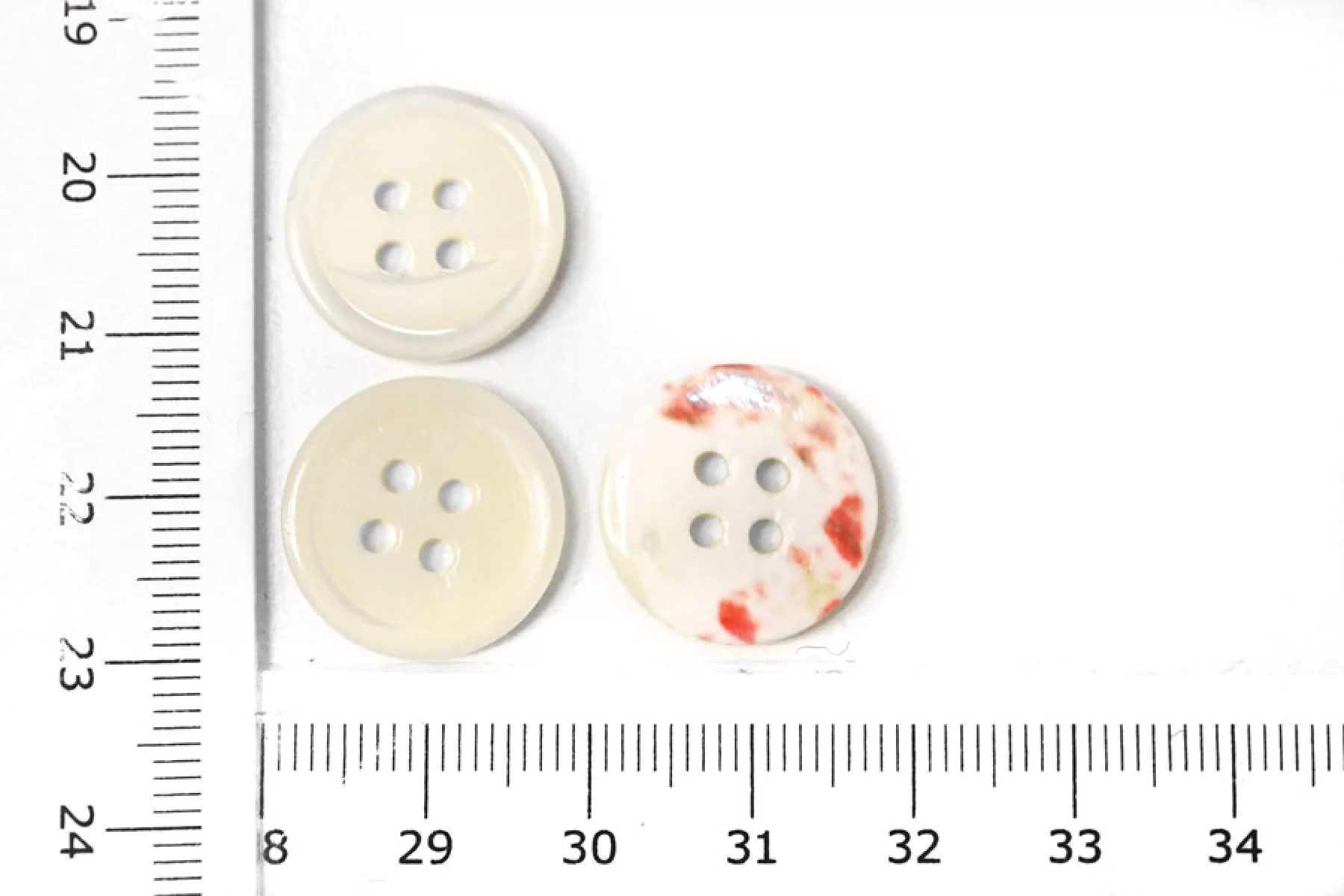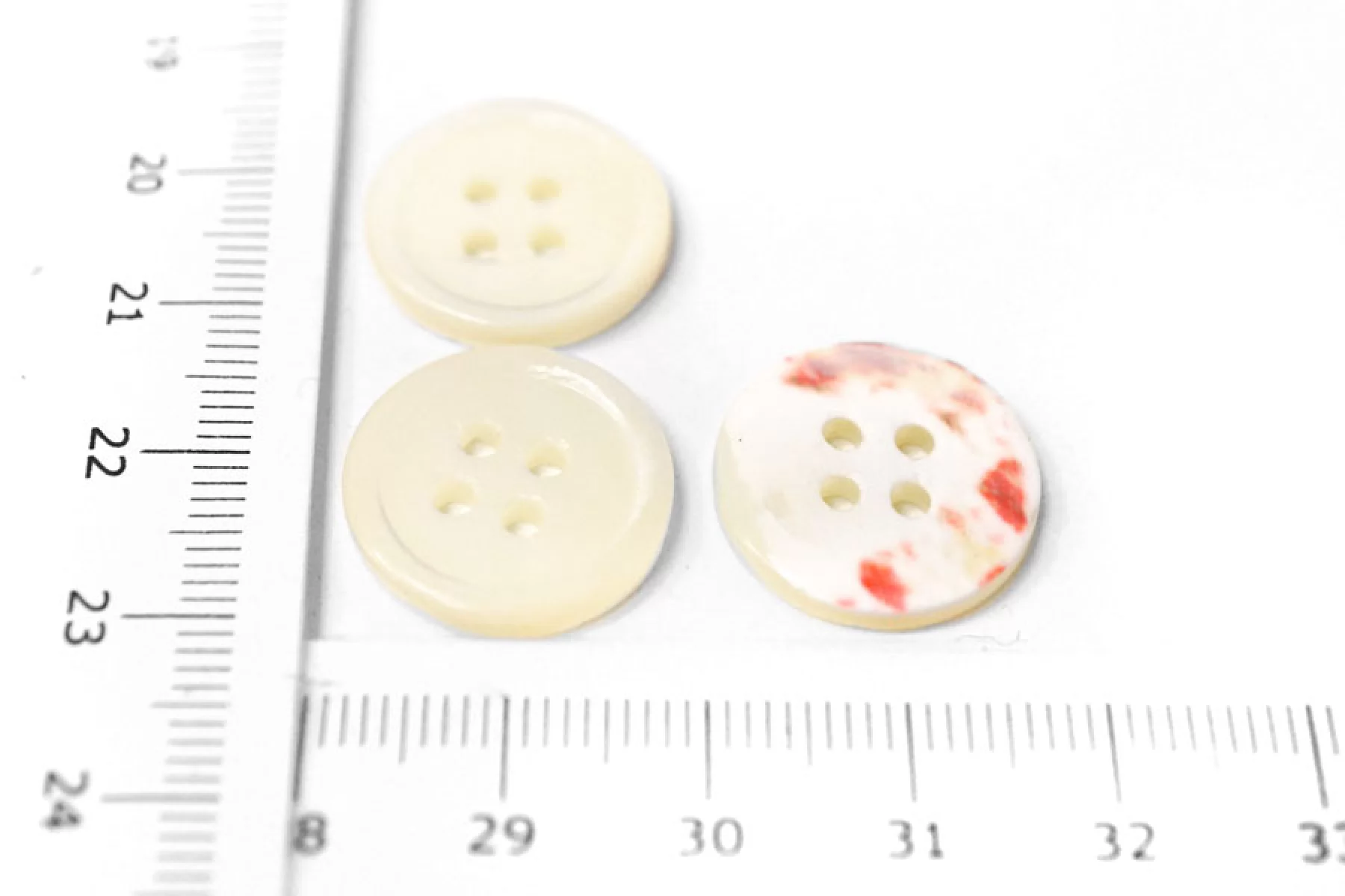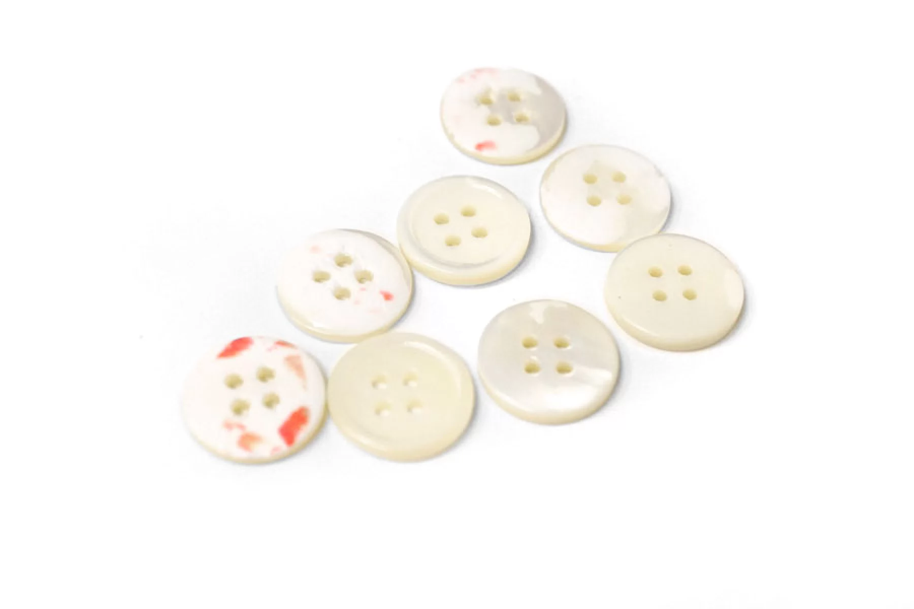 Пуговица из перламутра, молочного цвета с розовыми вкрапления с обратной стороны, размер 18 мм. Пуговицы из натурального перламутра, хрупкие, скалываются при падении с высоты или при сильном сжатии.