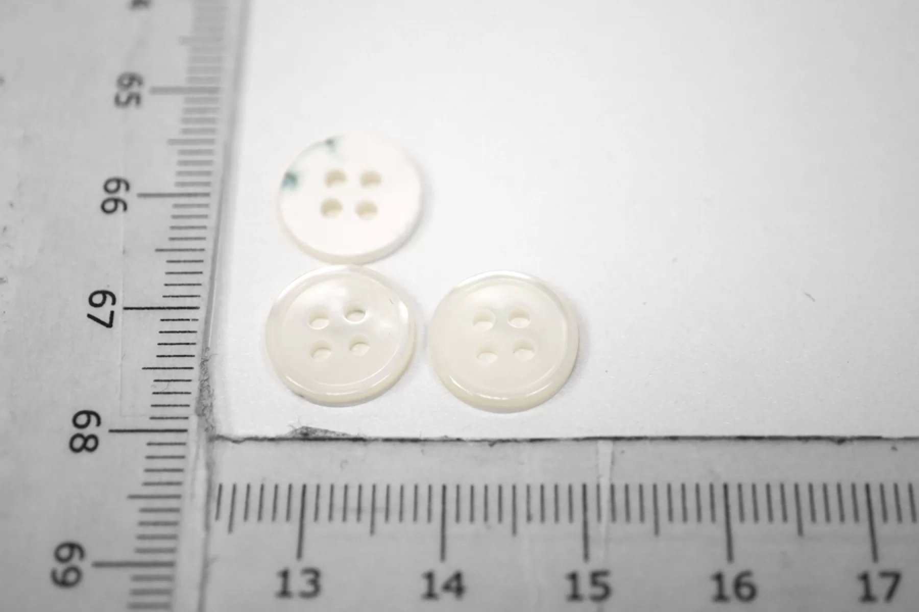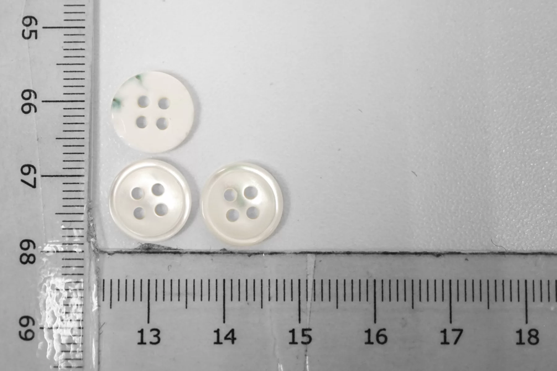 Пуговица из перламутра, бело-зеленого цвета, размер 11 мм. Пуговицы из натурального перламутра, хрупкие, скалываются при падении с высоты или при сильном сжатии.