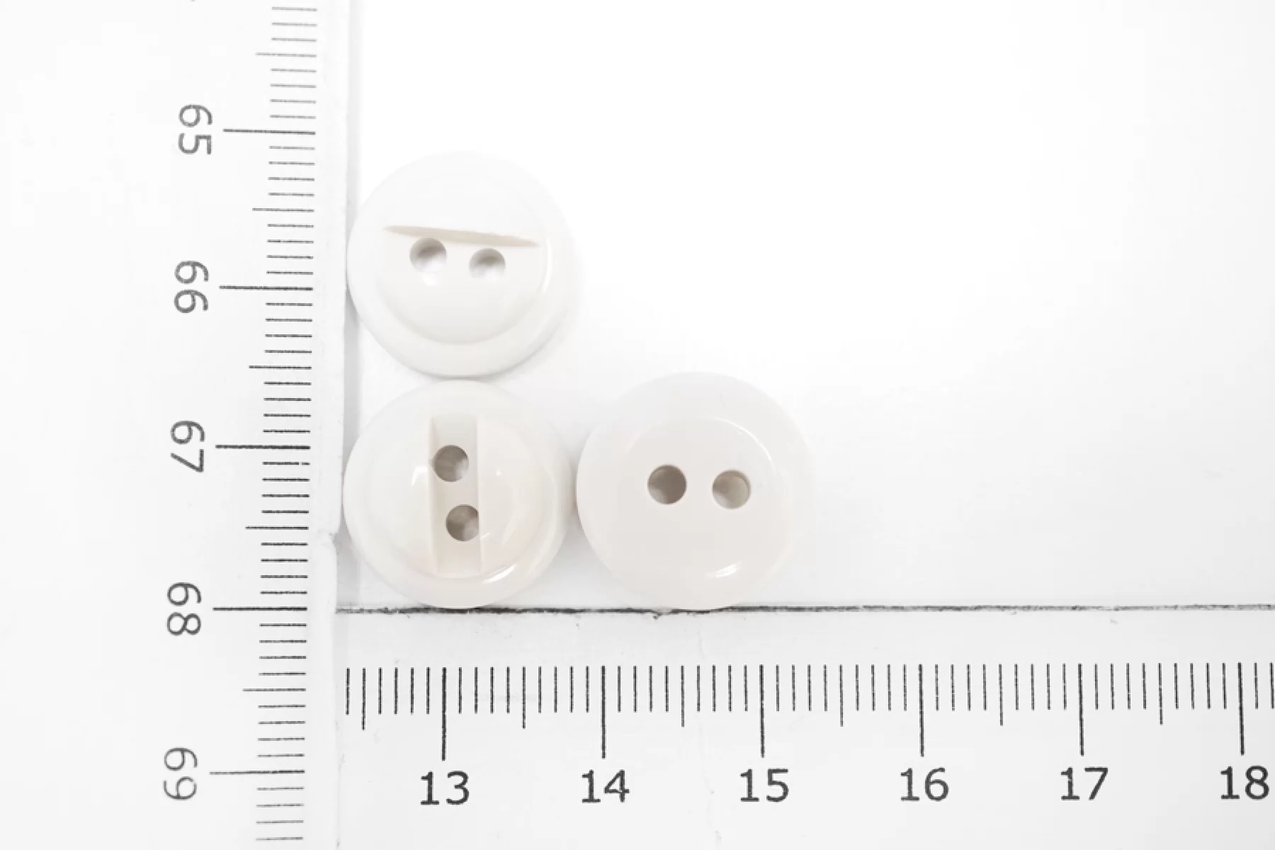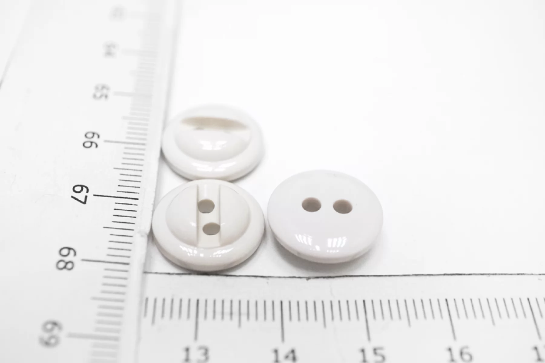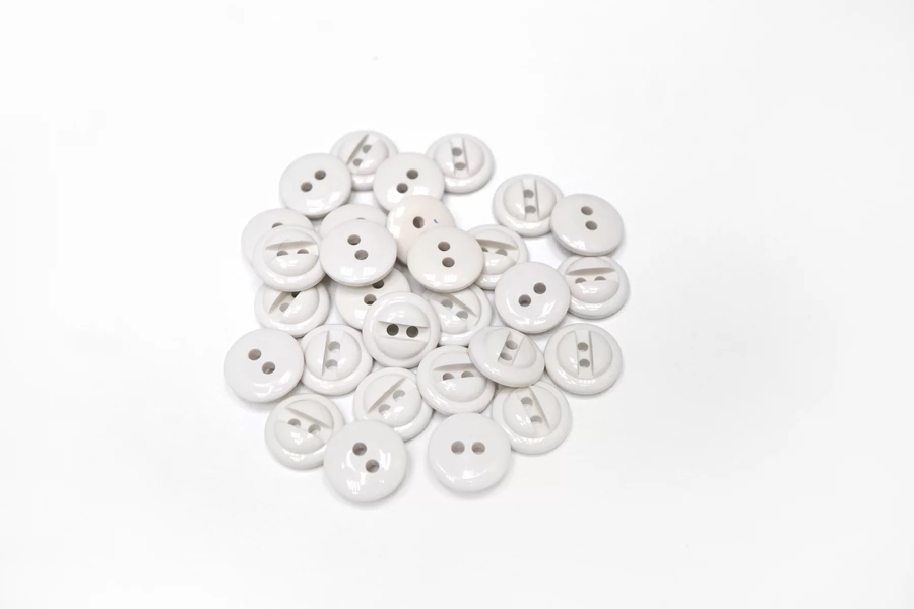 Пуговица глянцевая рубашечная, пластиковая, молочно-серого цвета, размер 15 мм.