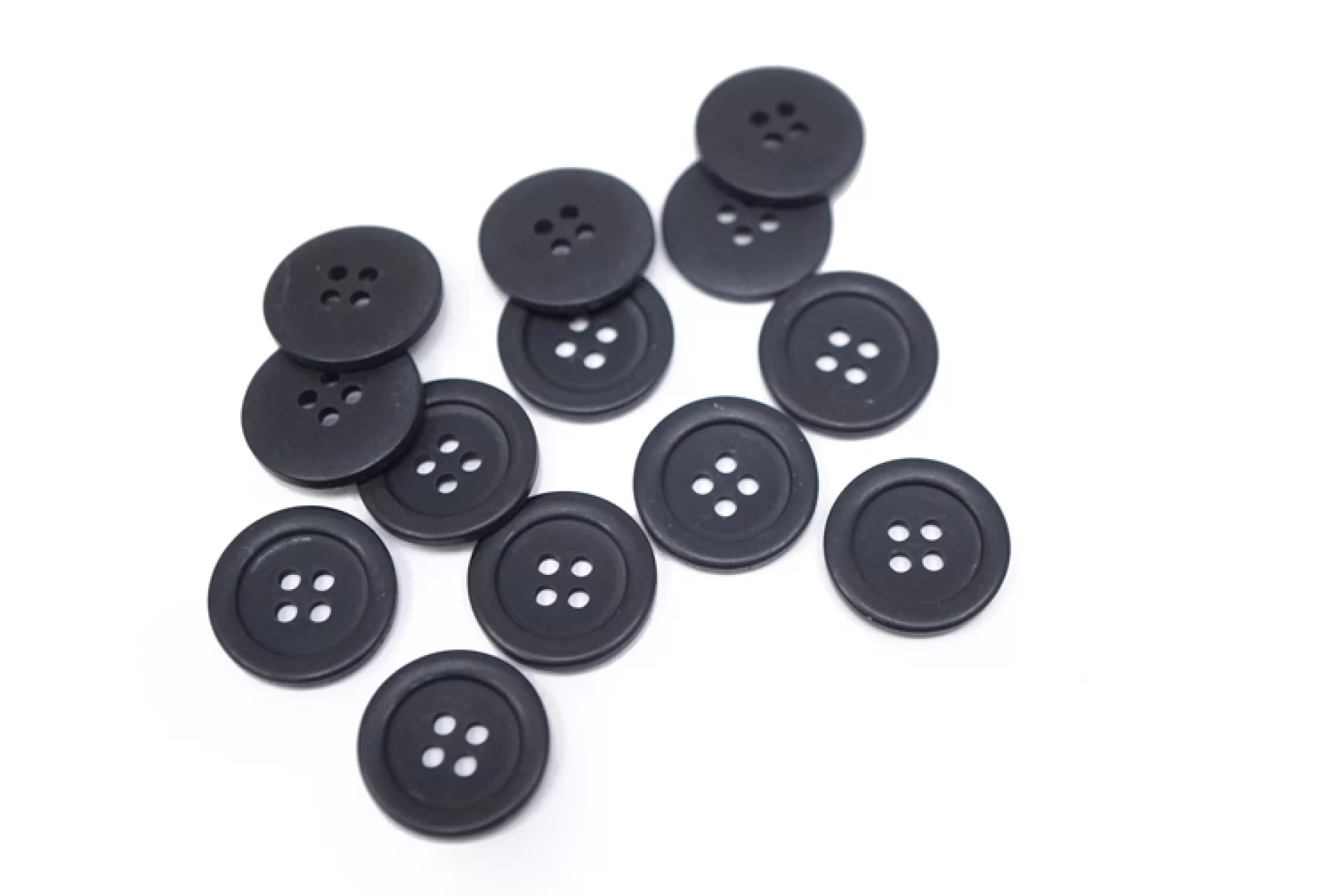 Пуговица рубашечная пластиковая, матовая, размер 16 мм, черного цвета.