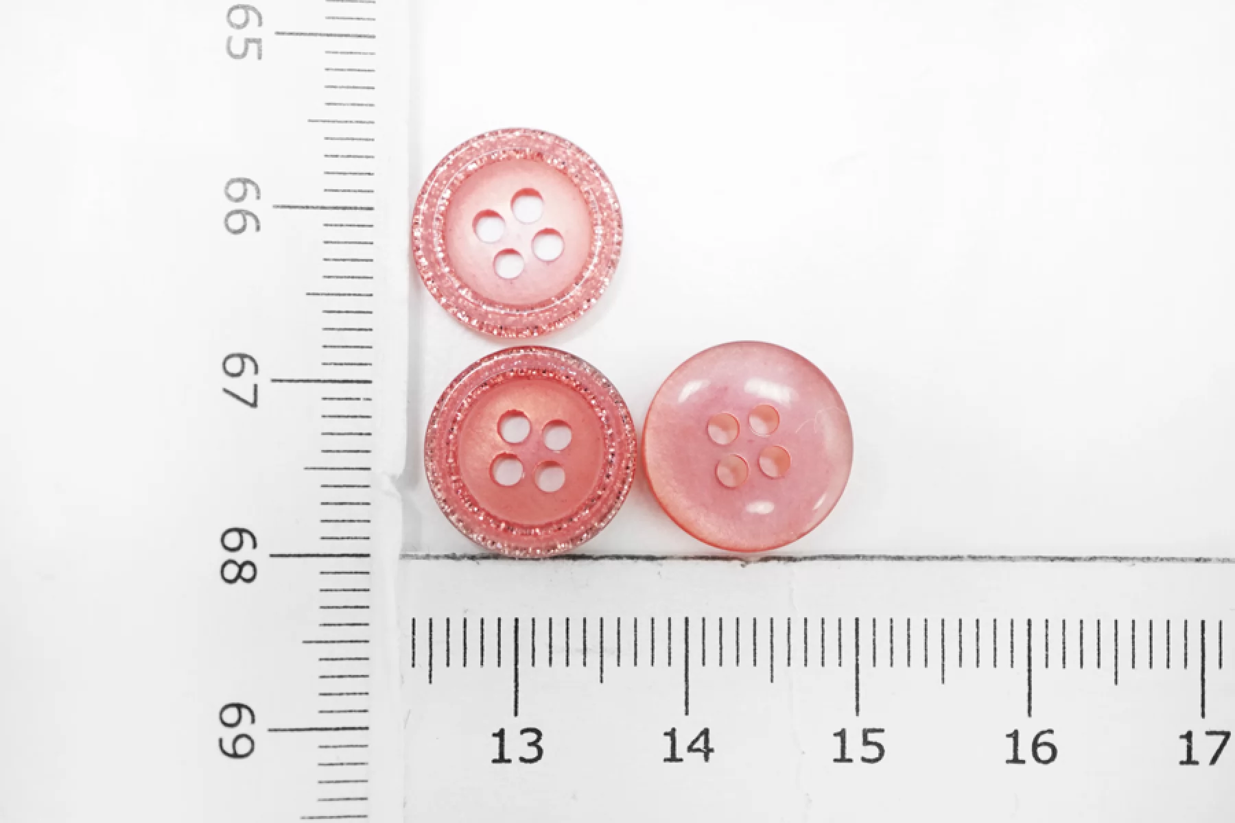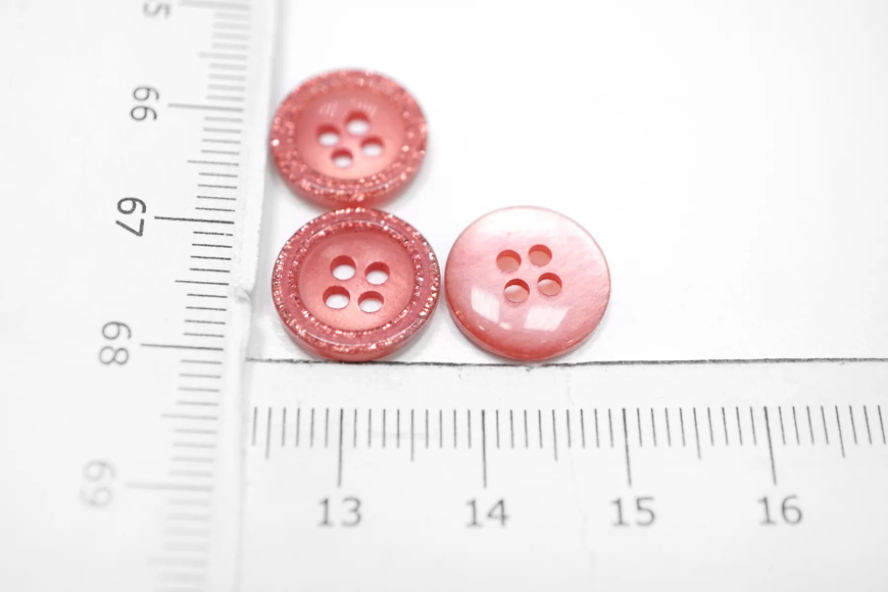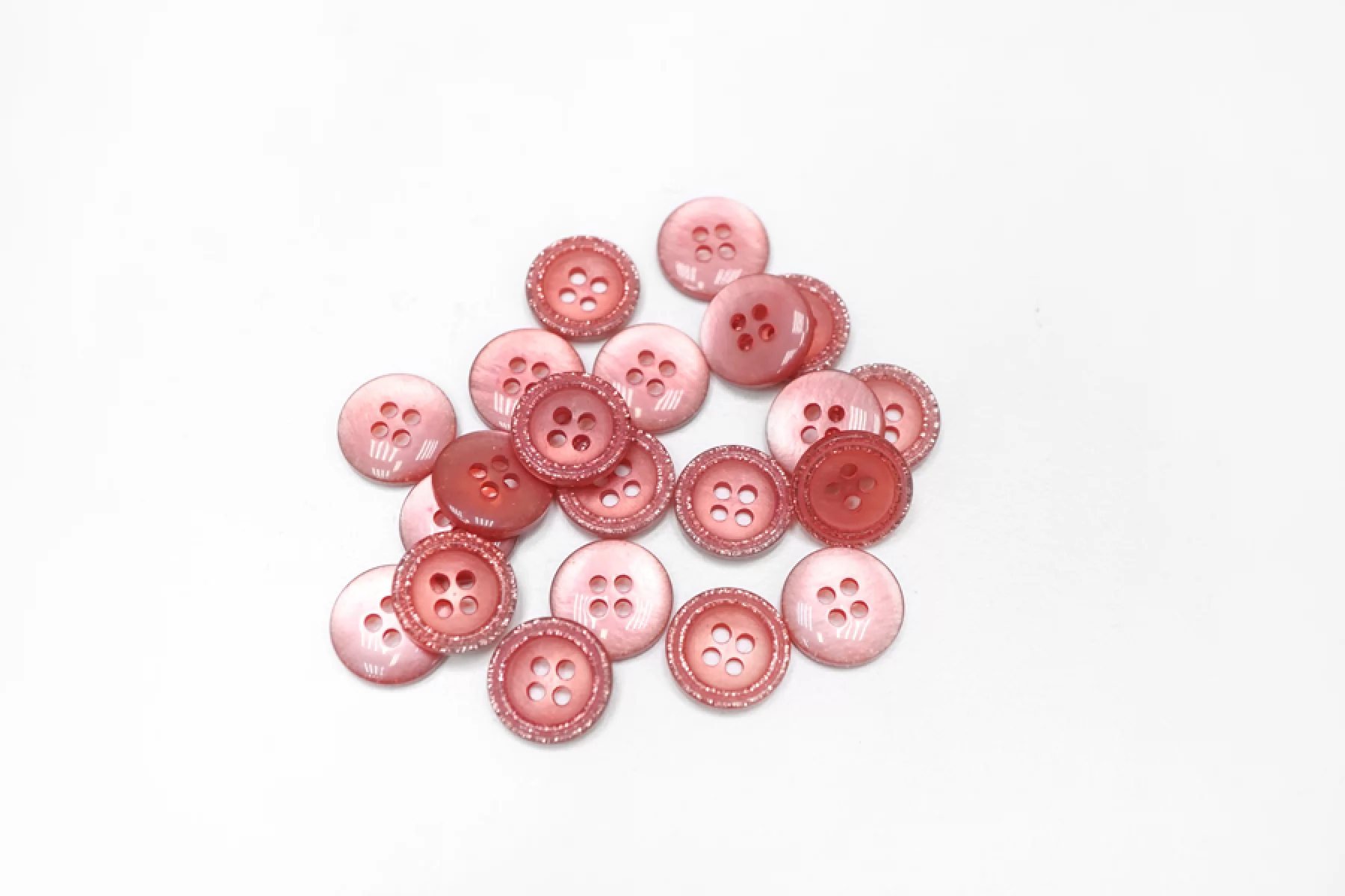 Пуговица перламутровая рубашечная, пластиковая, розового цвета с блестящим ободком, размер 13 мм.