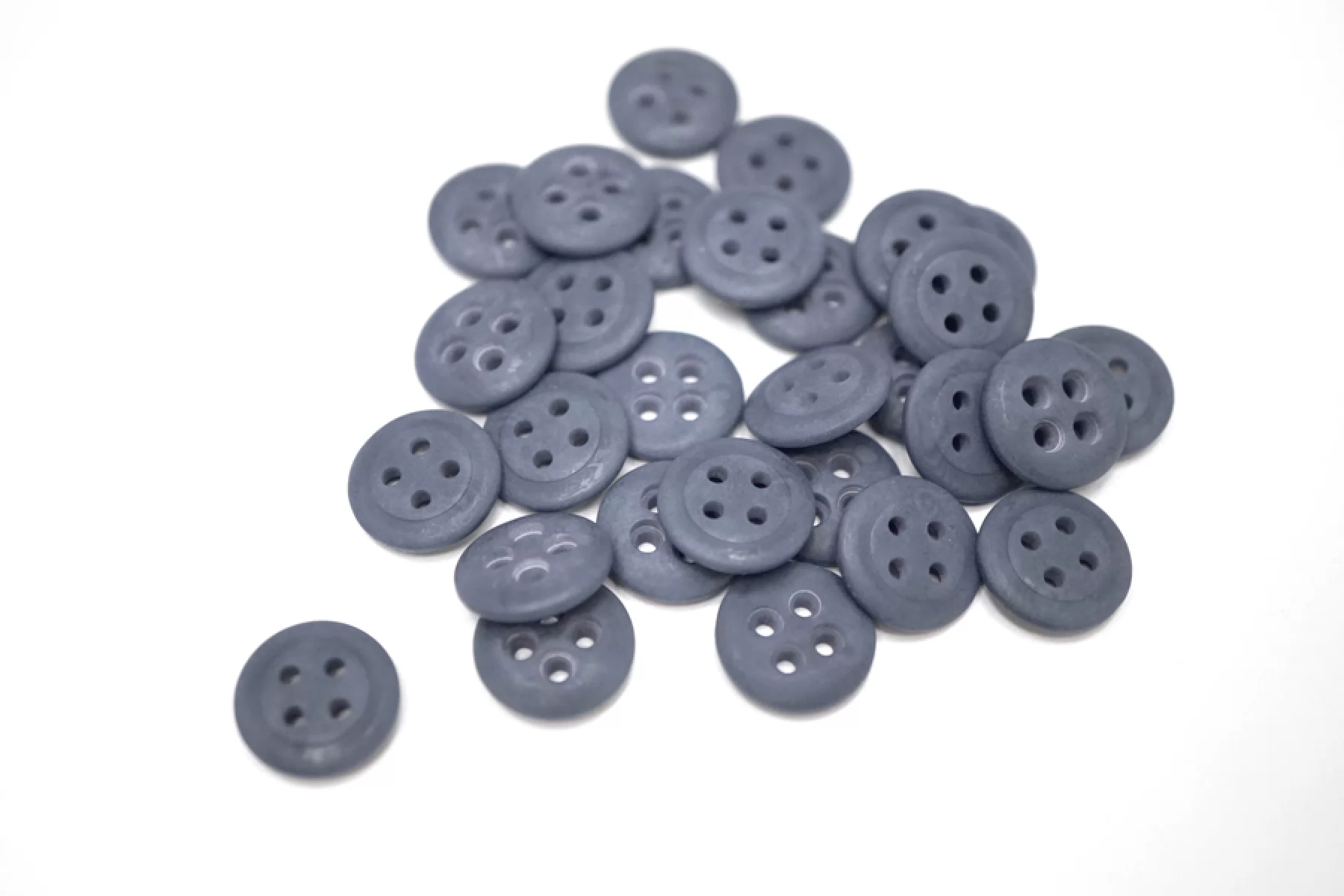 Пуговица рубашечная матовая, пластиковая, размер 12 мм, дымчатого оттенка с синеватым подтоном.