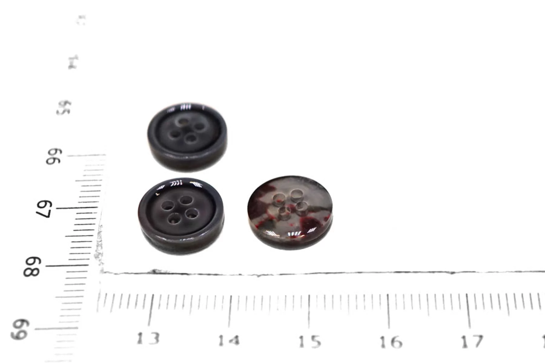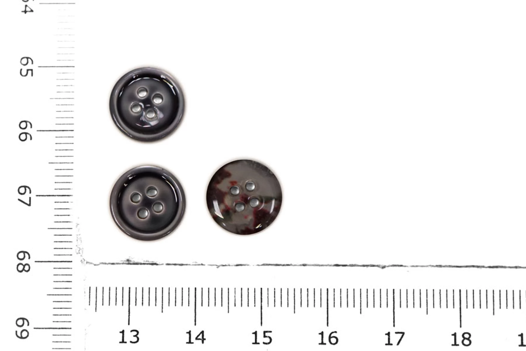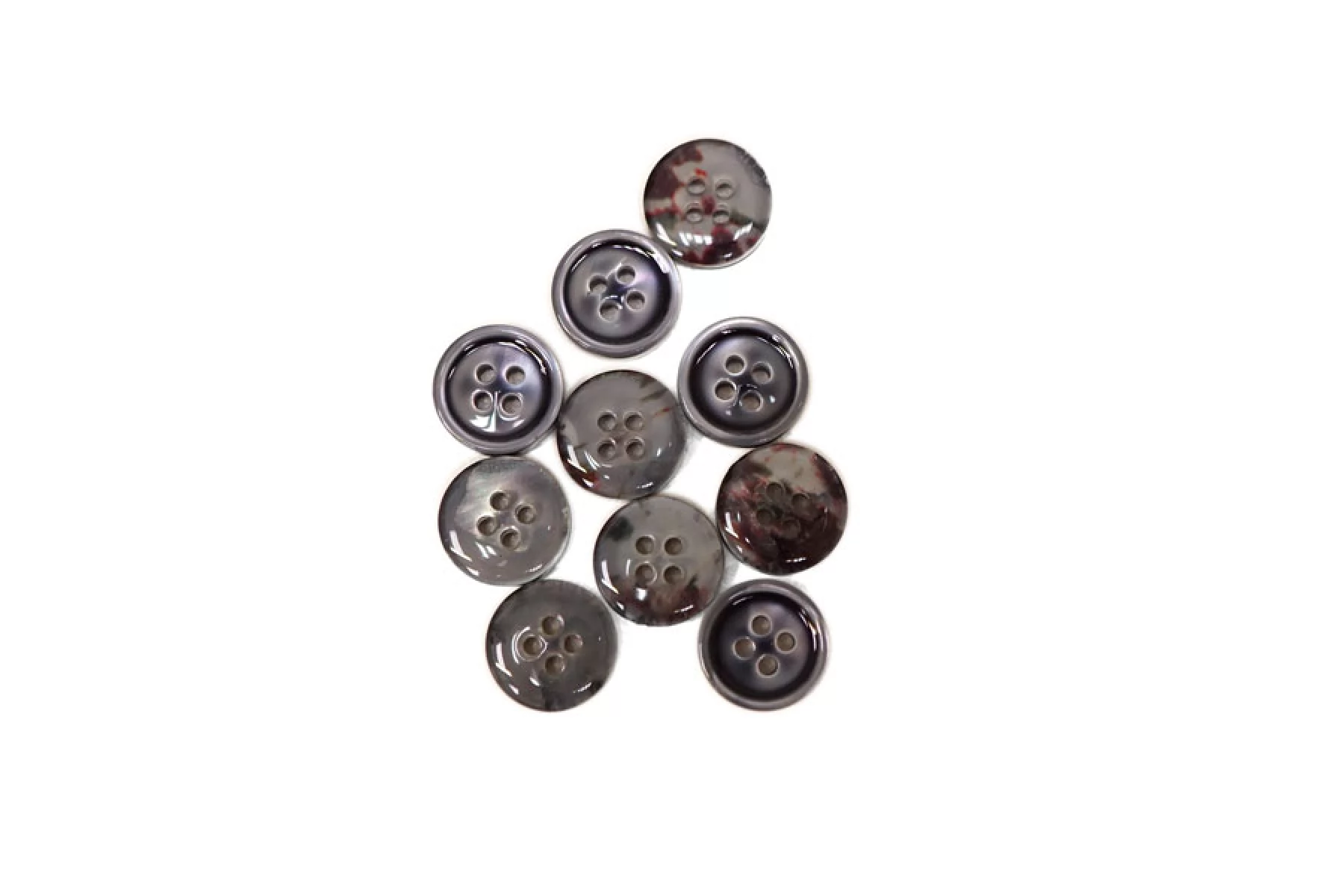 Пуговица серая из перламутра, размер 11 мм. Пуговицы из натурального перламутра, хрупкие, скалываются при падении с высоты или при сильном сжатии.