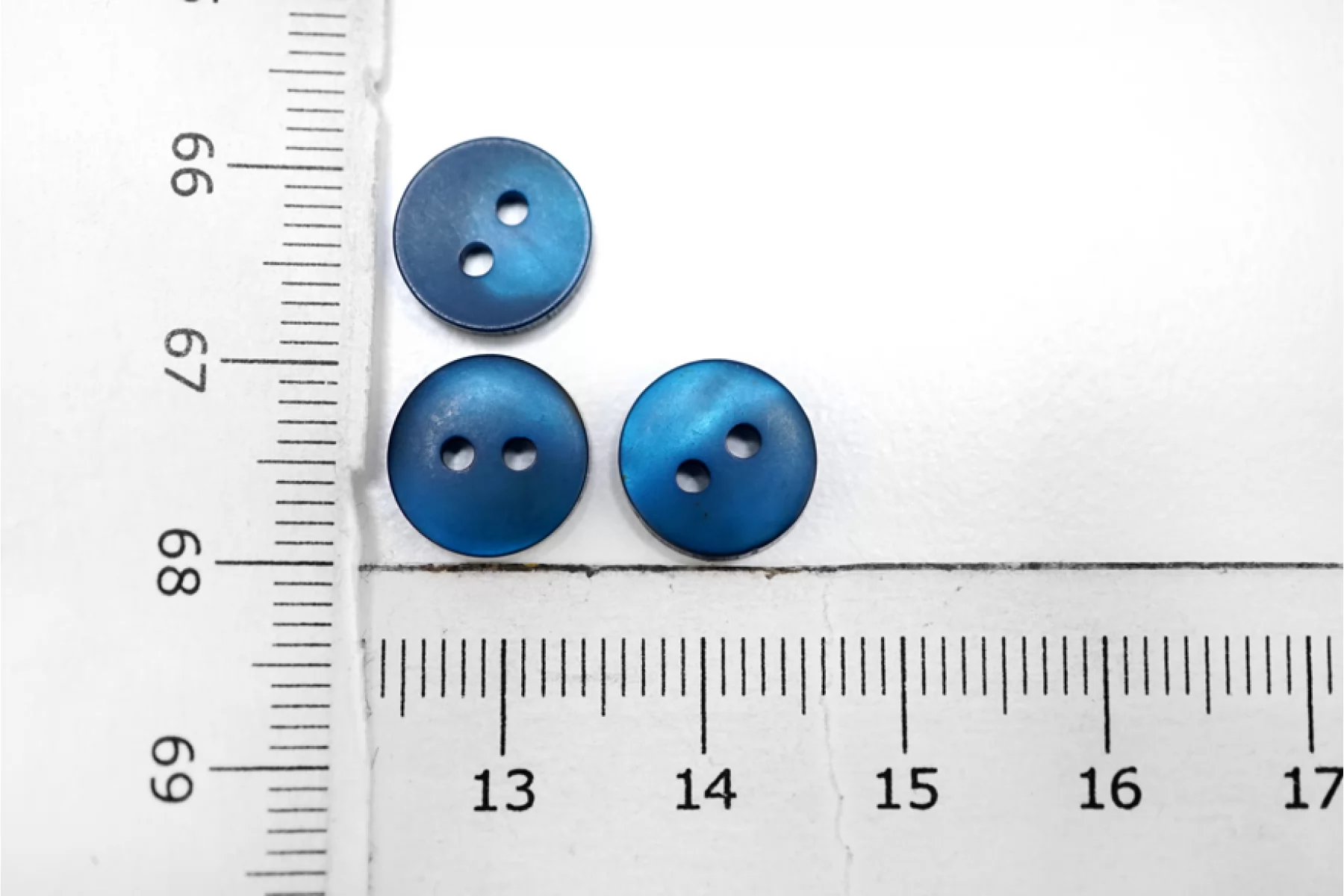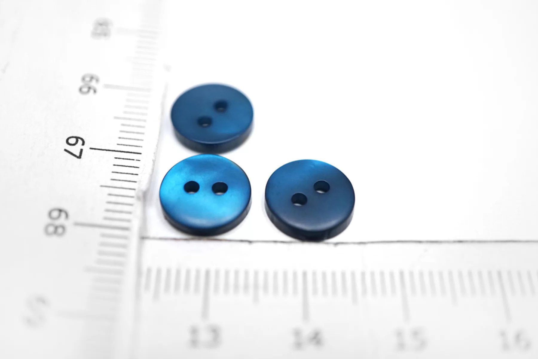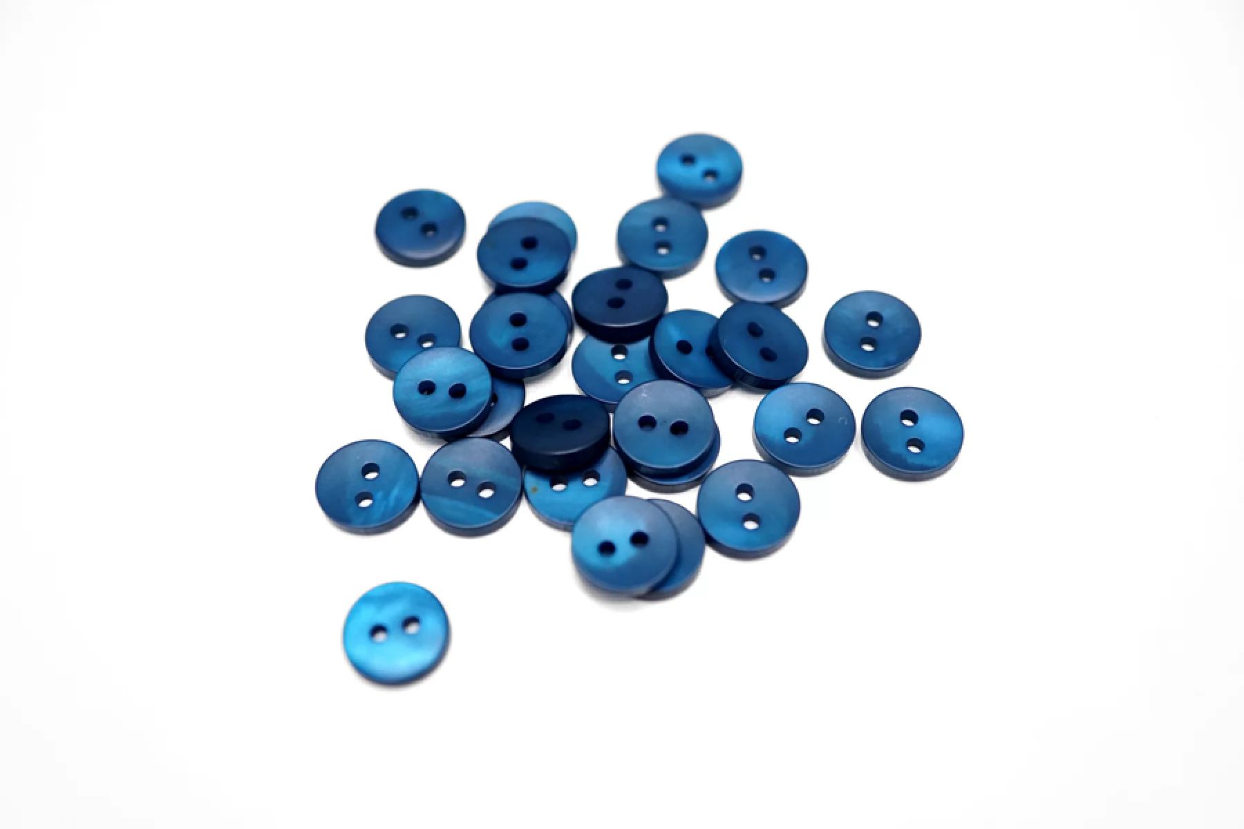 Пуговица рубашечная , перламутровая, матовая, пластиковая, размер 10 мм, синего цвета.