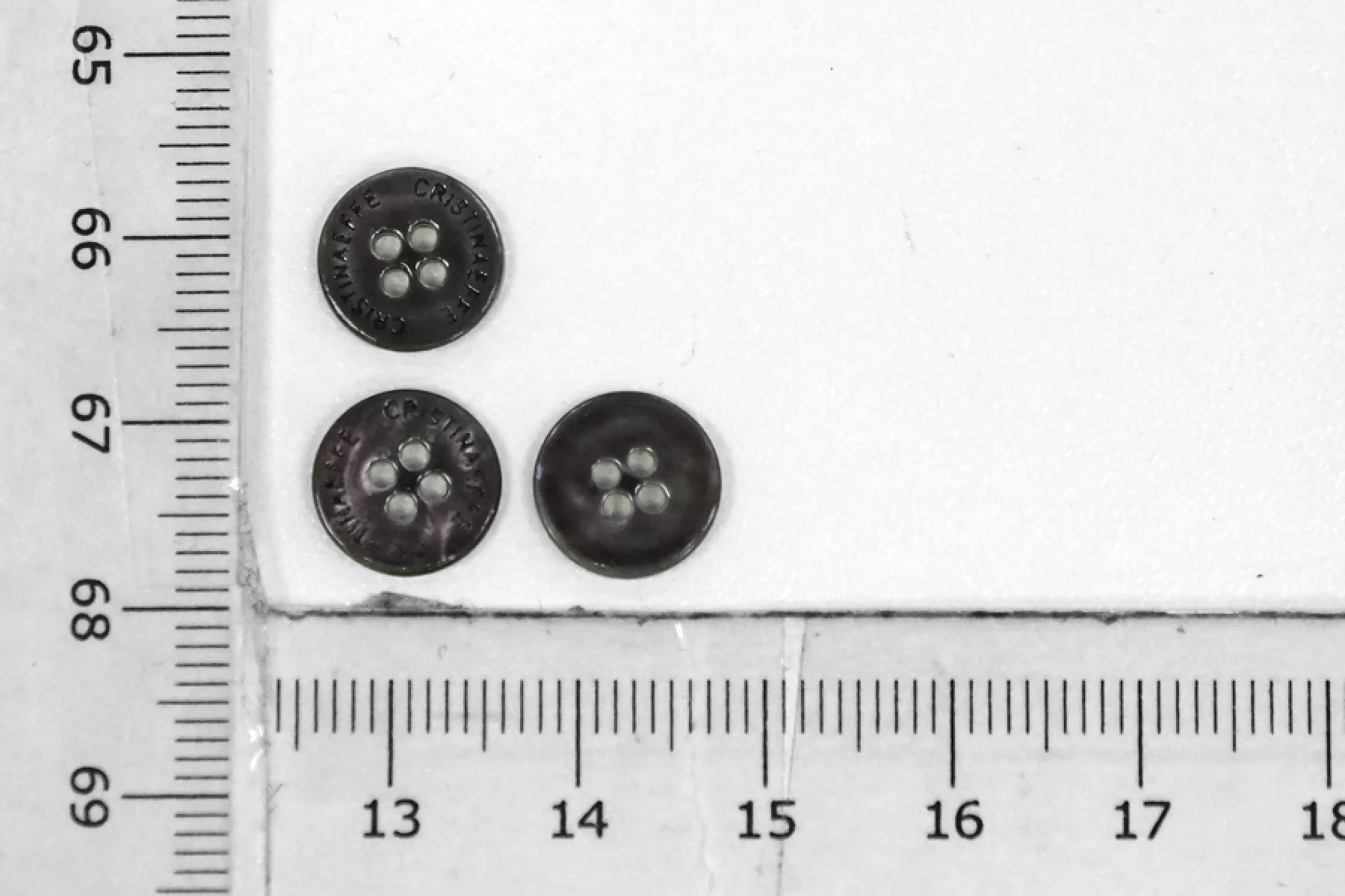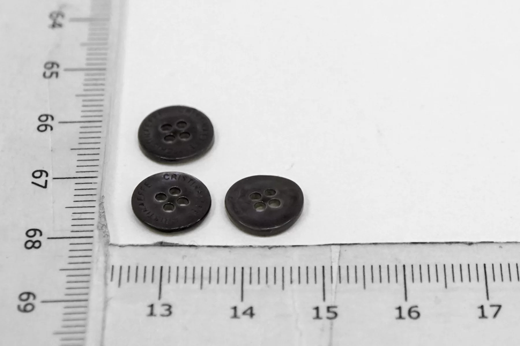 Пуговица коричневая из перламутра, размер 10 мм. Пуговицы из натурального перламутра, хрупкие, скалываются при падении с высоты или при сильном сжатии.