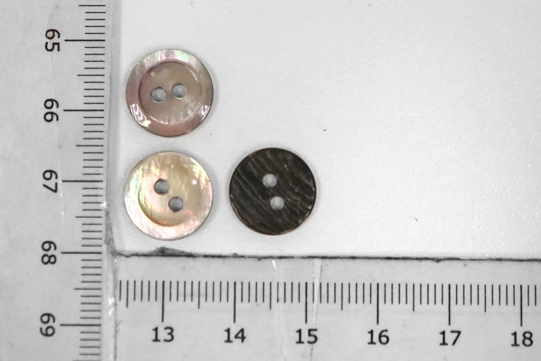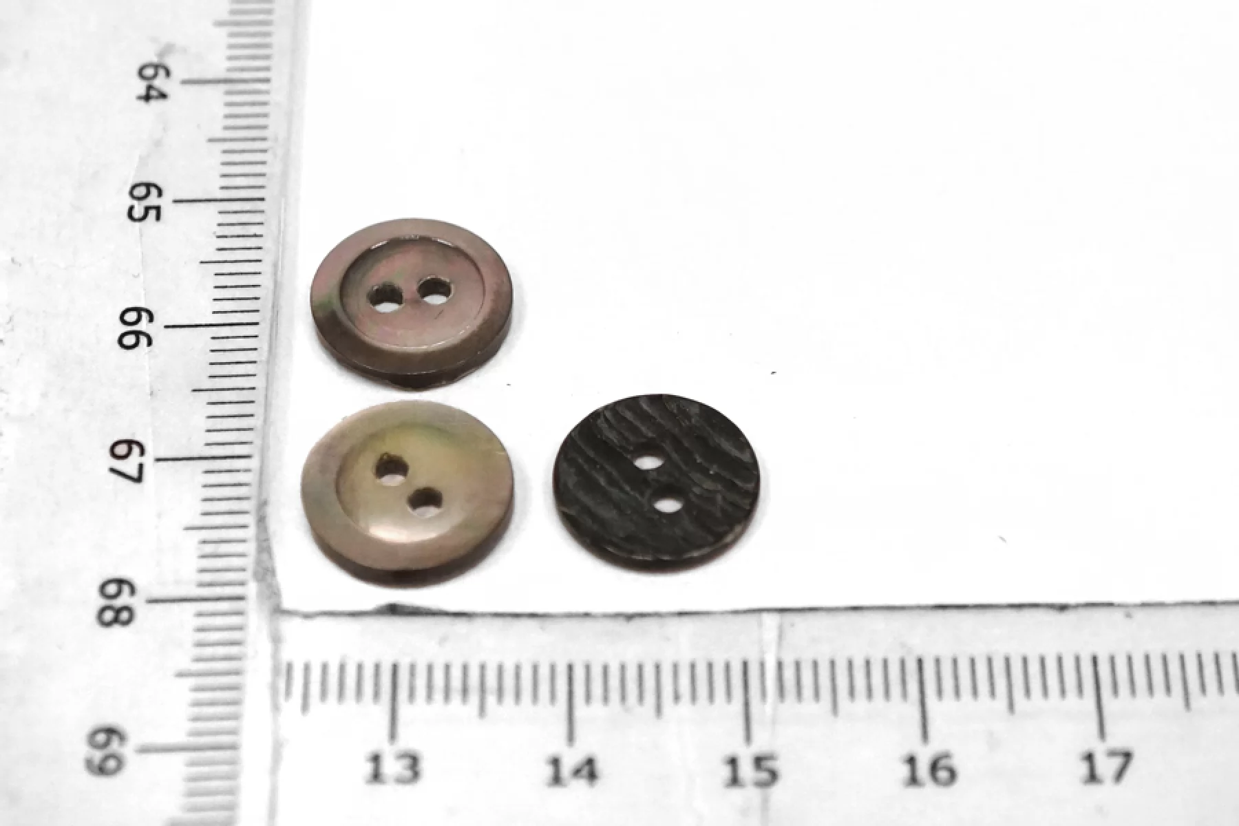 Пуговица коричневая из перламутра, размер 12 мм. Пуговицы из натурального перламутра, хрупкие, скалываются при падении с высоты или при сильном сжатии.