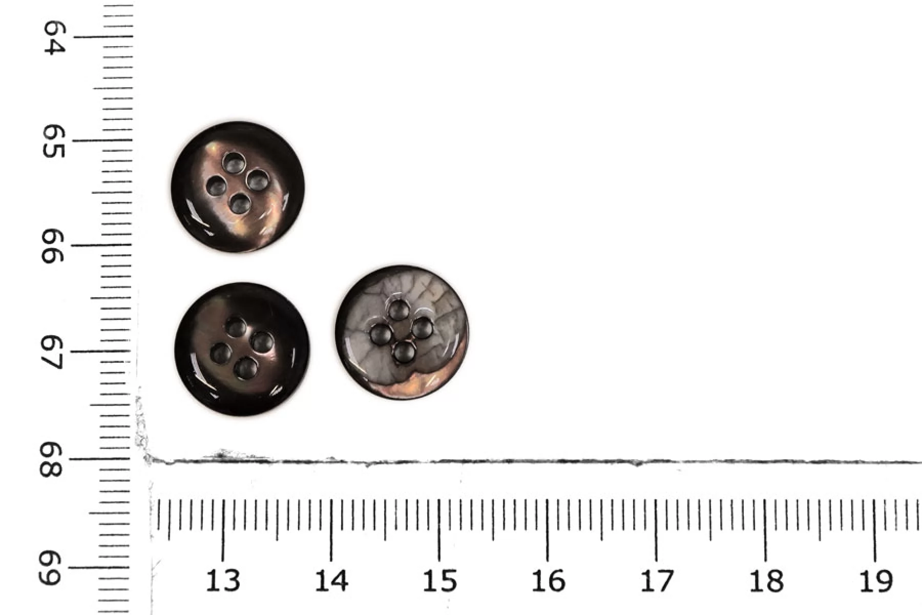 Пуговица коричневая из перламутра, размер 12 мм. Пуговицы из натурального перламутра, хрупкие, скалываются при падении с высоты или при сильном сжатии.
