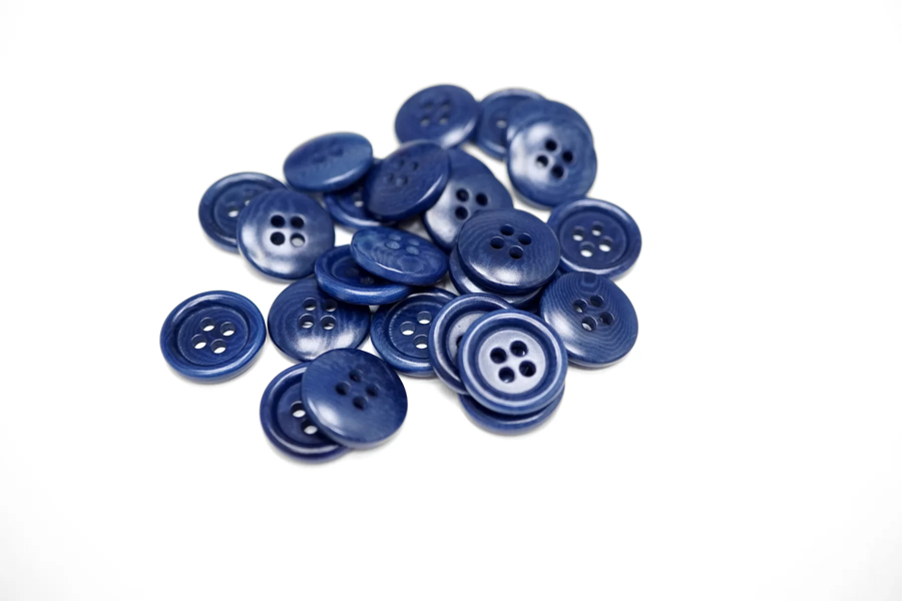Пуговица рубашечная , пластиковая , размер 15 мм, темно-синего цвета, под рог.