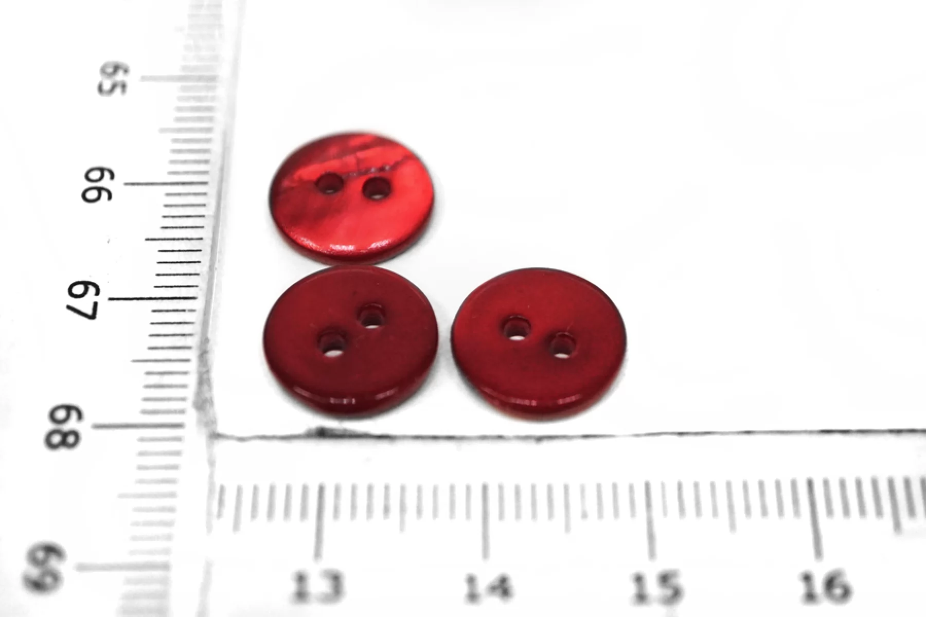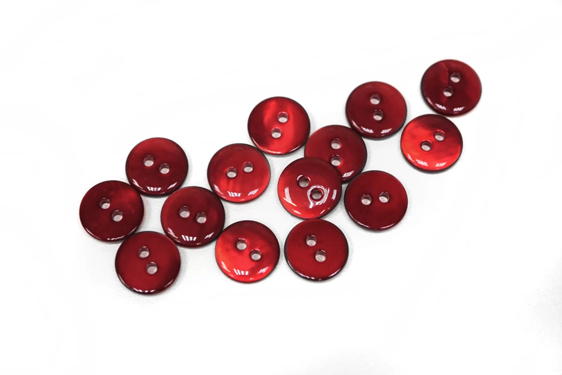 Пуговица рубашечно-плательная из перламутра, размер 11 мм бордового цвета. Пуговицы из натурального перламутра хрупкие, могут сломаться при падении с высоты или при сильном сжатии.