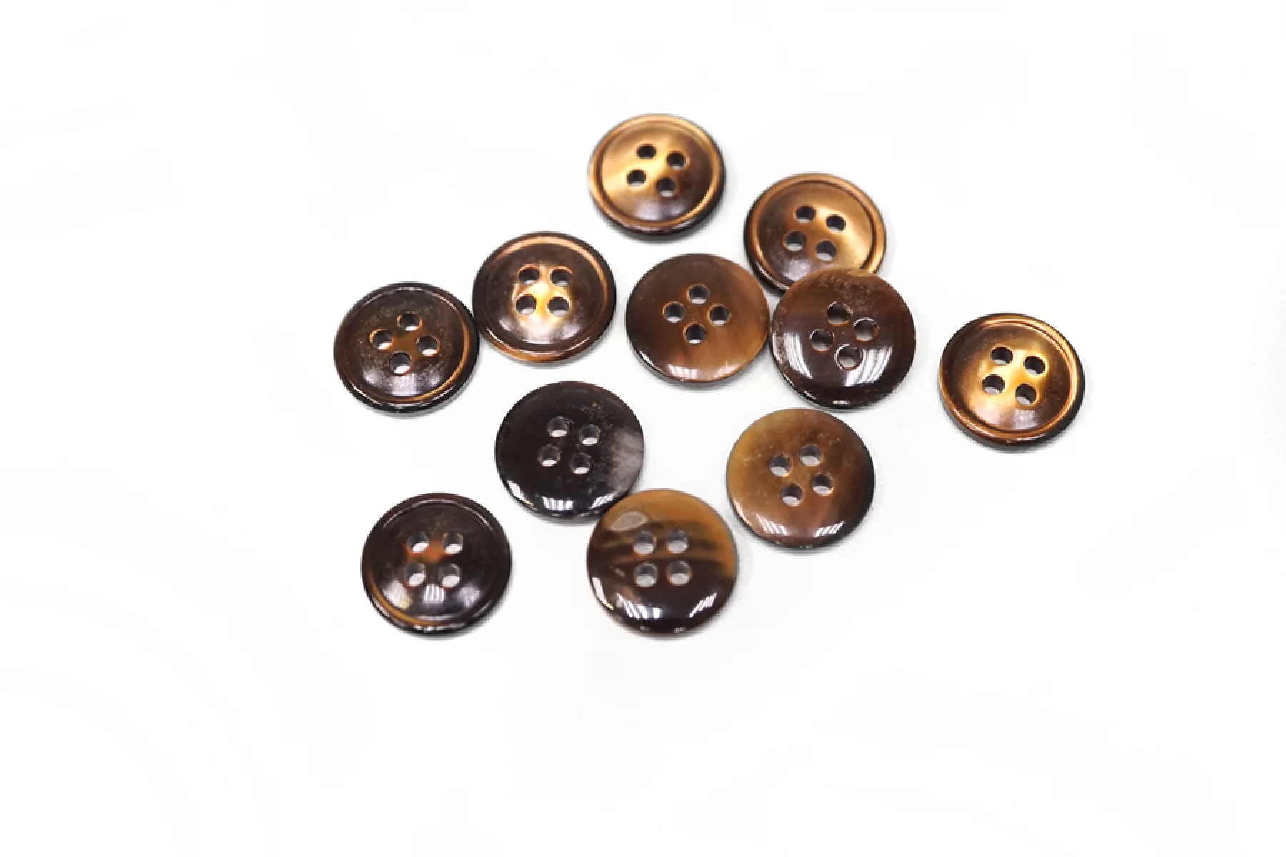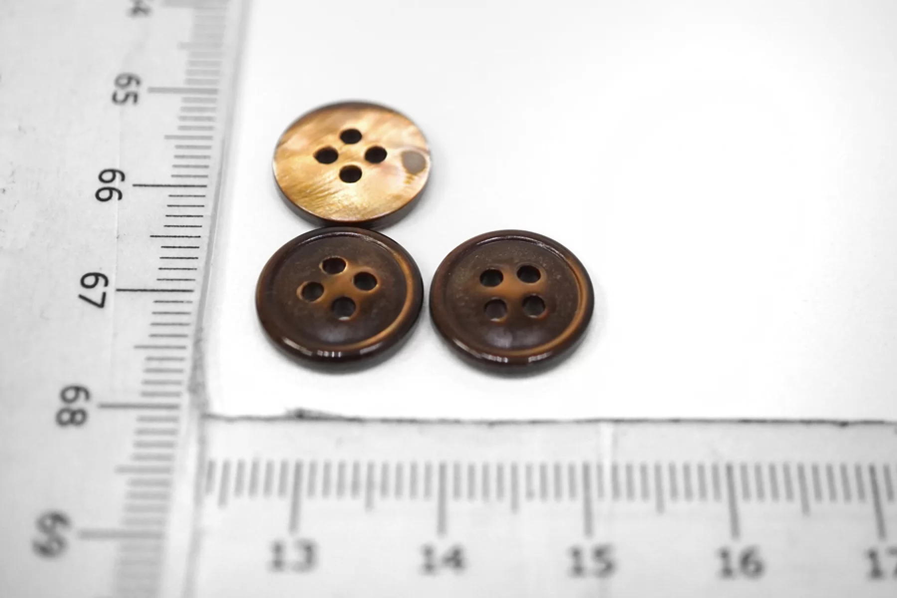 Пуговица рубашечно-плательная из перламутра, размер 13 мм бронзового цвета . Пуговицы из натурального перламутра хрупкие, могут сломаться при падении с высоты или при сильном сжатии.