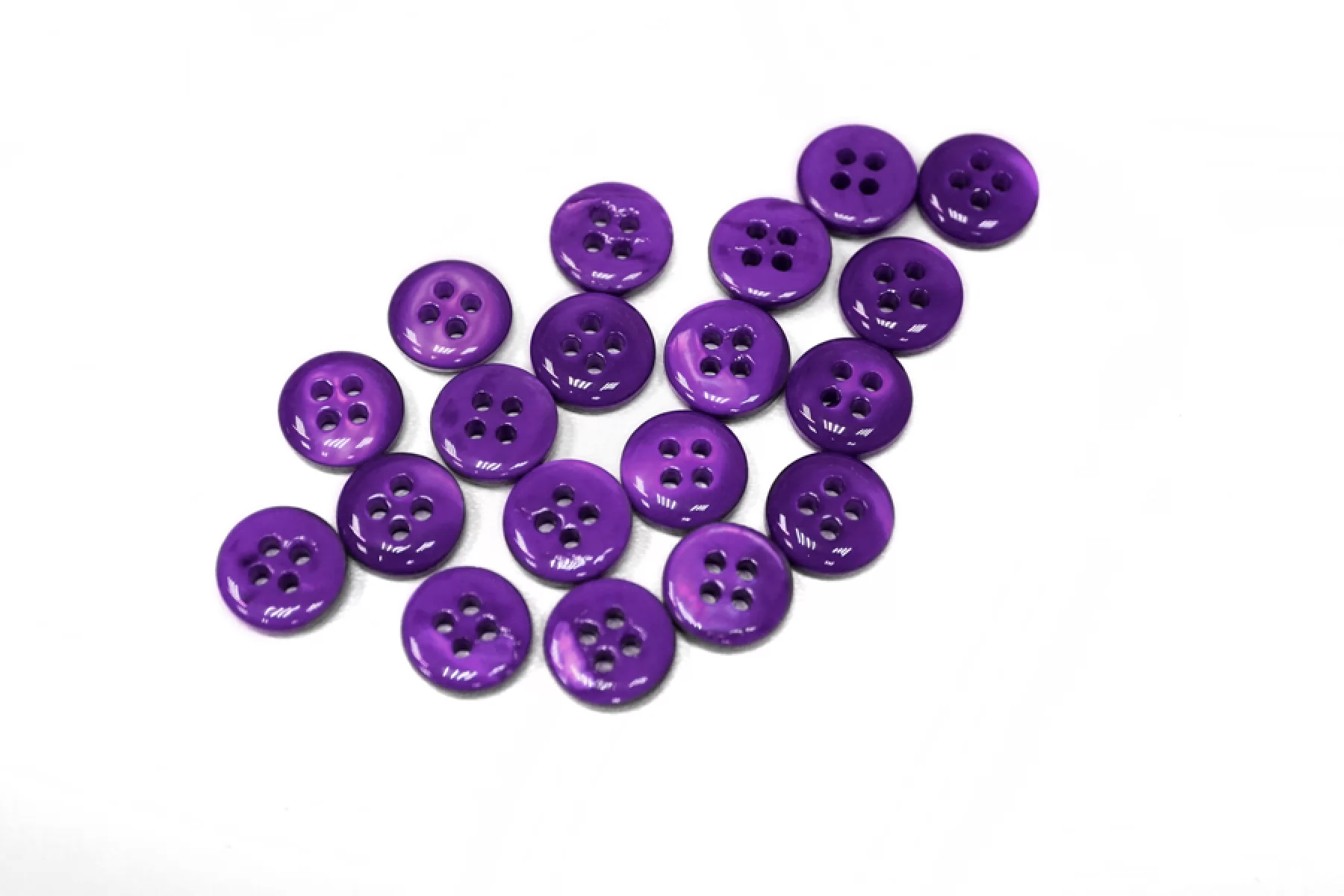 Пуговица рубашечно-плательная из перламутра, размер 11 мм фиолетового цвета . Пуговицы из натурального перламутра хрупкие, могут сломаться при падении с высоты или при сильном сжатии.