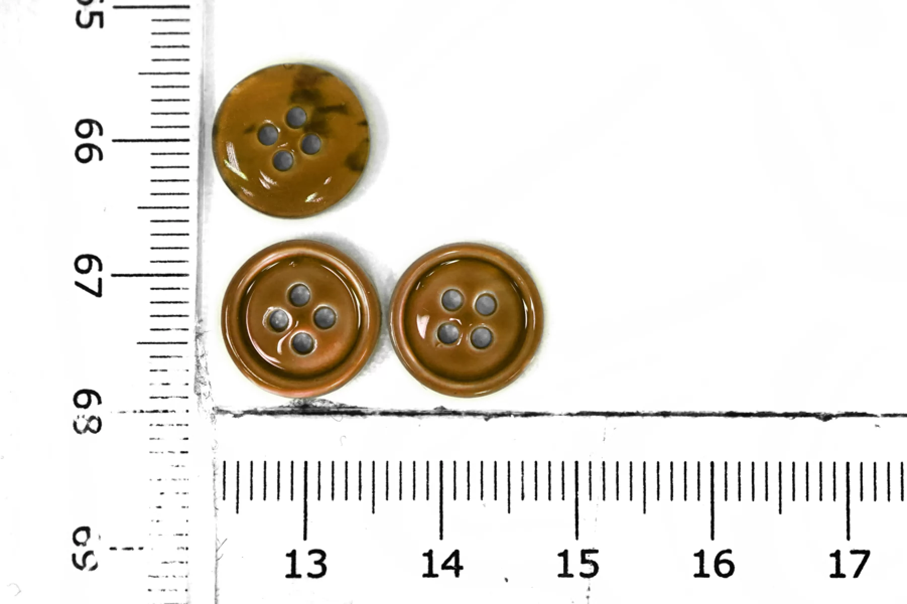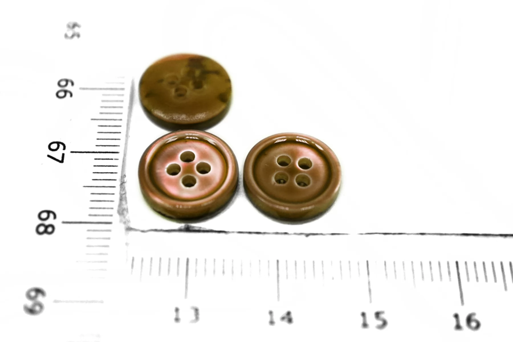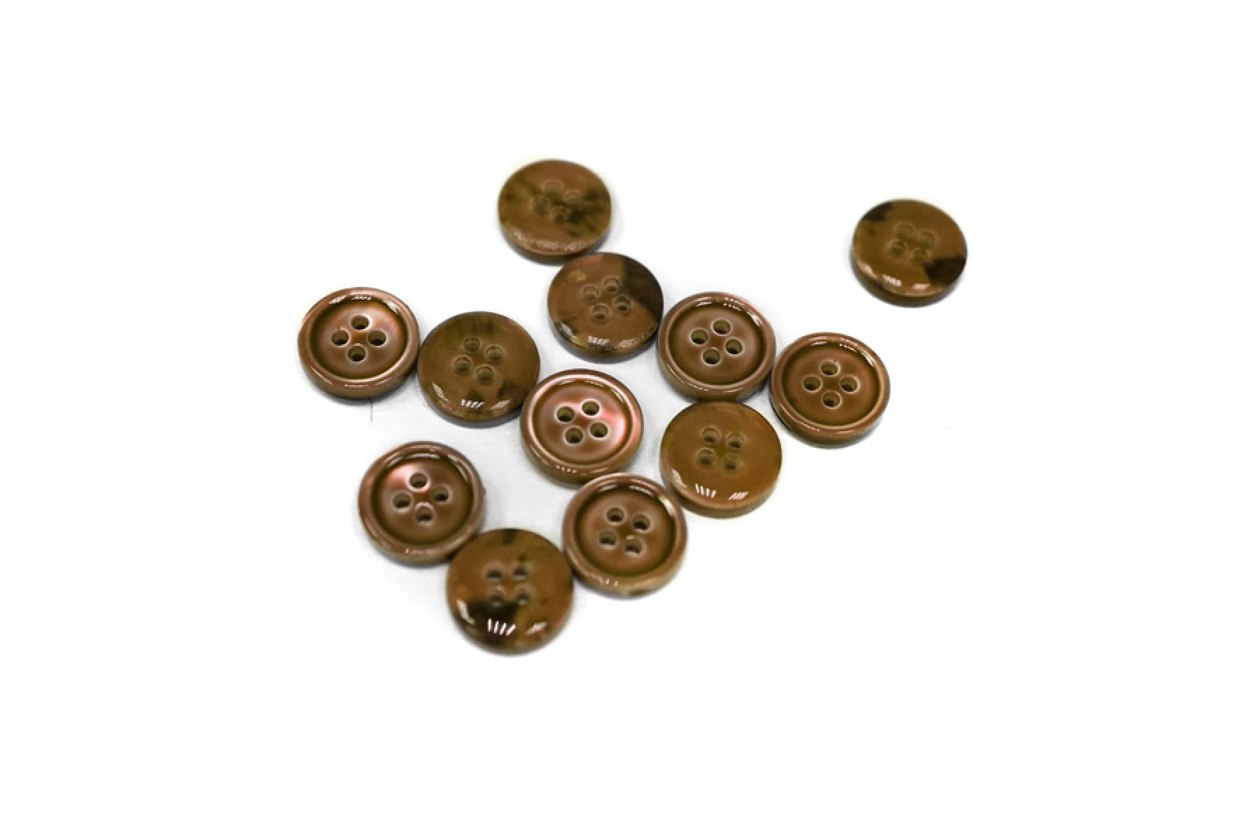 Пуговица рубашечно-плательная из натуральной ракушки, размер 11 мм, цвет коричневый. Пуговицы из натурального перламутра хрупкие, могут сломаться при падении с высоты или при сильном сжатии.