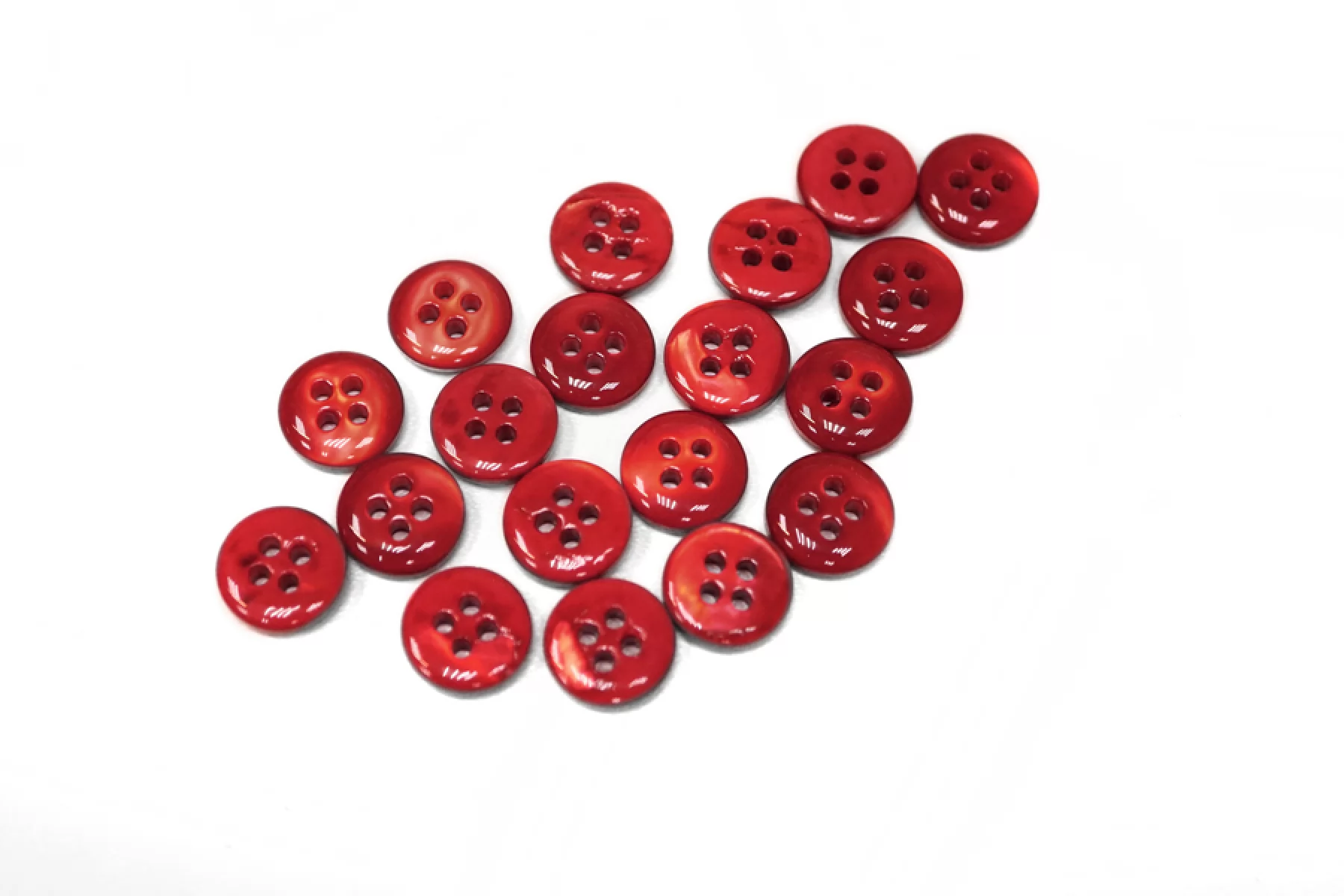 Пуговица рубашечно-плательная из перламутра, размер 11 мм красного цвета . Пуговицы из натурального перламутра хрупкие, могут сломаться при падении с высоты или при сильном сжатии.