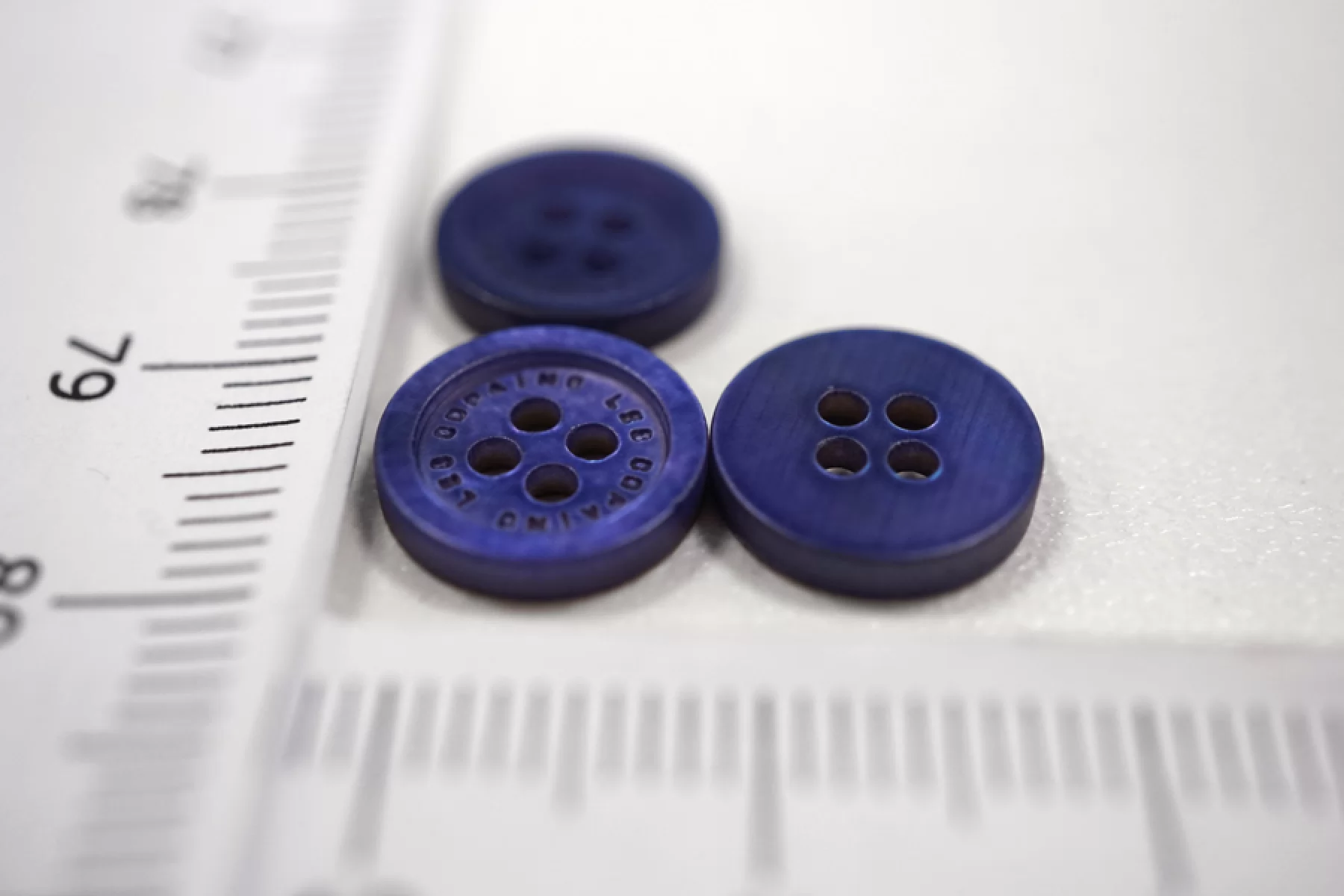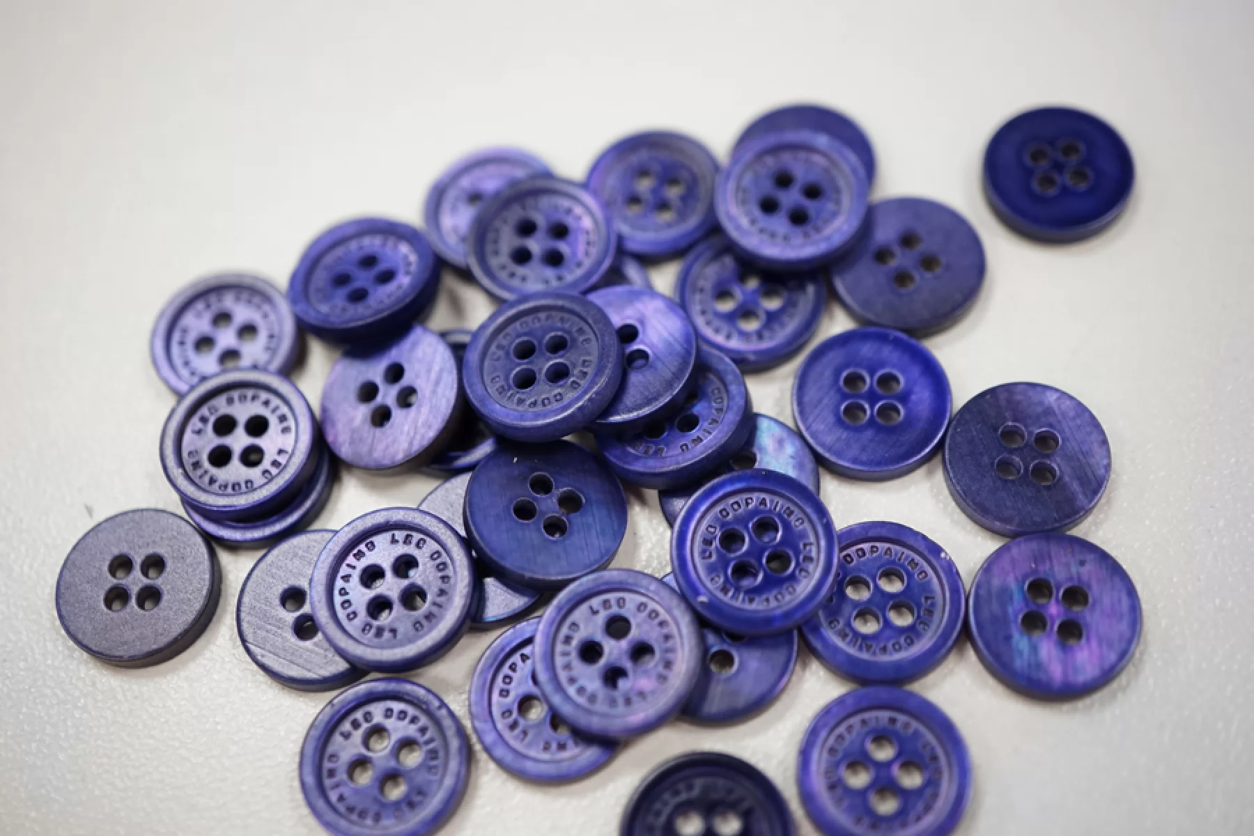 Пуговица рубашечно-плательная "Les Copains" из перламутра, размер 10 мм, фиолетового цвета с синевато-зеленоватым переливом.