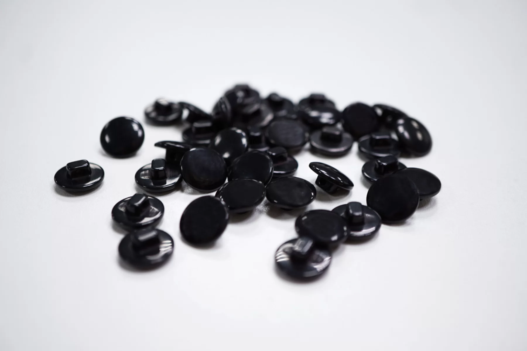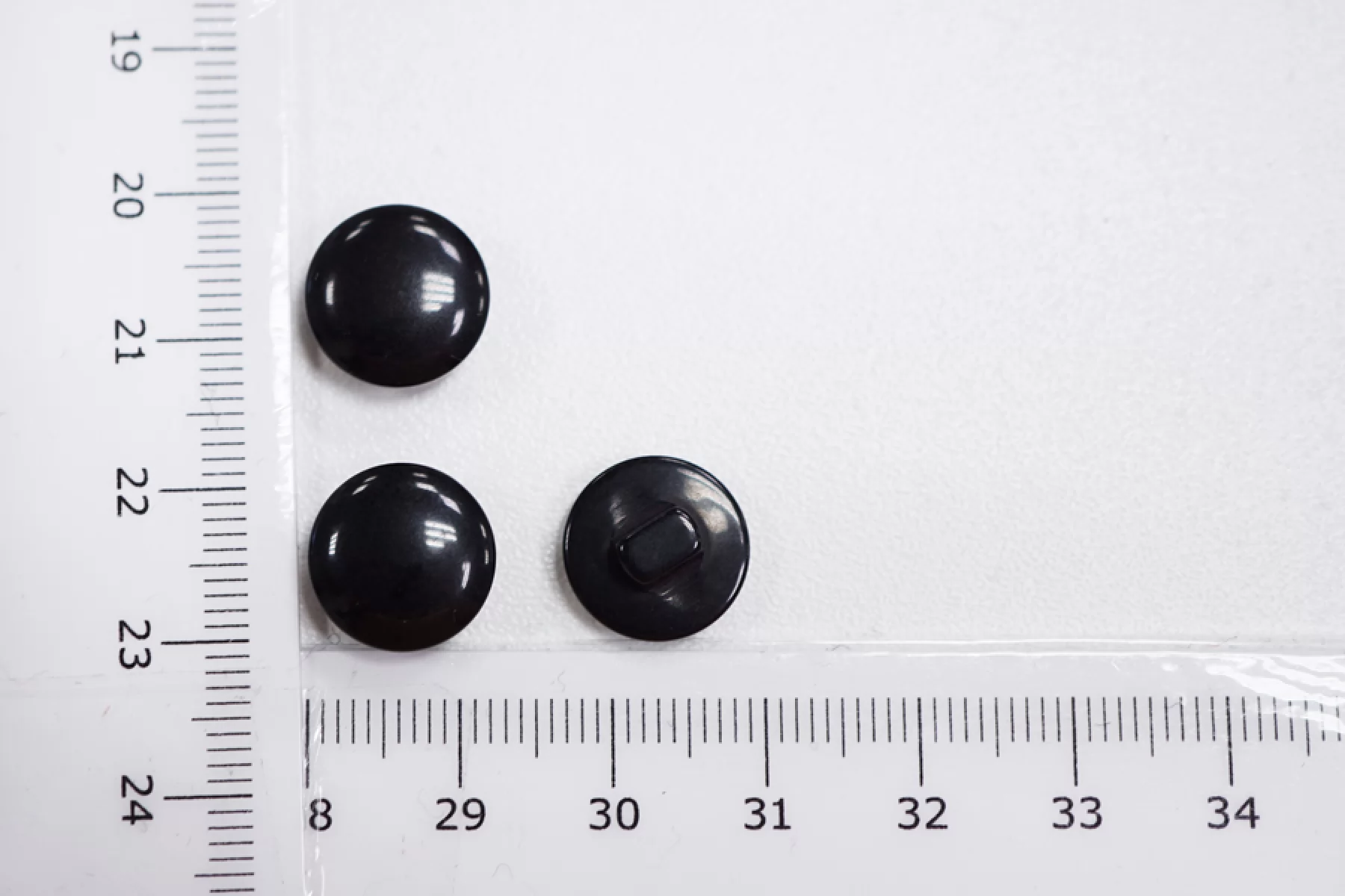 Пуговица рубашечно-плательная-плательная из пластика, черного цвета с гладкой поверхностью. Диаметр - 12 мм.