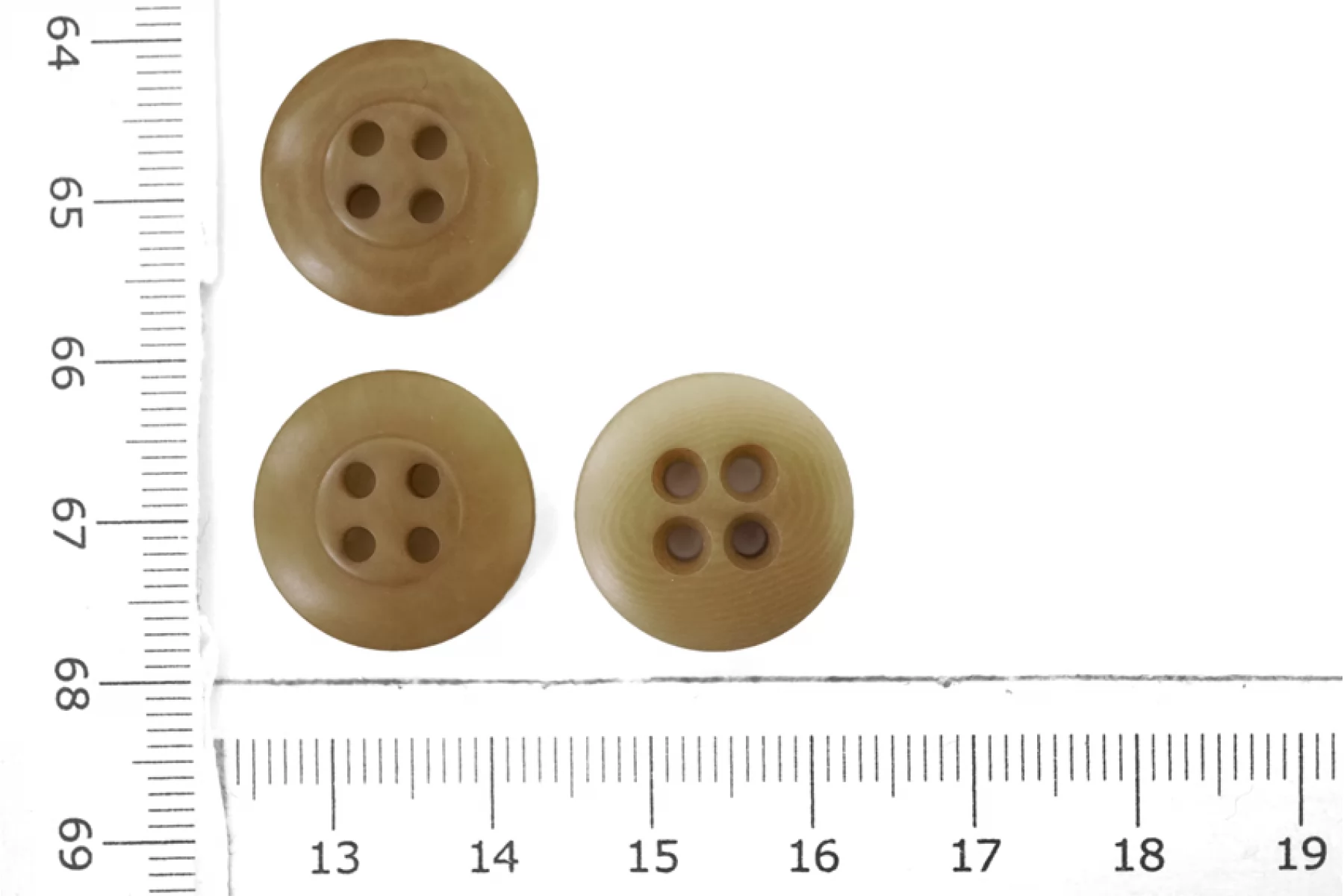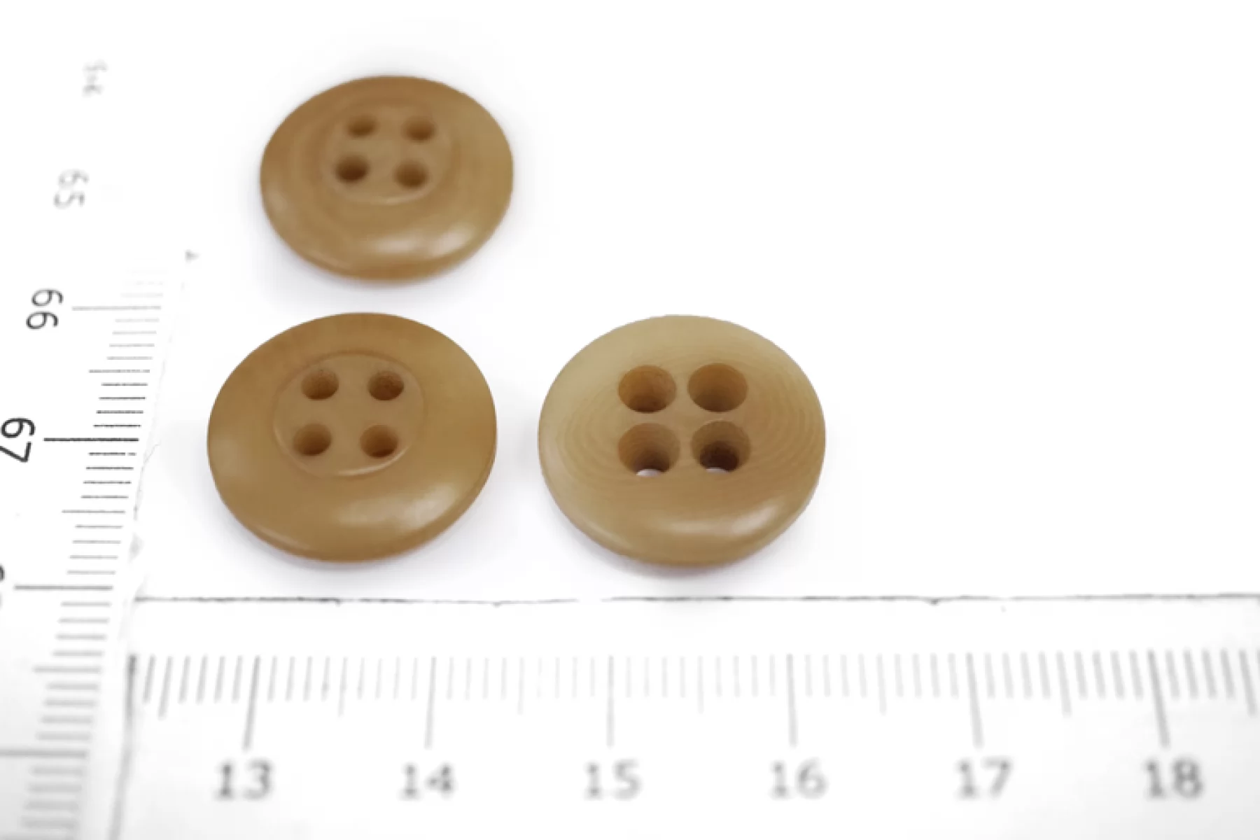 Пуговица рубашечно-плательная пластиковая, матовая, размер 18 мм, темновато песочного цвета.