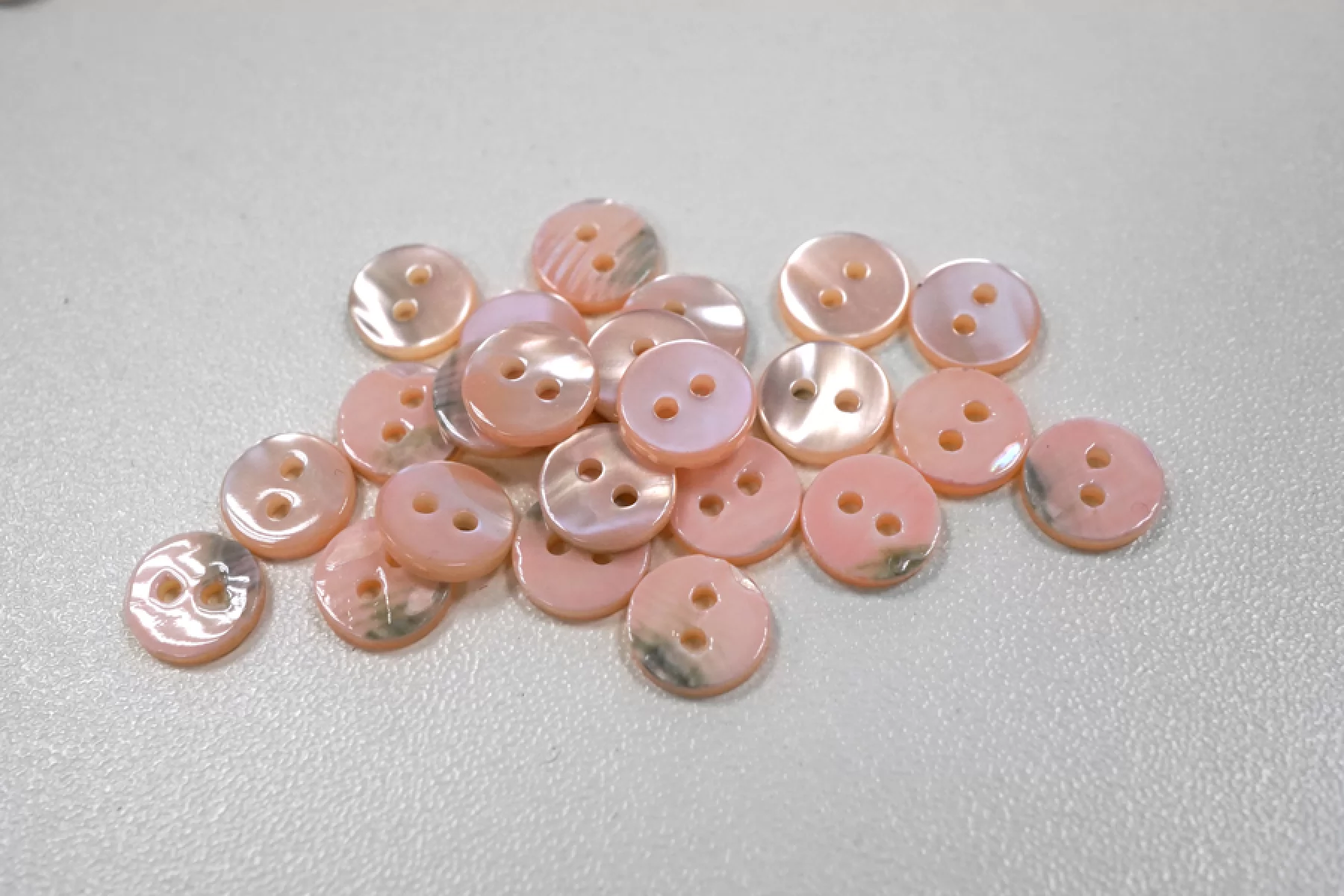 Пуговица рубашечно-плательная из натуральной ракушки, размер 9 мм, цвет бело-розово-персиковый. Пуговицы из натурального перламутра хрупкие, могут сломаться при падении с высоты или при сильном сжатии.