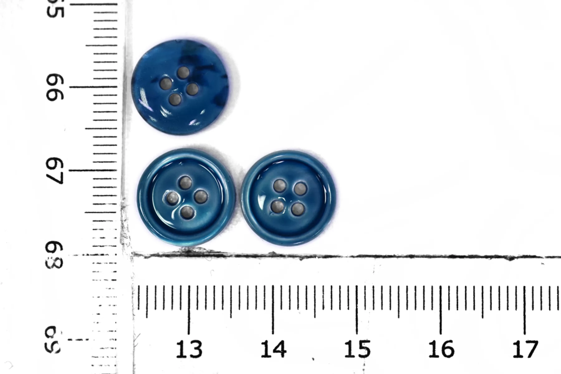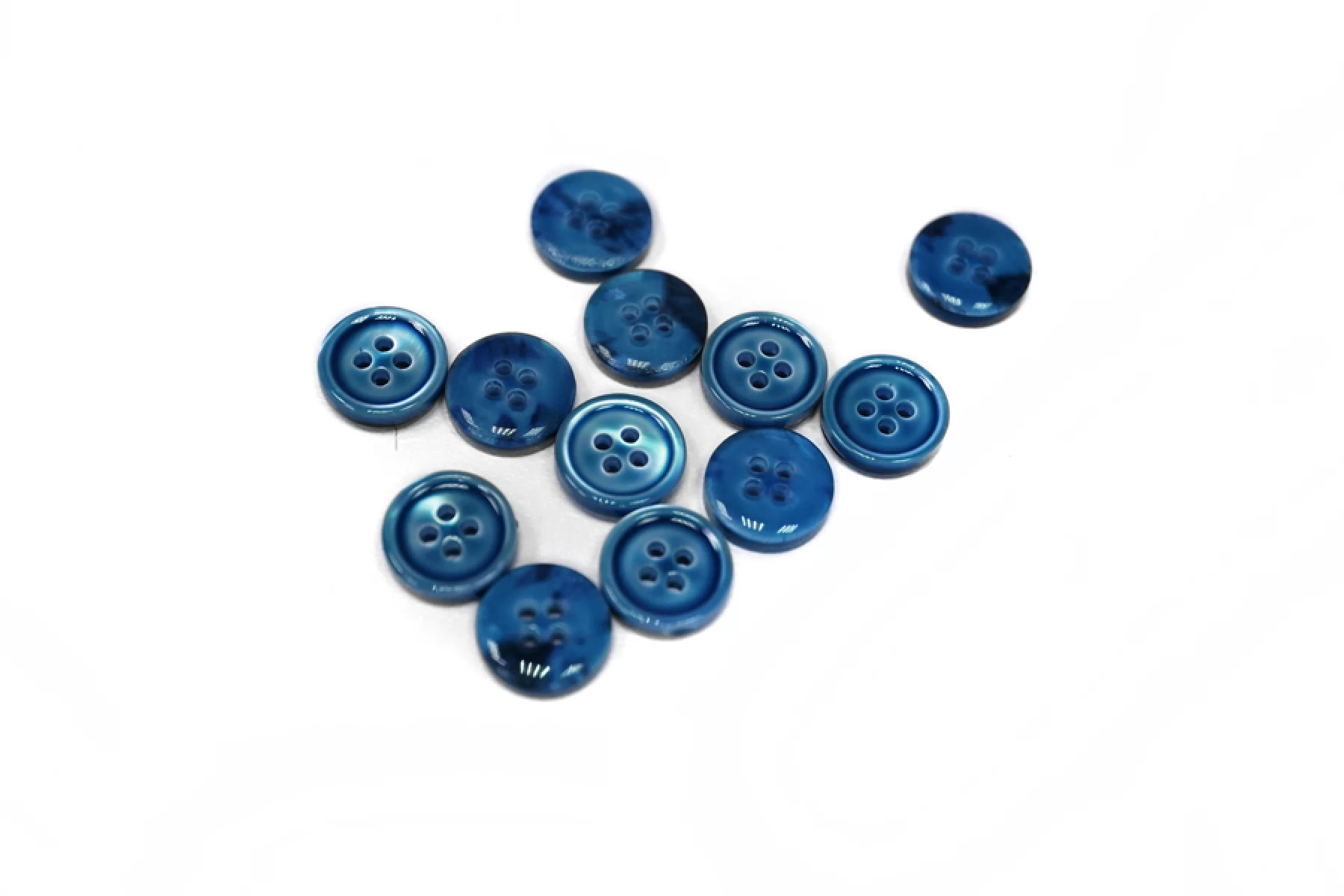 Пуговица рубашечно-плательная из перламутра, размер 11 мм синего цвета . Пуговицы из натурального перламутра хрупкие, могут сломаться при падении с высоты или при сильном сжатии.