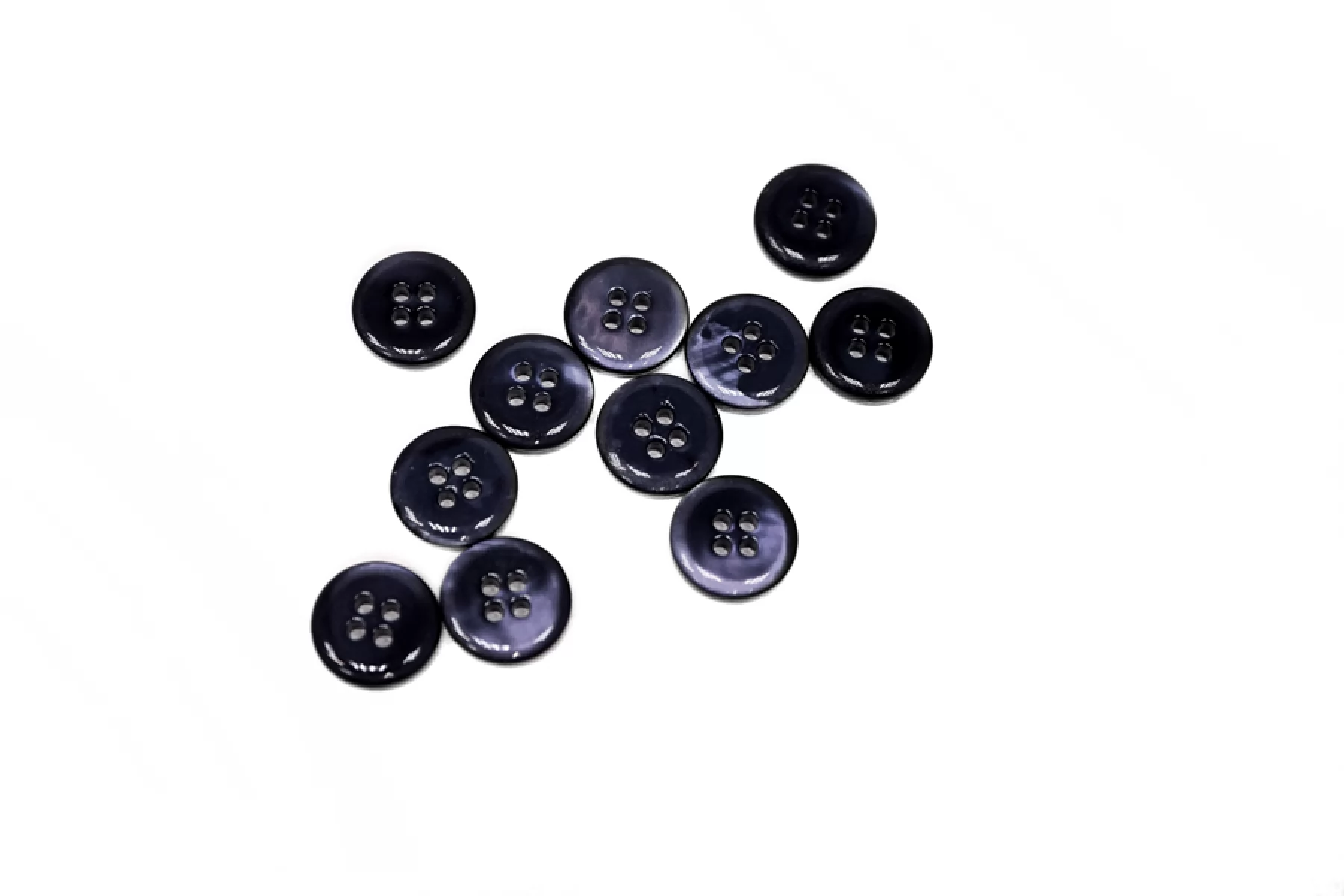 Пуговица рубашечно-плательная из перламутра, размер 13 мм темно-синего цвета . Пуговицы из натурального перламутра хрупкие, могут сломаться при падении с высоты или при сильном сжатии.