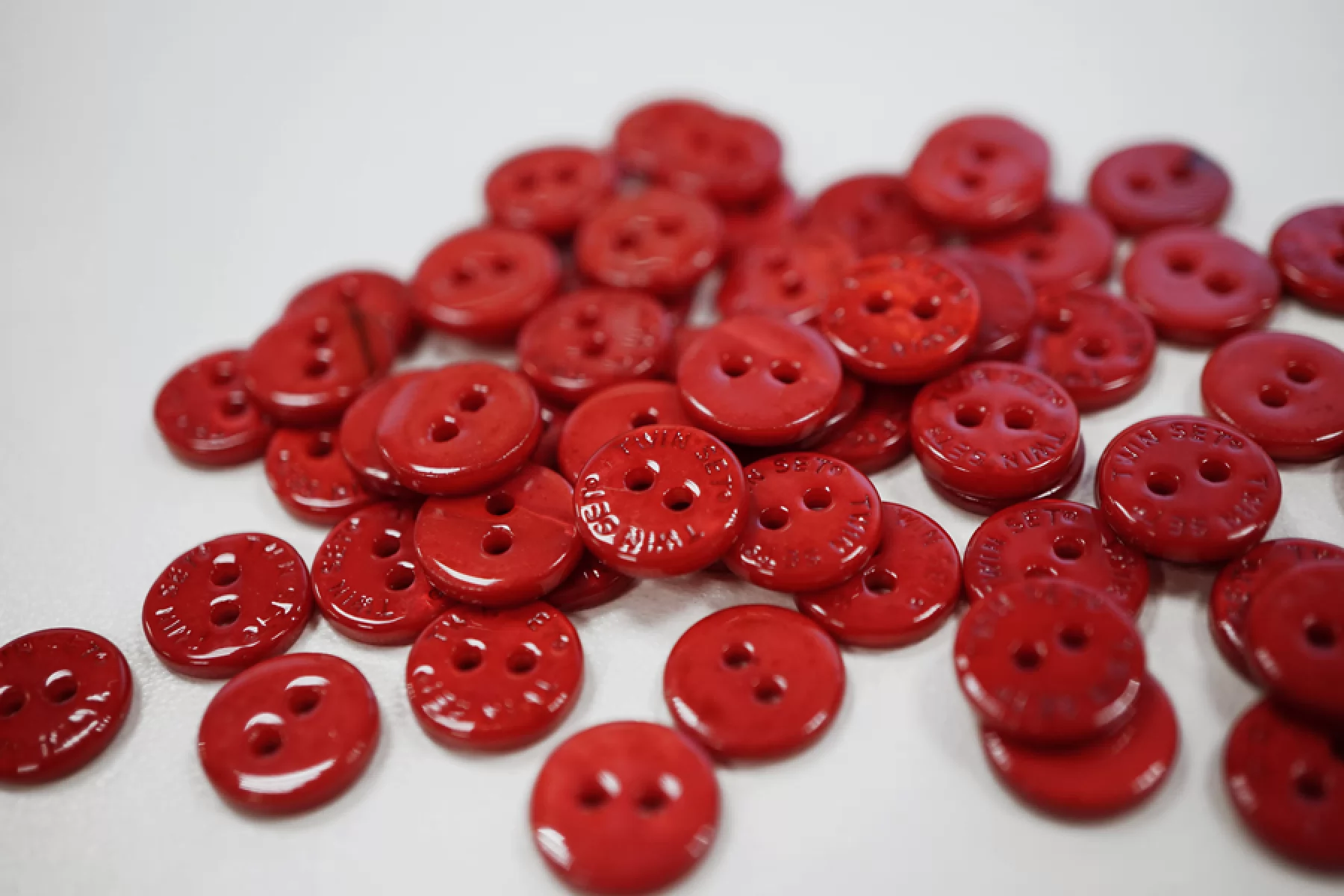 Пуговица рубашечно-плательная "Twinset" из перламутра, размер 10 мм, ягодного цвета. Пуговицы из натурального перламутра хрупкие, могут сломаться при падении с высоты или при сильном сжатии.