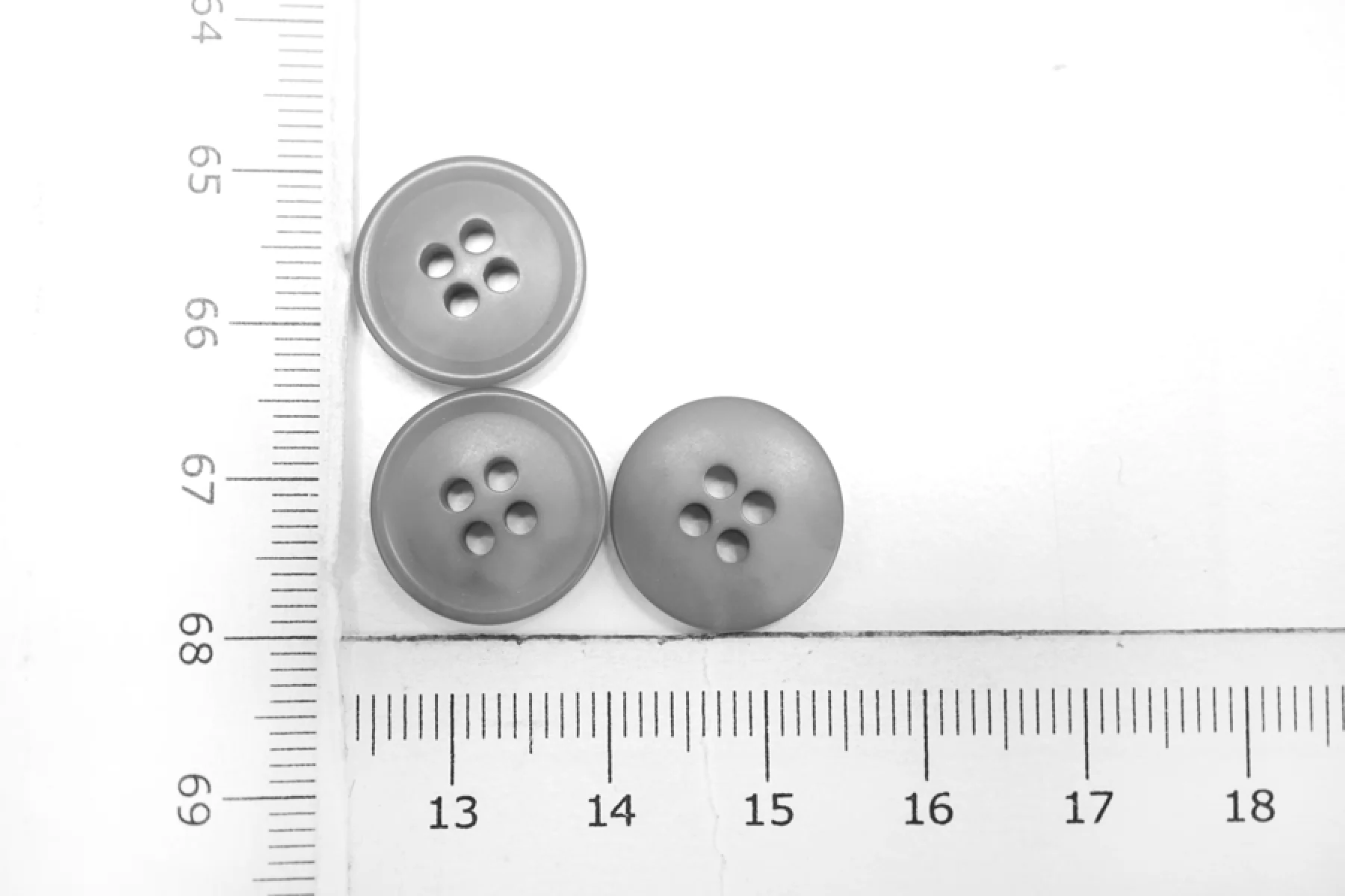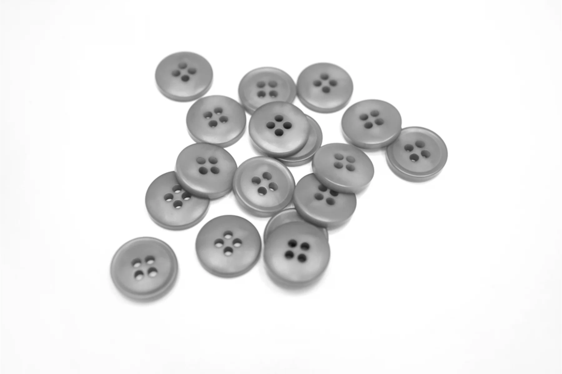 Пуговица рубашечная, матовая, пластиковая ,с перламутровым отливом, размер 15 мм, серого цвета.