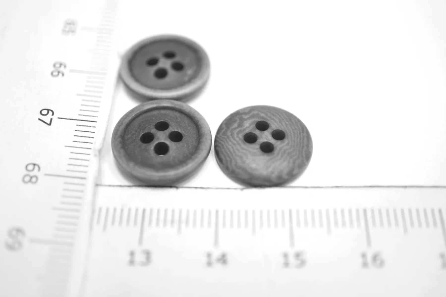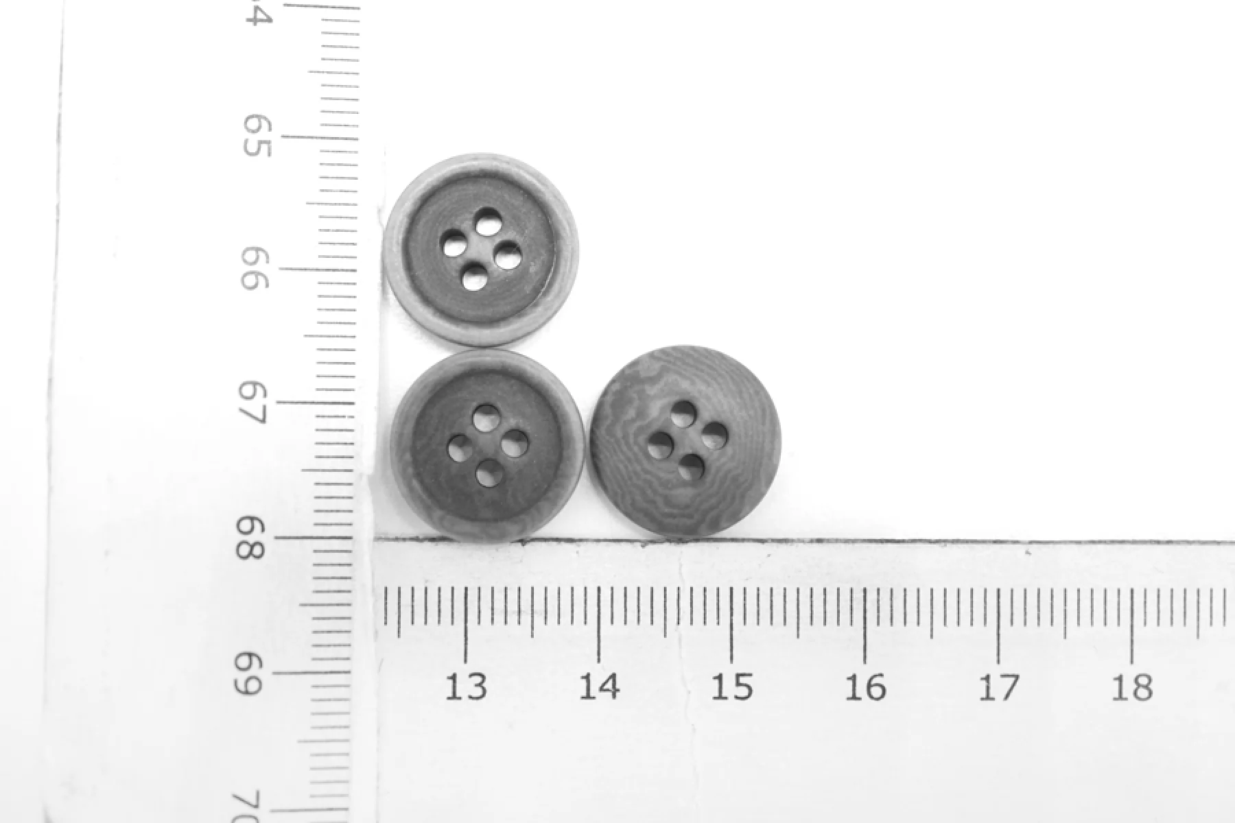 Пуговица рубашечная, матовая, пластиковая , под рог, размер 15 мм, серого цвета.