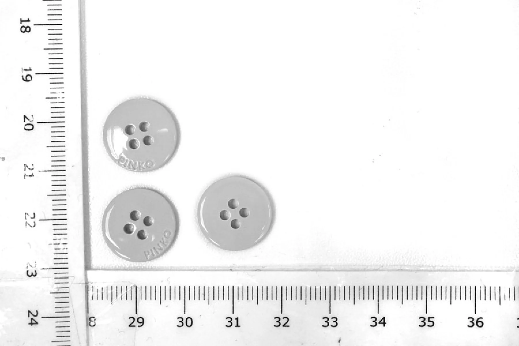 Пуговица пластиковая серого цвета от бренда PINKO. Размер 15 мм.