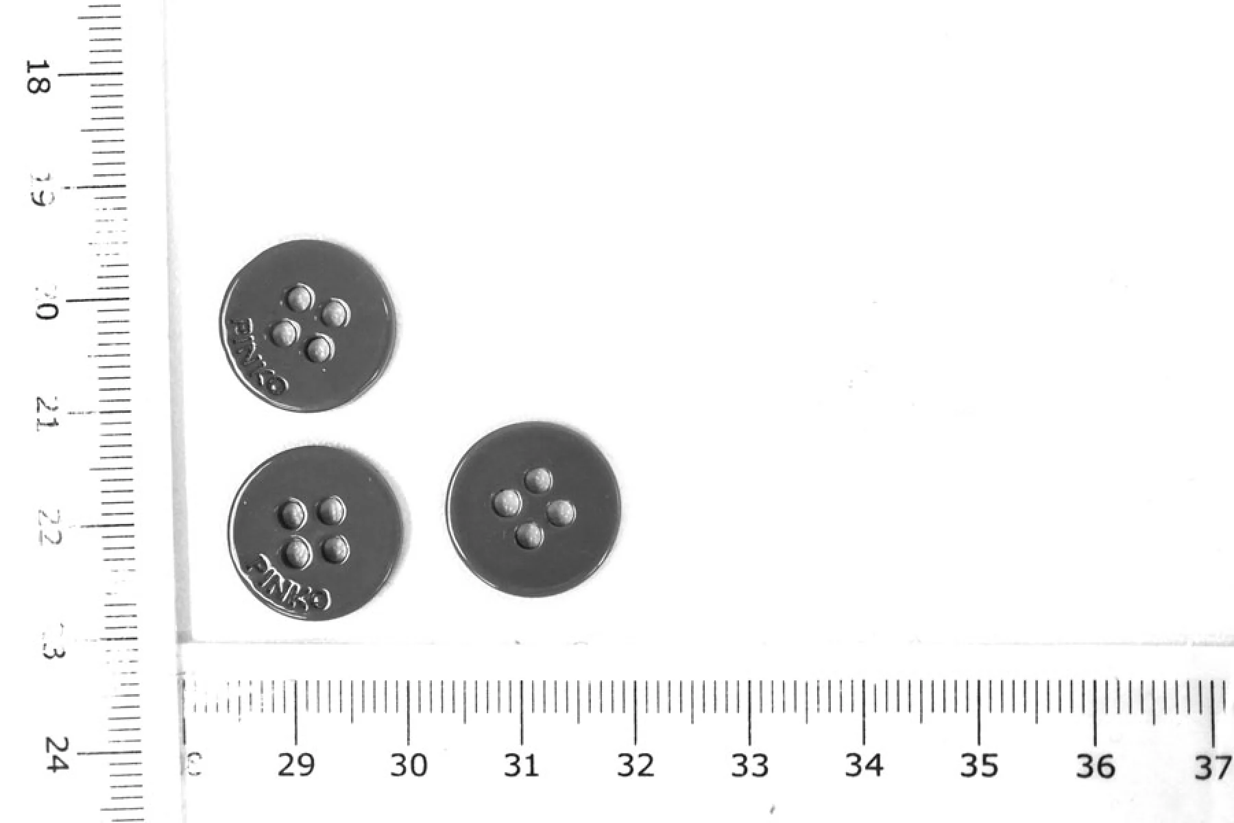 Пуговица пластиковая серогог цвета от бренда PINKO. Размер 15 мм.