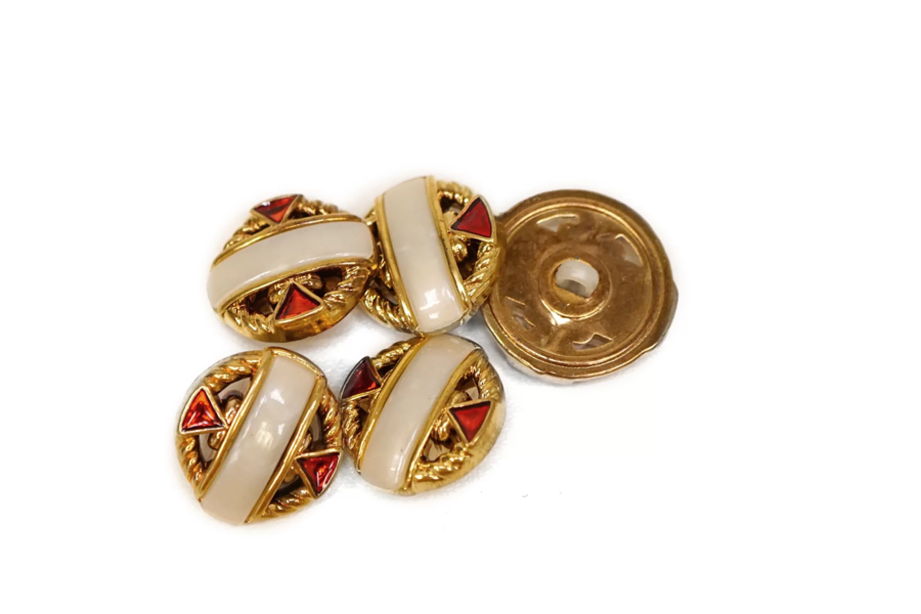 Пуговица пластик под металл золото с белой вставкой , на ножке , размер 21 мм.