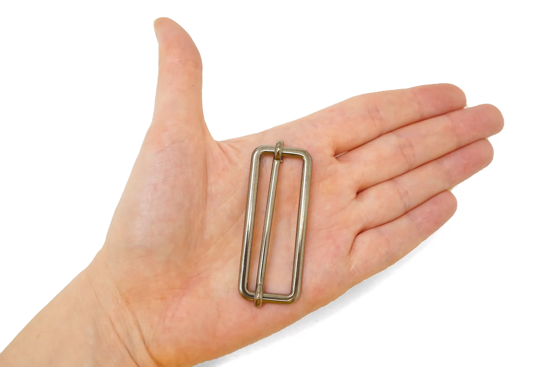 Прямоугольный металлический регулятор для ремня серебристого цвета, можно использовать в качестве пряжки. Внутренний размер 50 мм.
