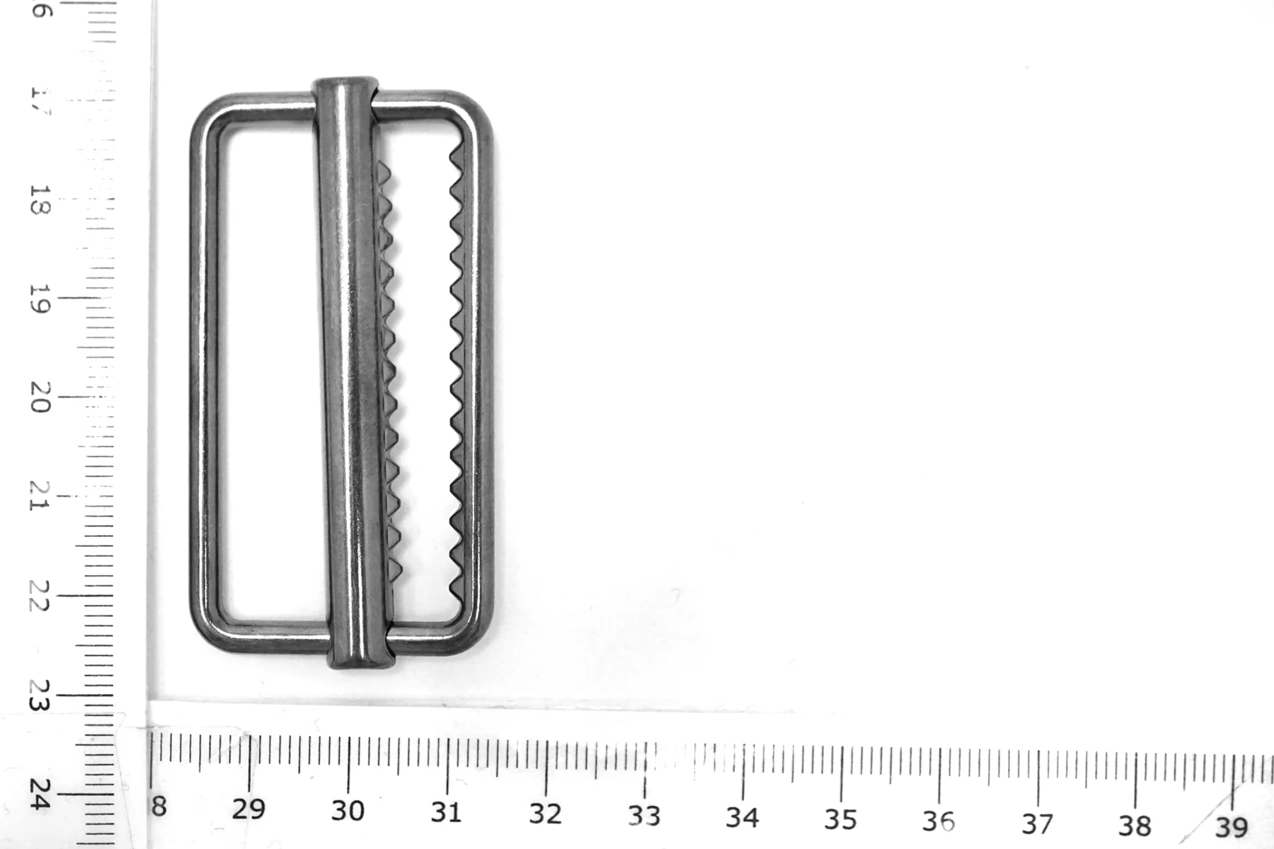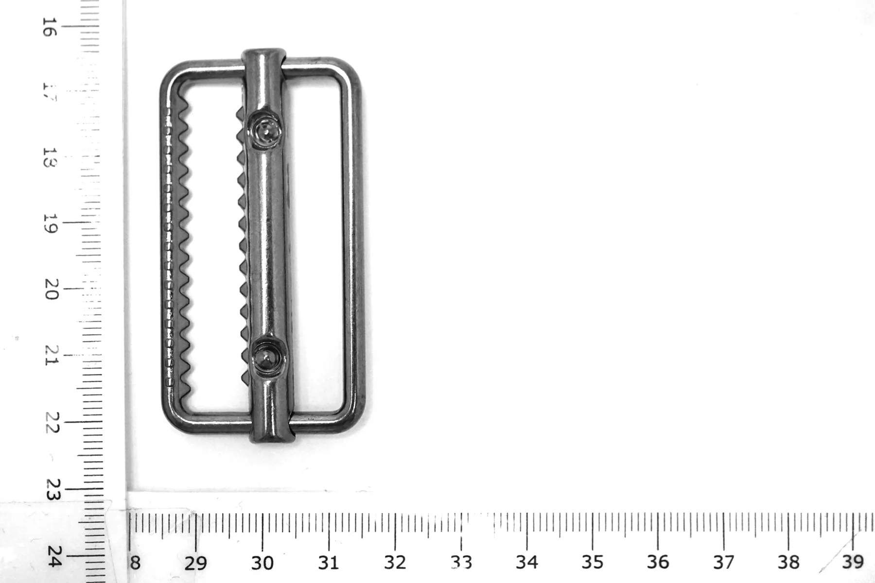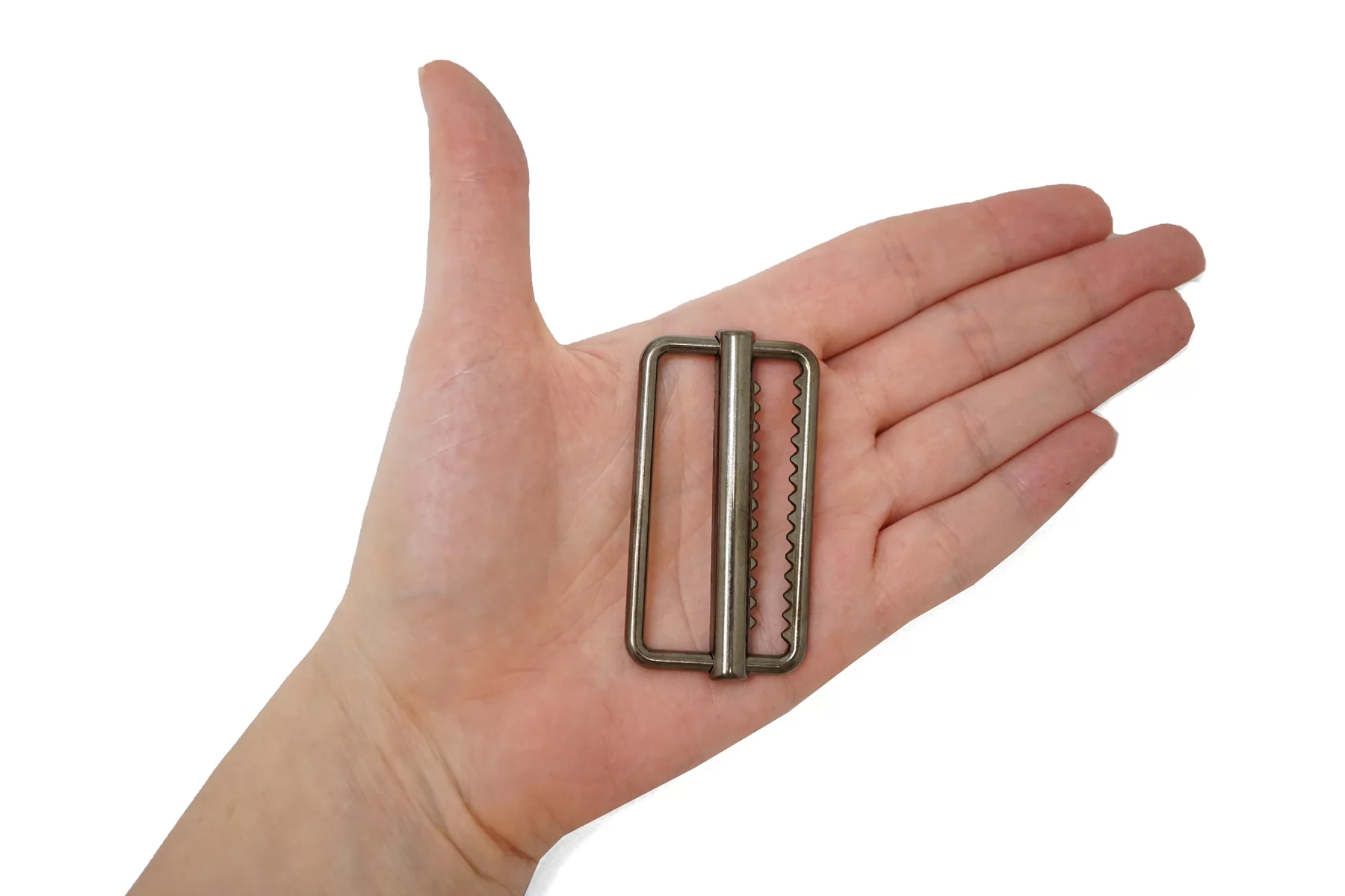 Прямоугольный металлический регулятор для ремня цвета темный никель, можно использовать в качестве пряжки. Внутренний размер 50 мм.