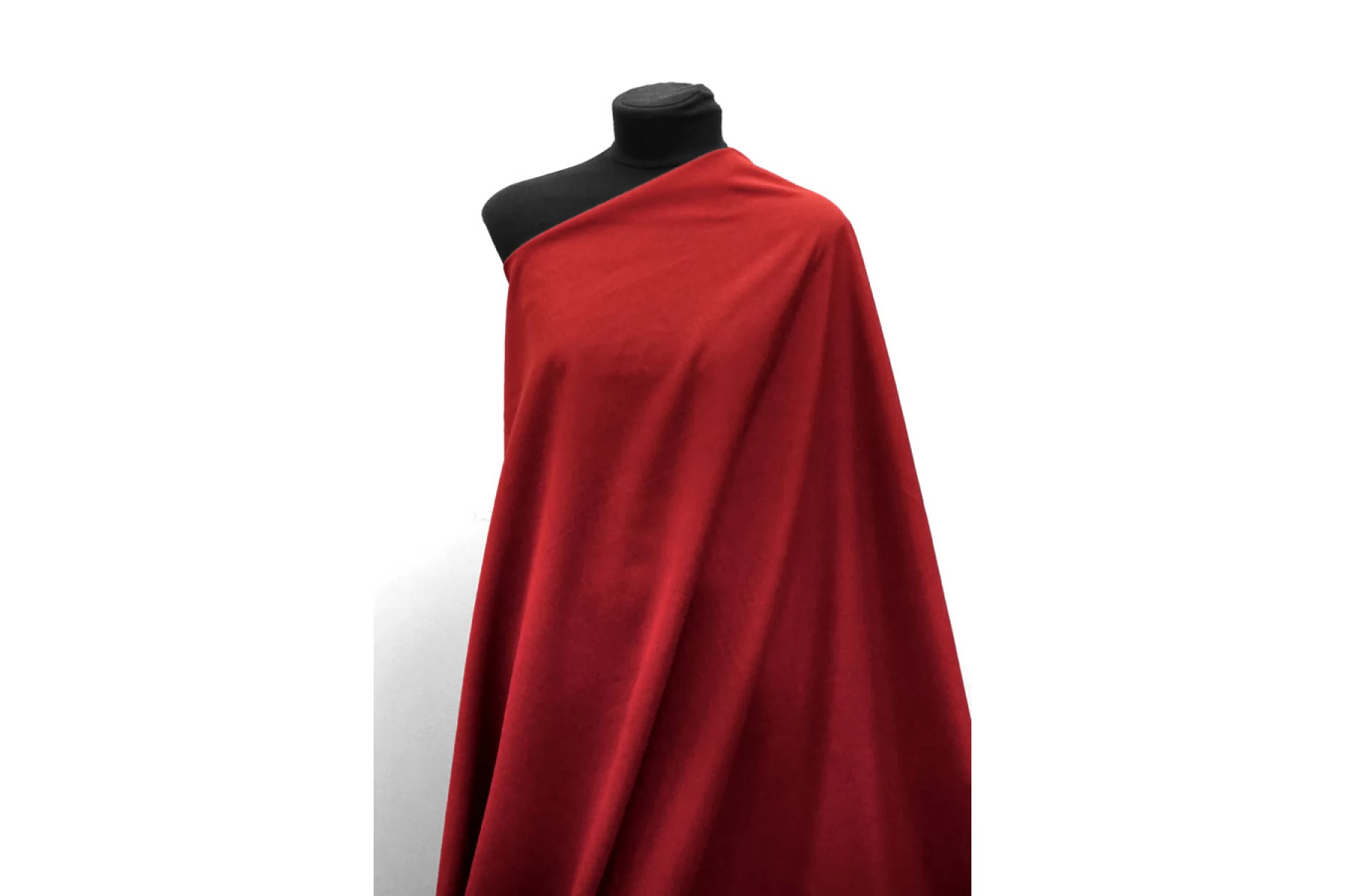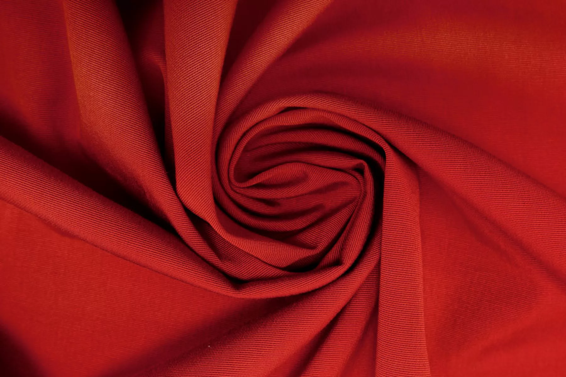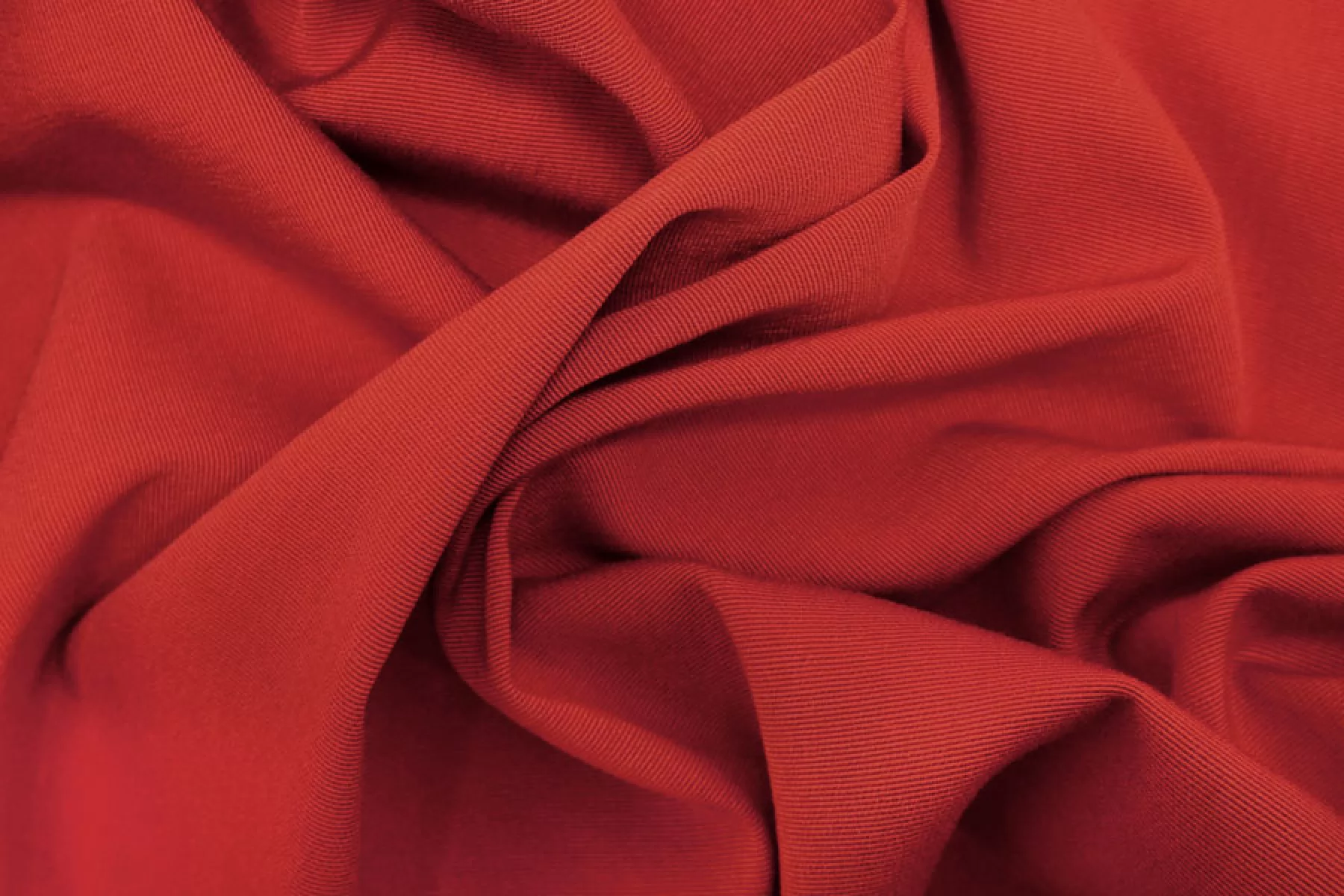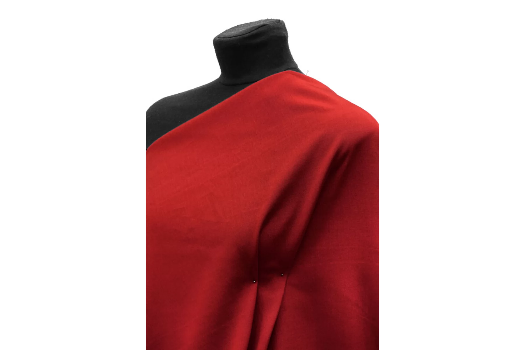 Итальянский репс костюмной плотности из хлопка и вискозы в красном цвете. Фактура ощущается без грубости, тактильно приятный. Тянется, пластичный, красив в складке. Не просвечивает. Отличный вариант на платья, юбки, костюмы, рубашки, брюки. Учитывайте возможную усадку.