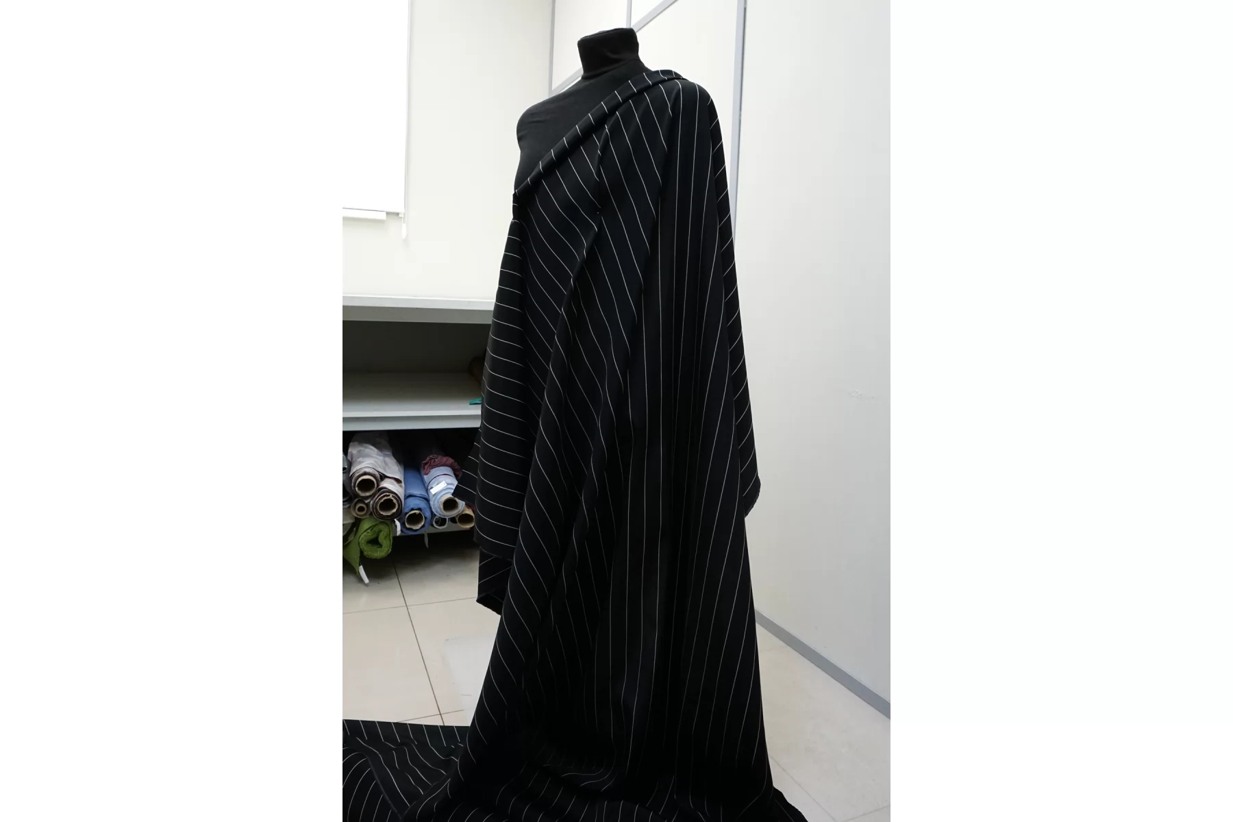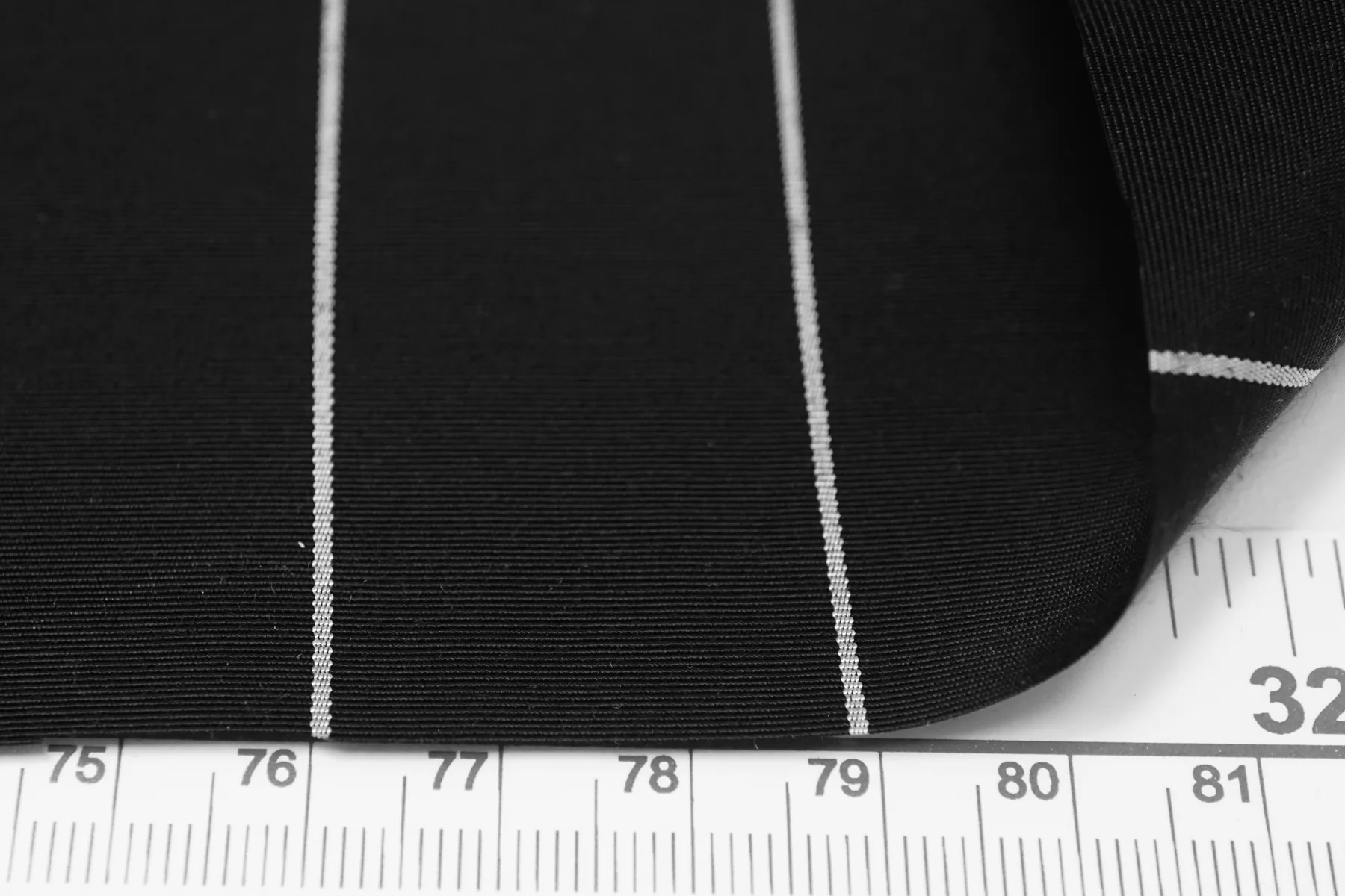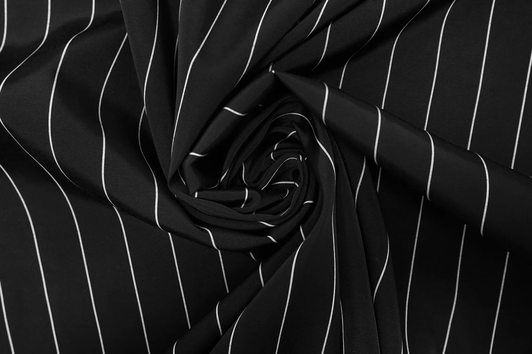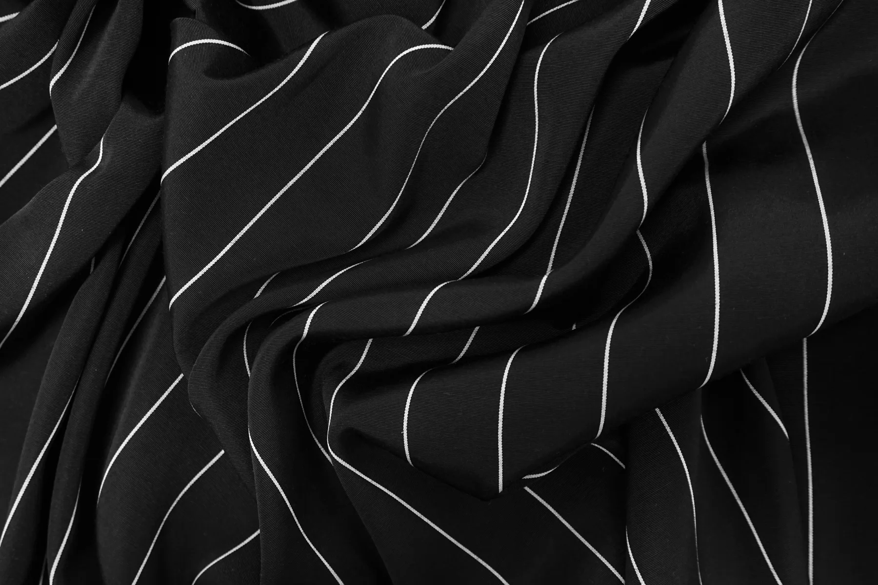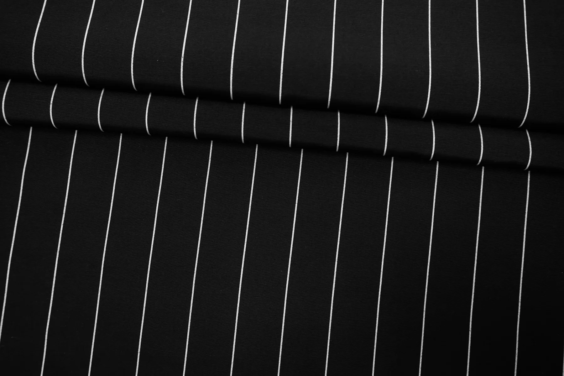 Итальянский репс плательно-костюмной плотности из вискозы и хлопка, с узором-полоской, в чёрно-белом исполнении (полоска параллельна кромке). Фактура ощущается без грубости, тактильно приятный. Не тянется, пластичный, красив в складке. Не просвечивает. Отличный вариант на платья, юбки, костюмы не очень строгого силуэта. Учитывайте возможную усадку.