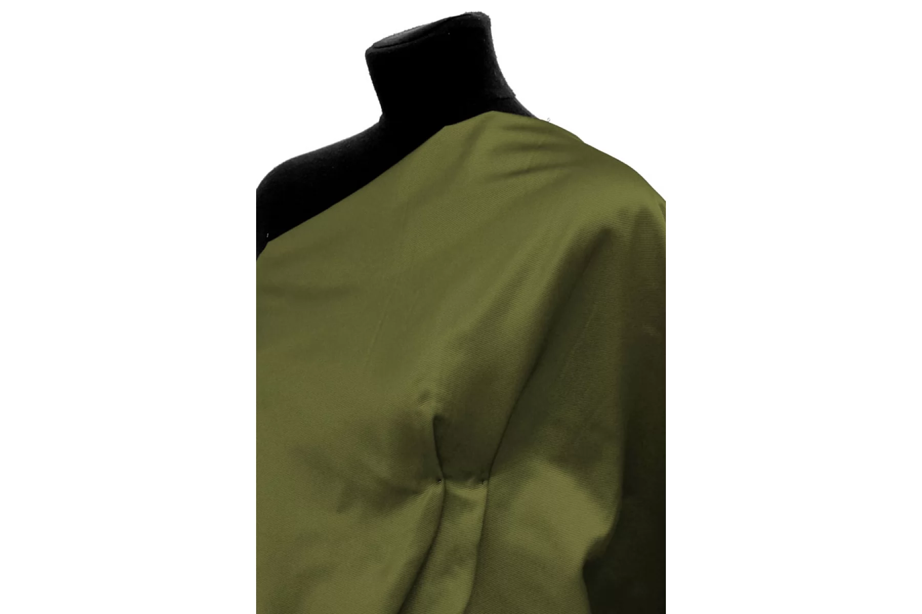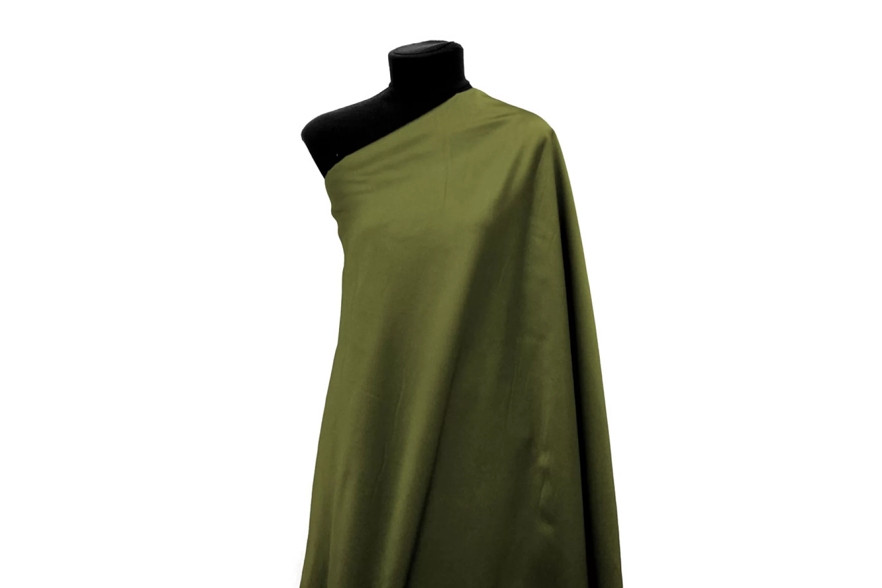 Шикарный шелковый репс в красивом, оливково-зеленом цвете. Очень нежный, с богатым лоском, бархатный, мягкий и приятный наощупь, скользящий. Не тянется, не просвечивает. Сминается совсем немножко. Немного держит форму. Отличный вариант на платья, юбки, блузки, жакеты мягкой формы. Уход деликатный.
